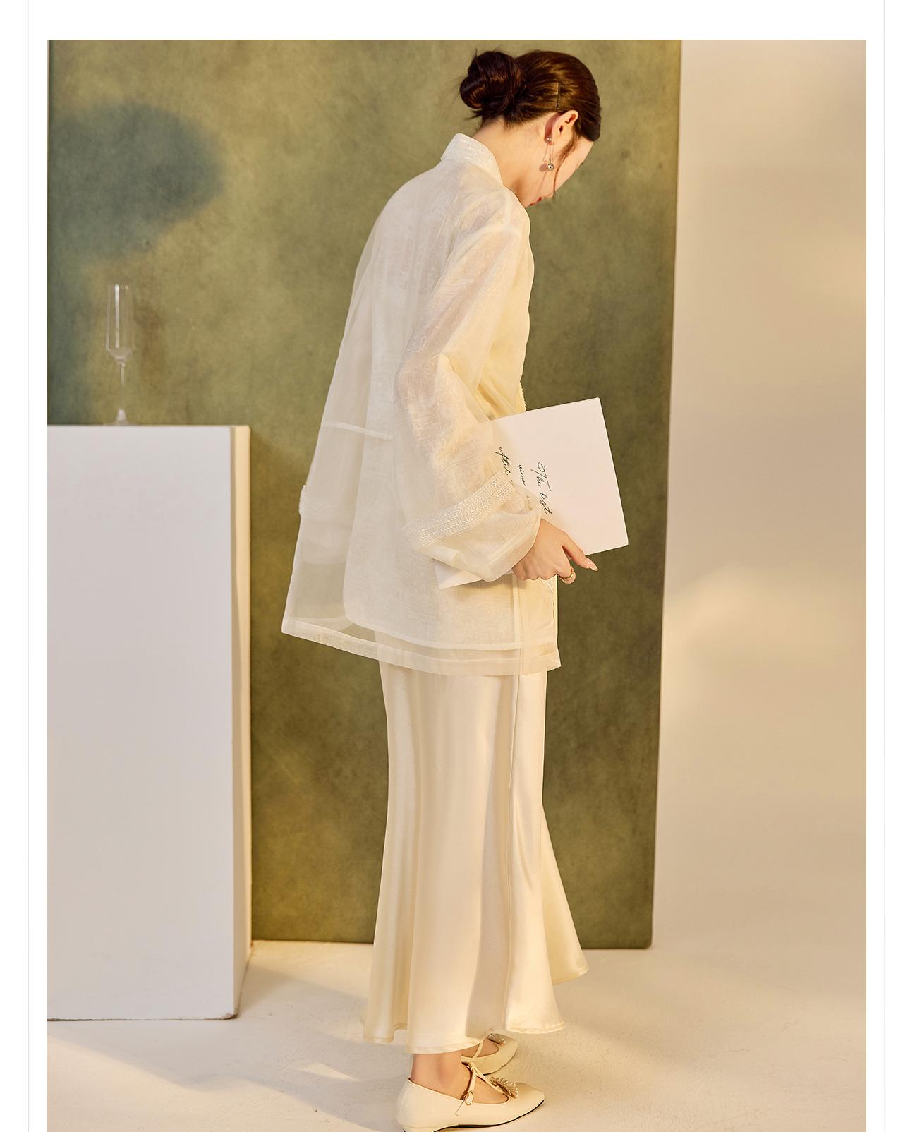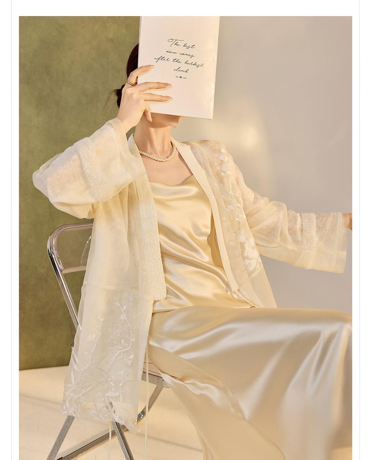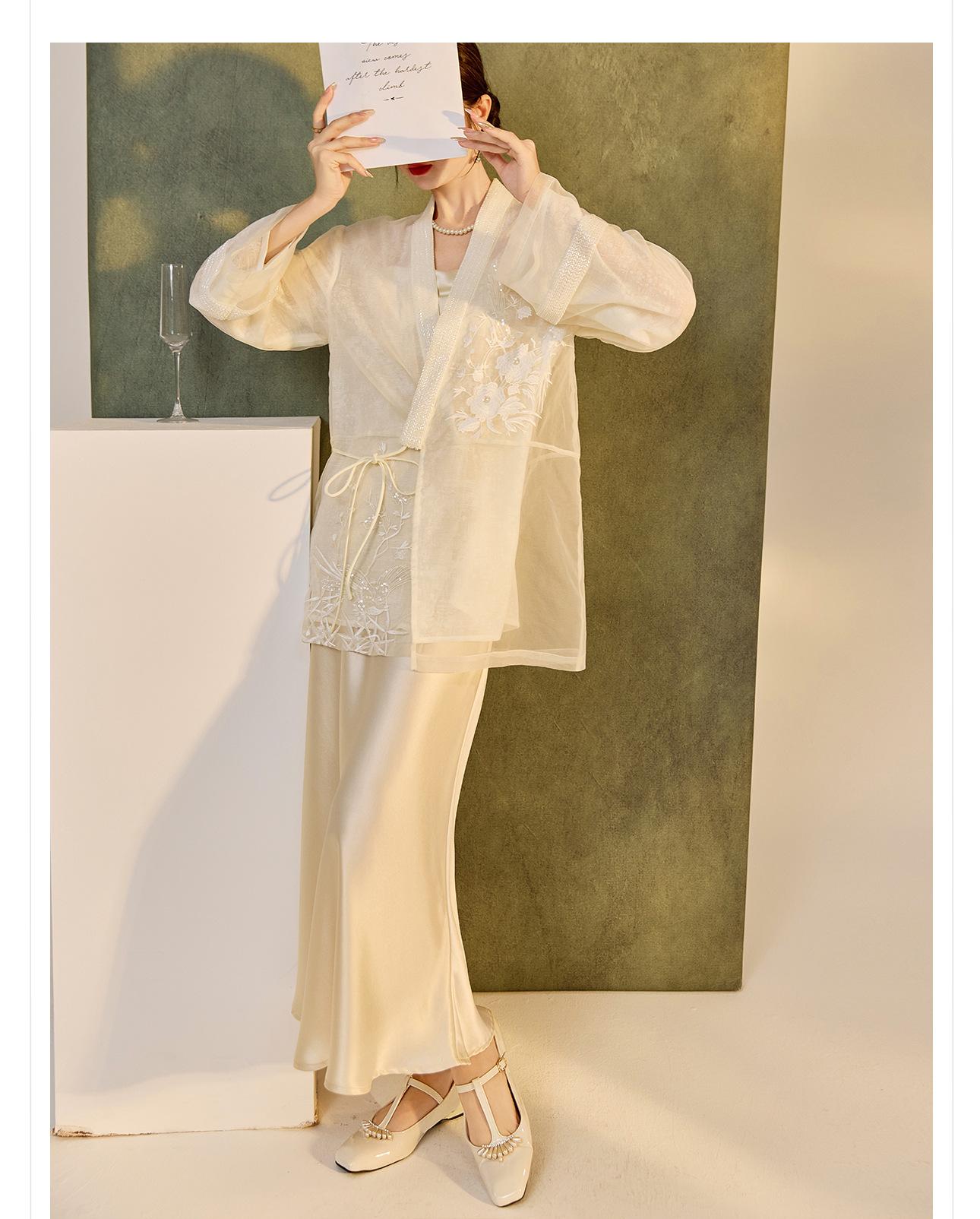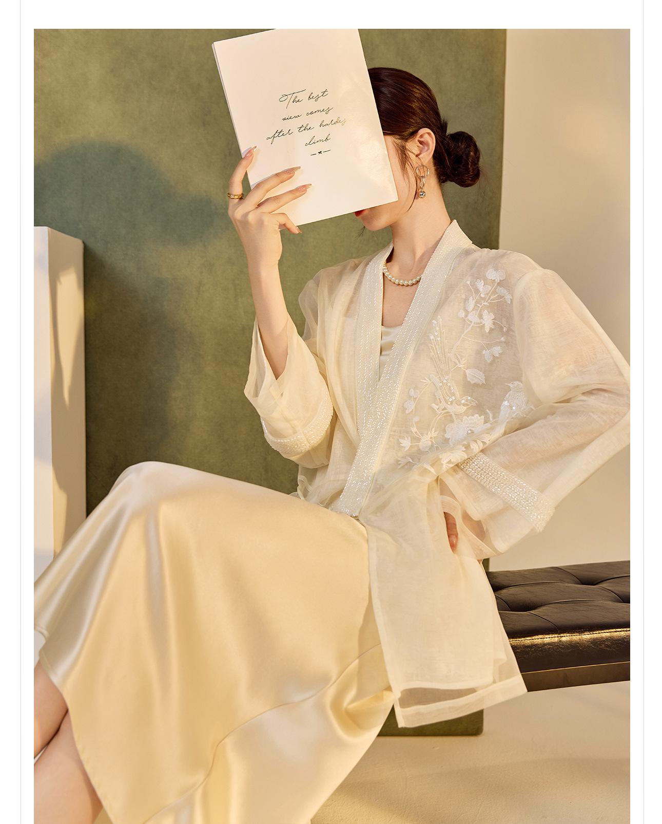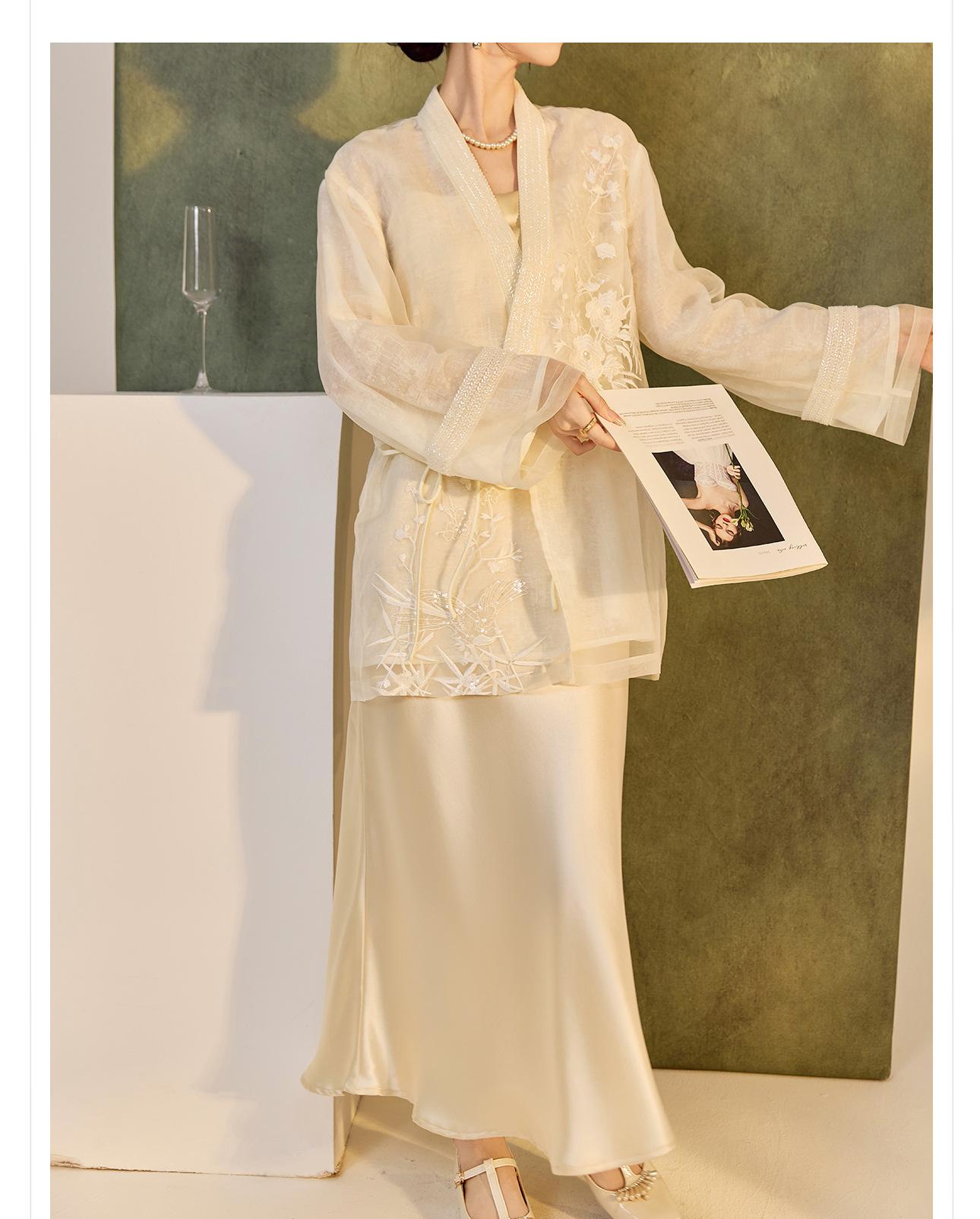 Primavera 2025 Nuevo Estilo Chino Estilo Nacional Camisa Bordada de Flores y Pájaros para Mujer Blanca Suelta Seda de Morera Top Exterior M3074