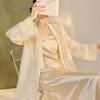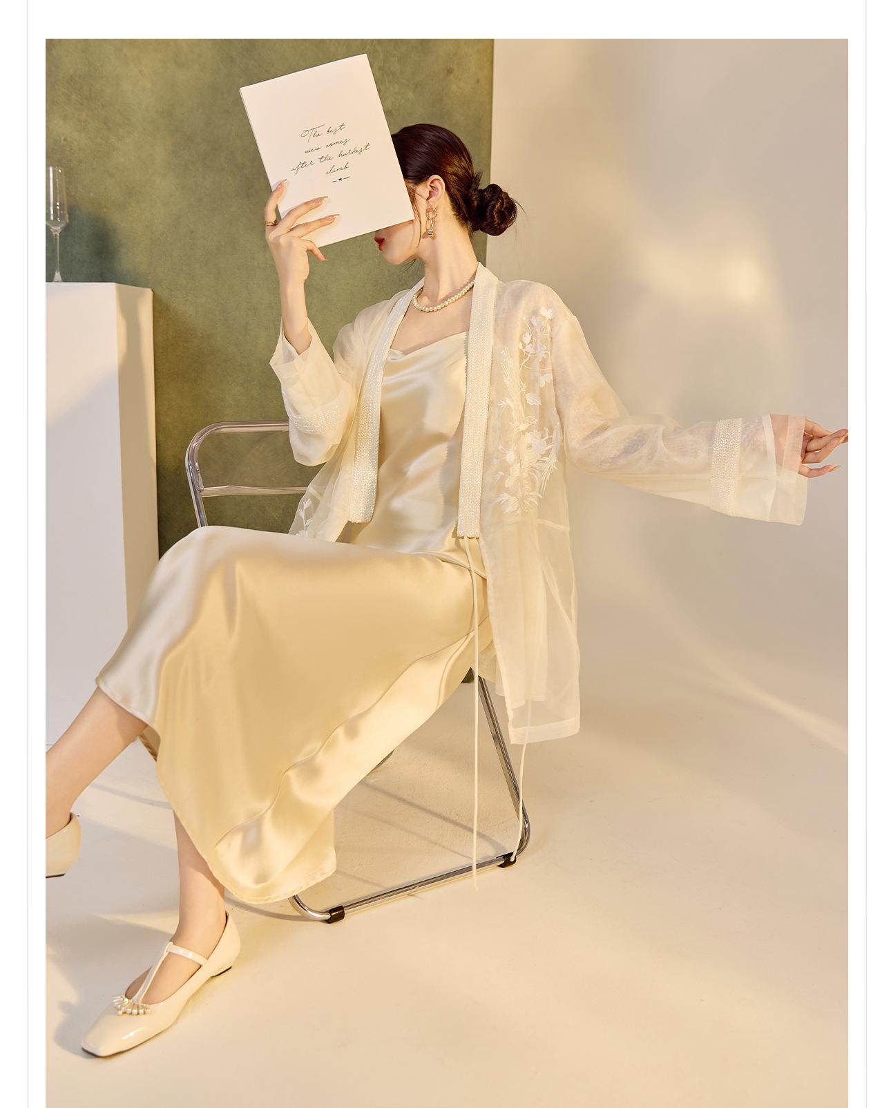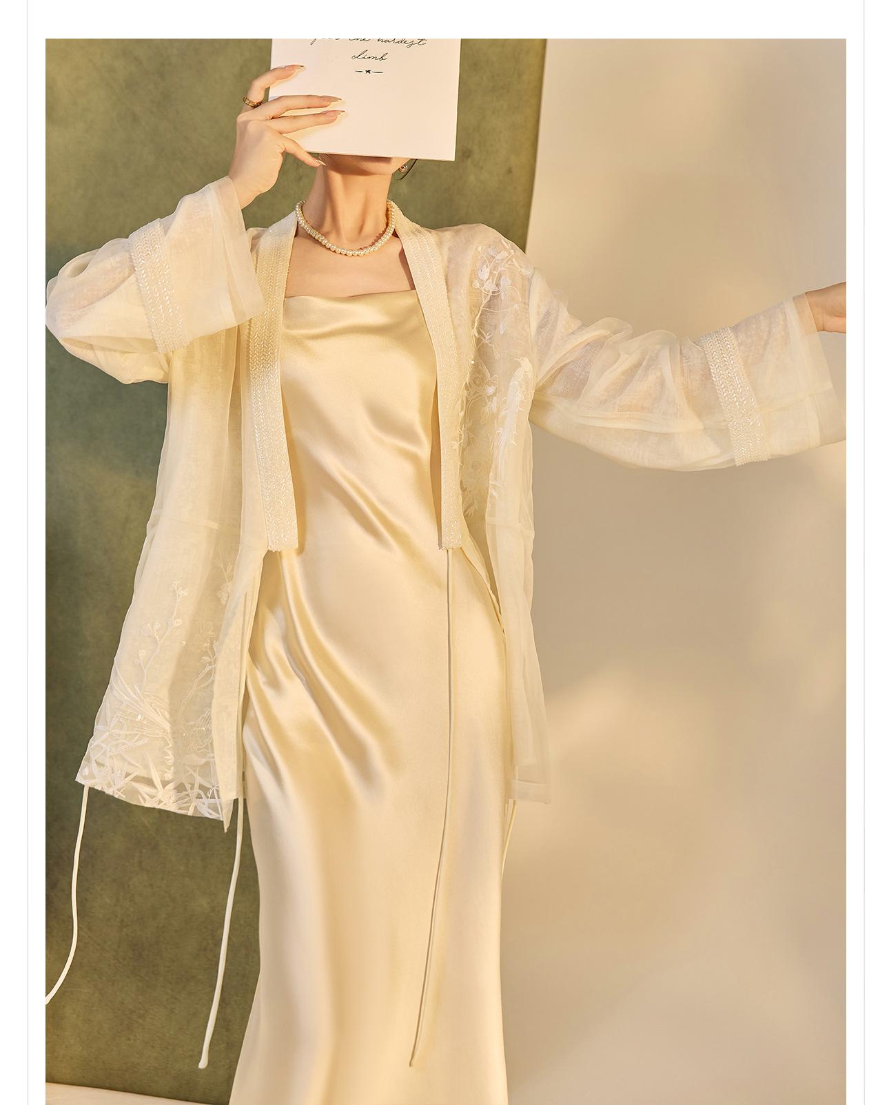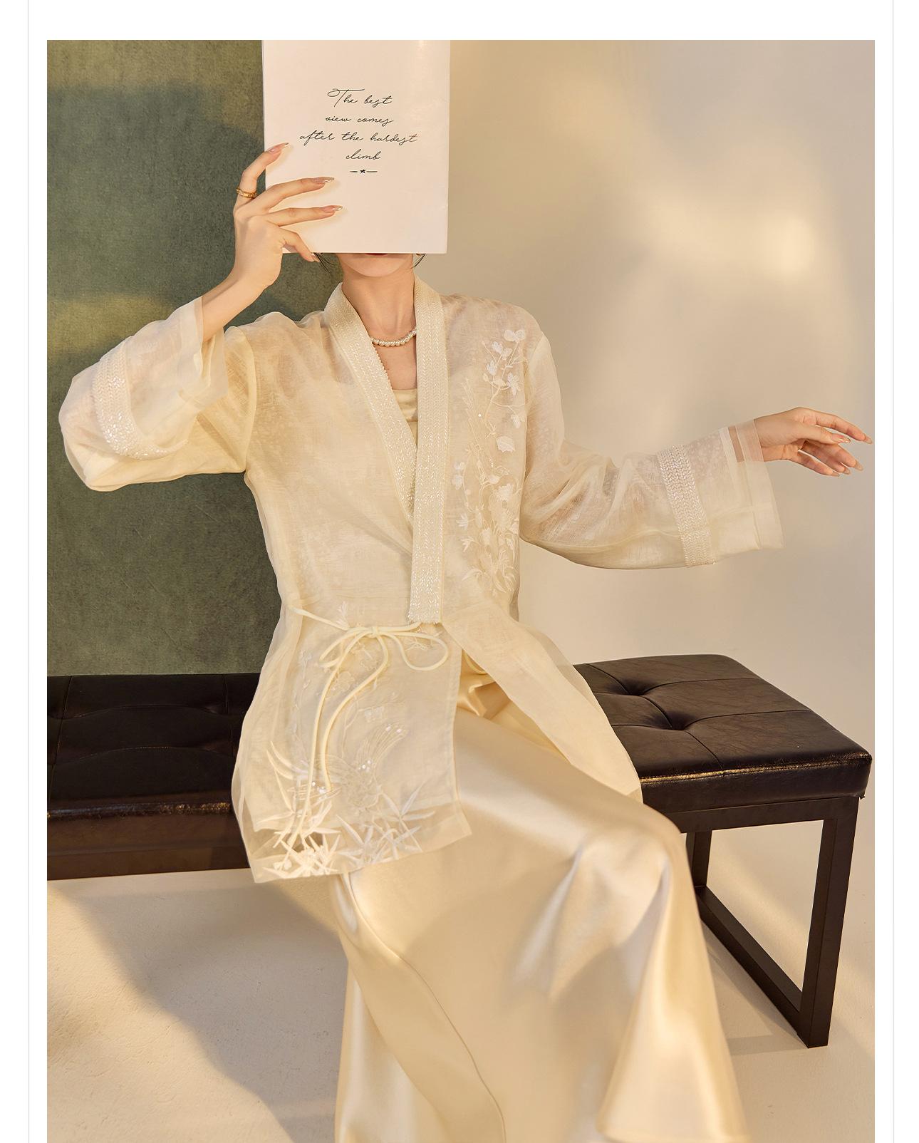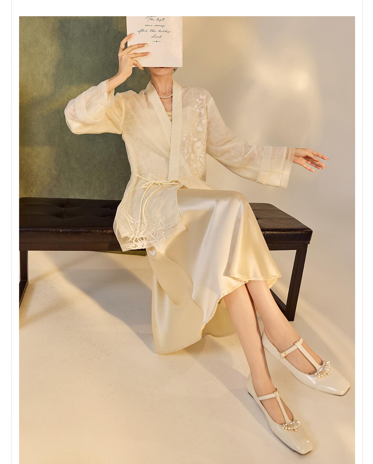 Primavera 2025 Nuevo Estilo Chino Estilo Nacional Camisa Bordada de Flores y Pájaros para Mujer Blanca Suelta Seda de Morera Top Exterior M3074