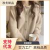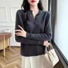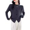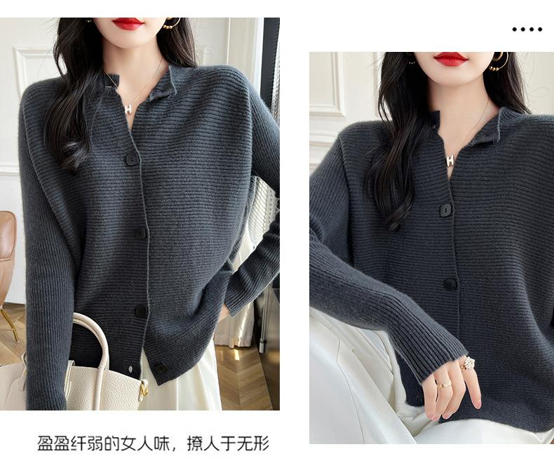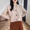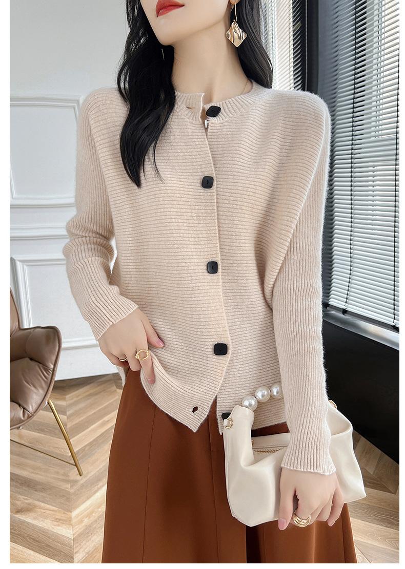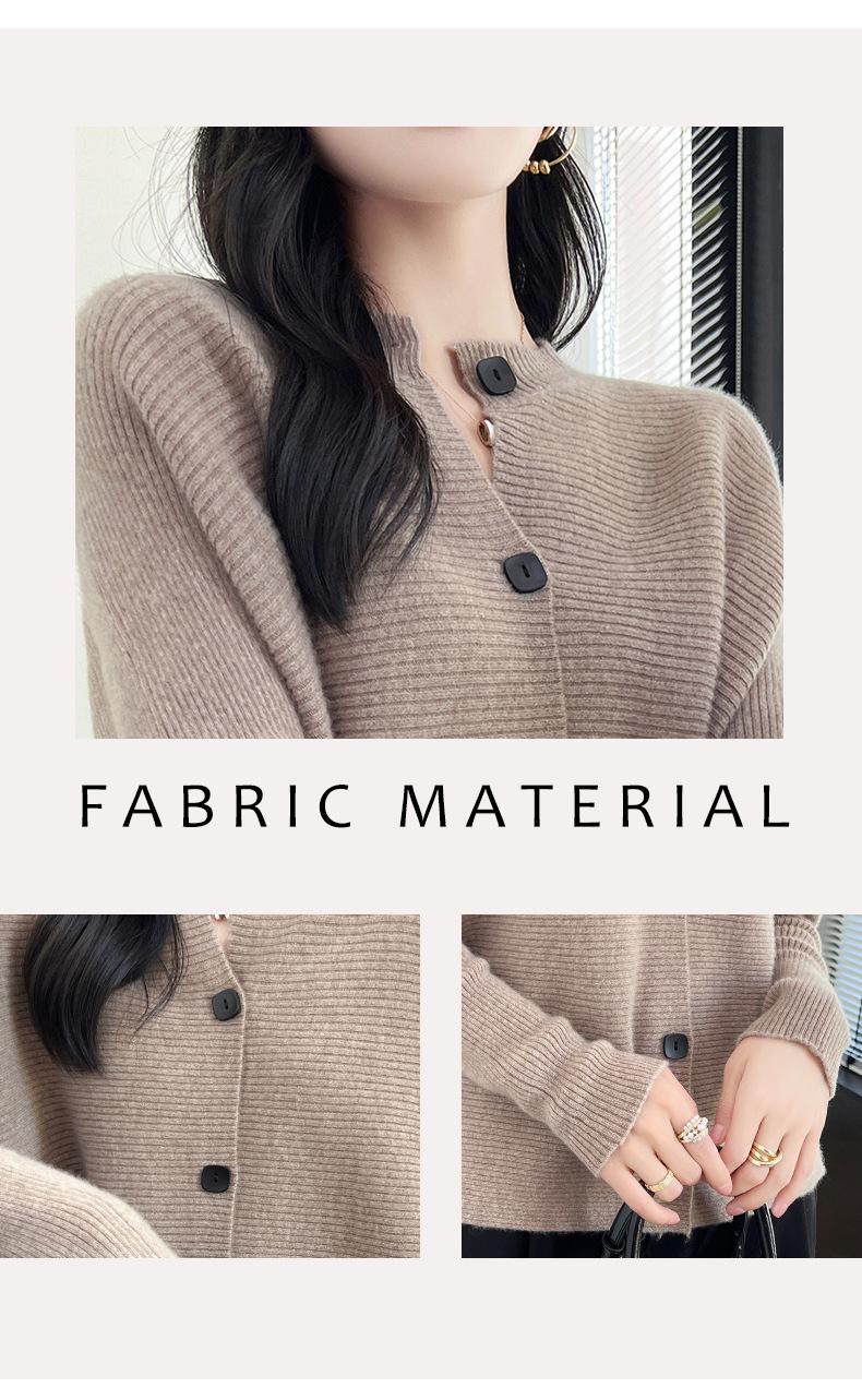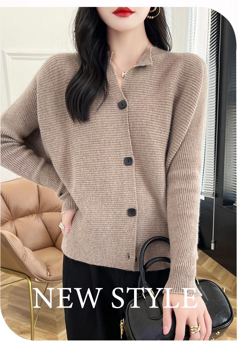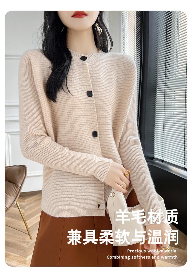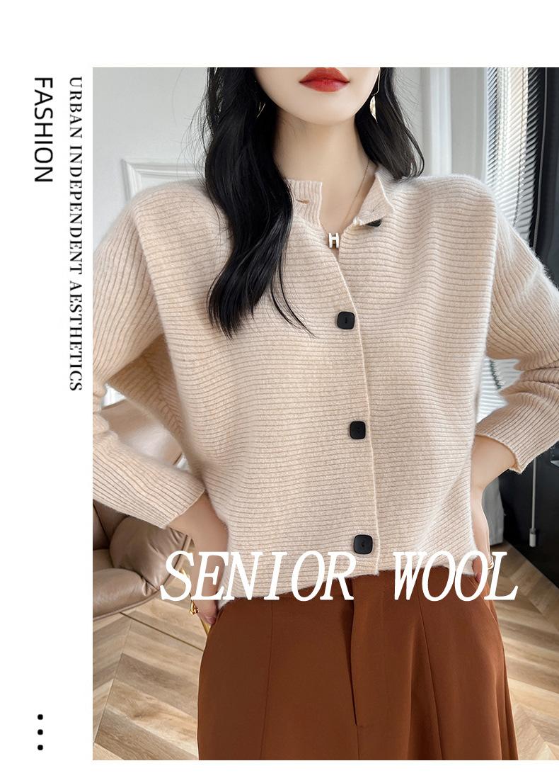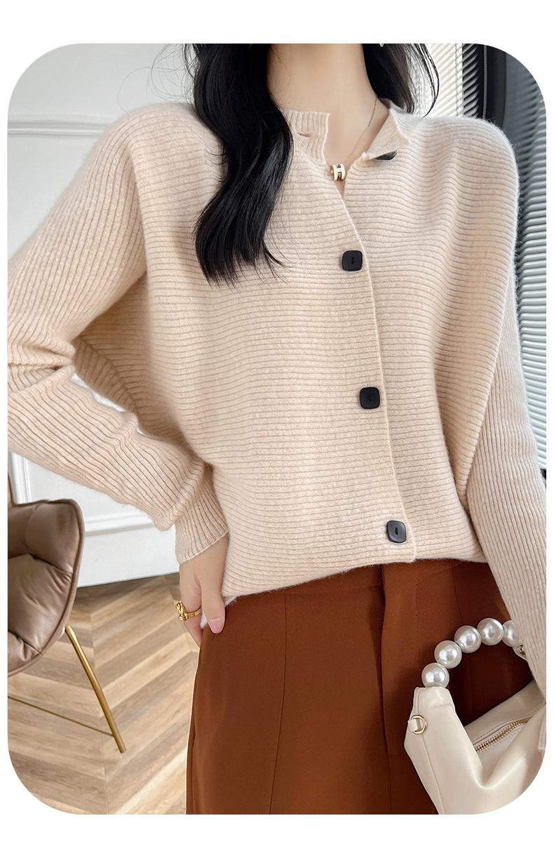 Suéter holgado de lana de punto con cuello redondo y botones de manga larga para otoño e invierno, cárdigan de lana 100% pura para mujer