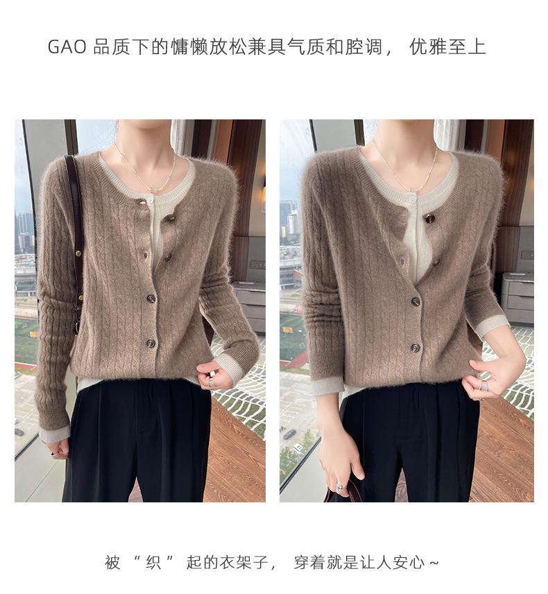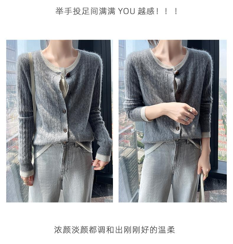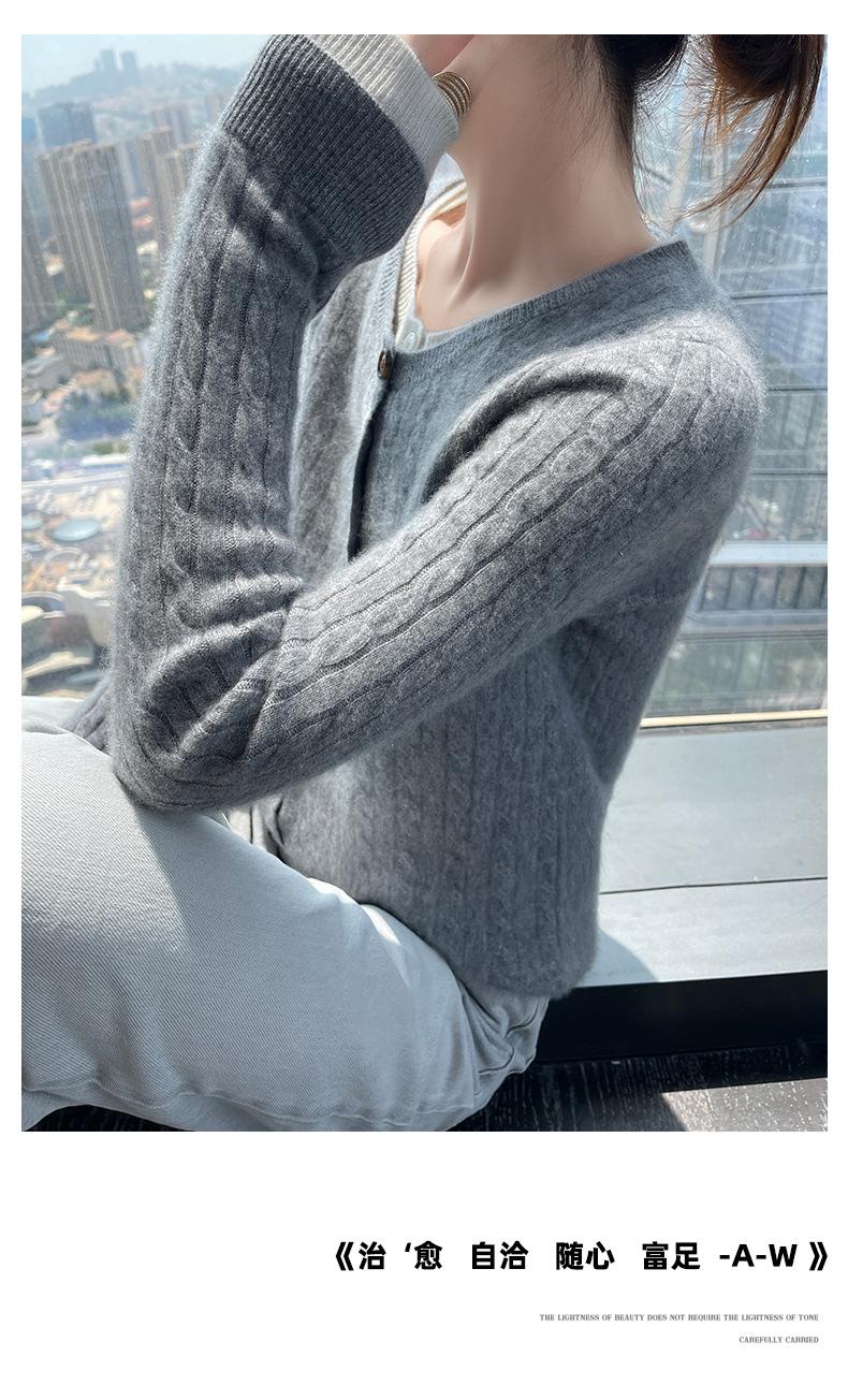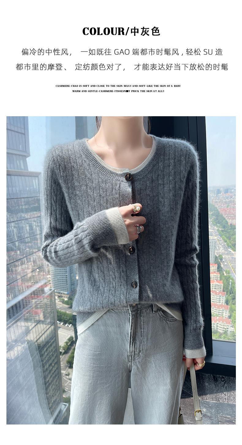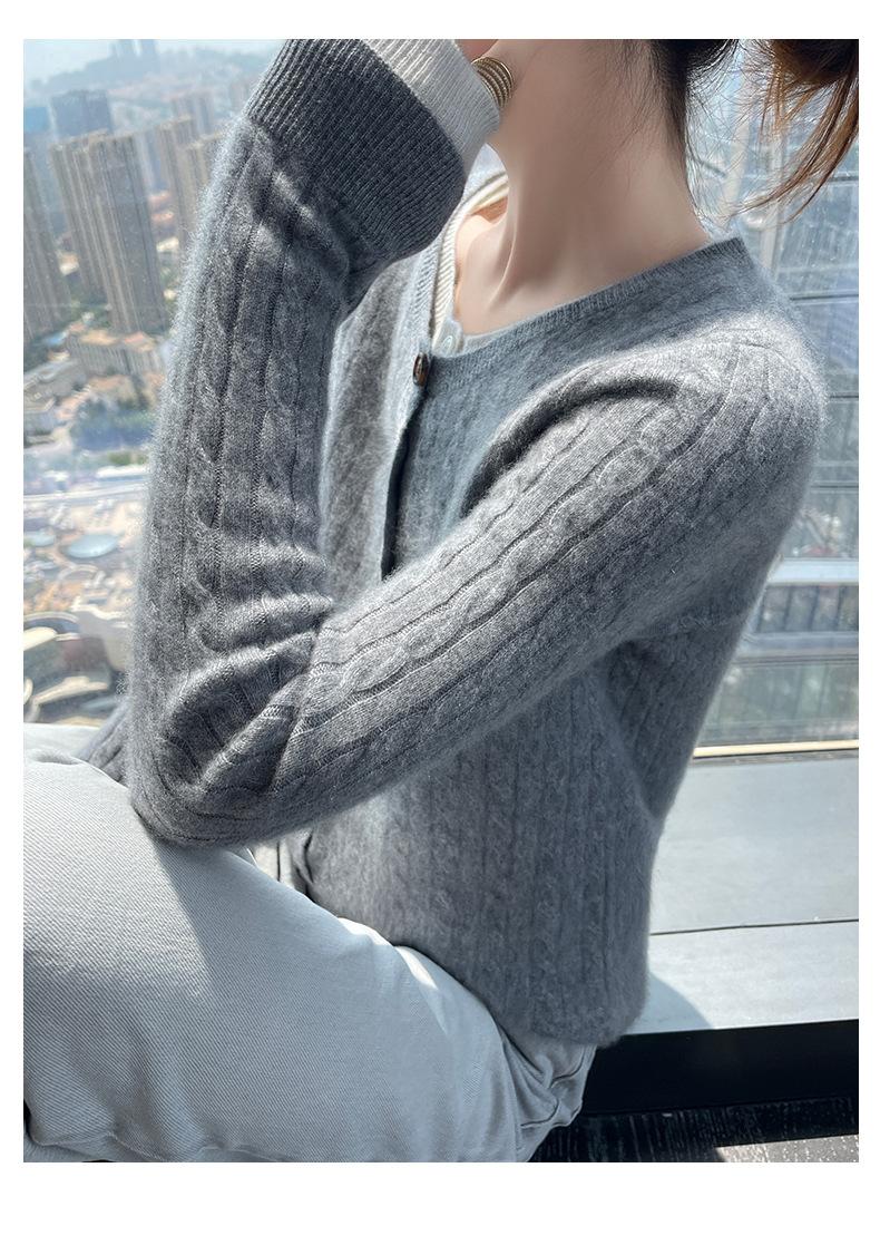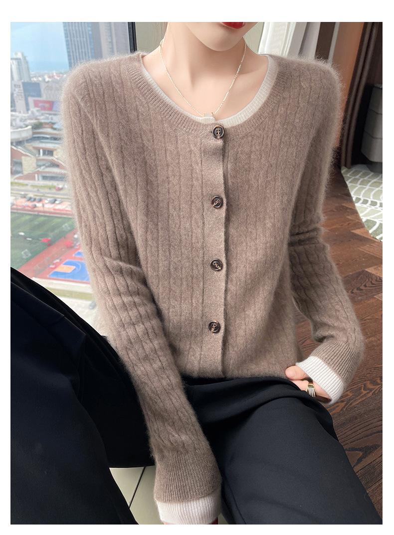 Cárdigan de cachemira suave y encerado para mujer, cuello redondo, color a juego, falso suéter de punto trenzado de dos piezas, chaqueta, camisa holgada con base de lana