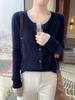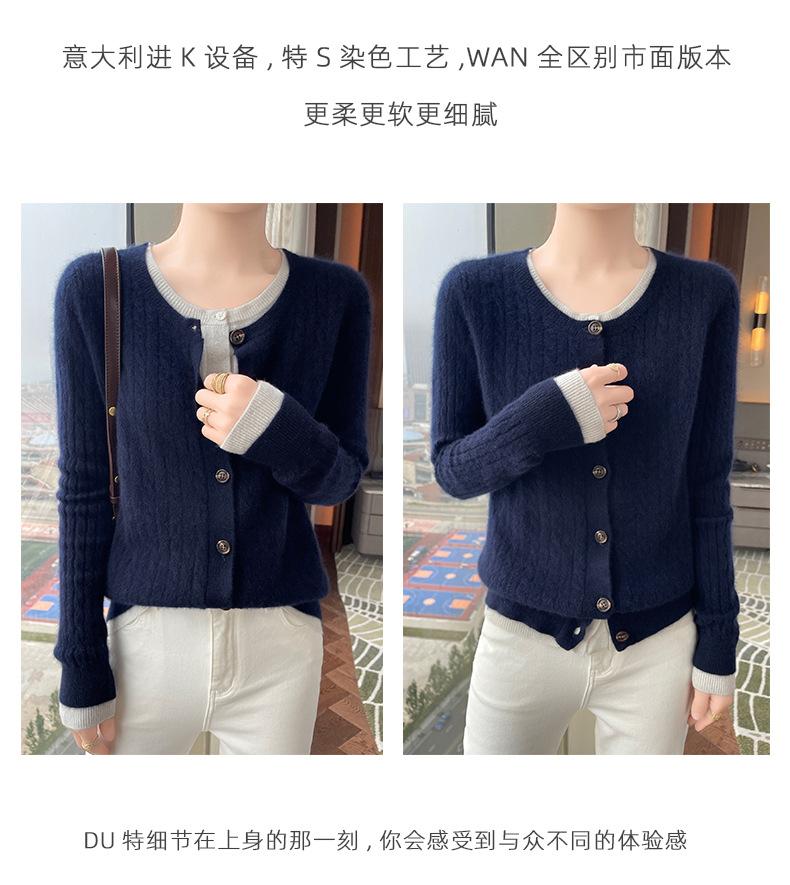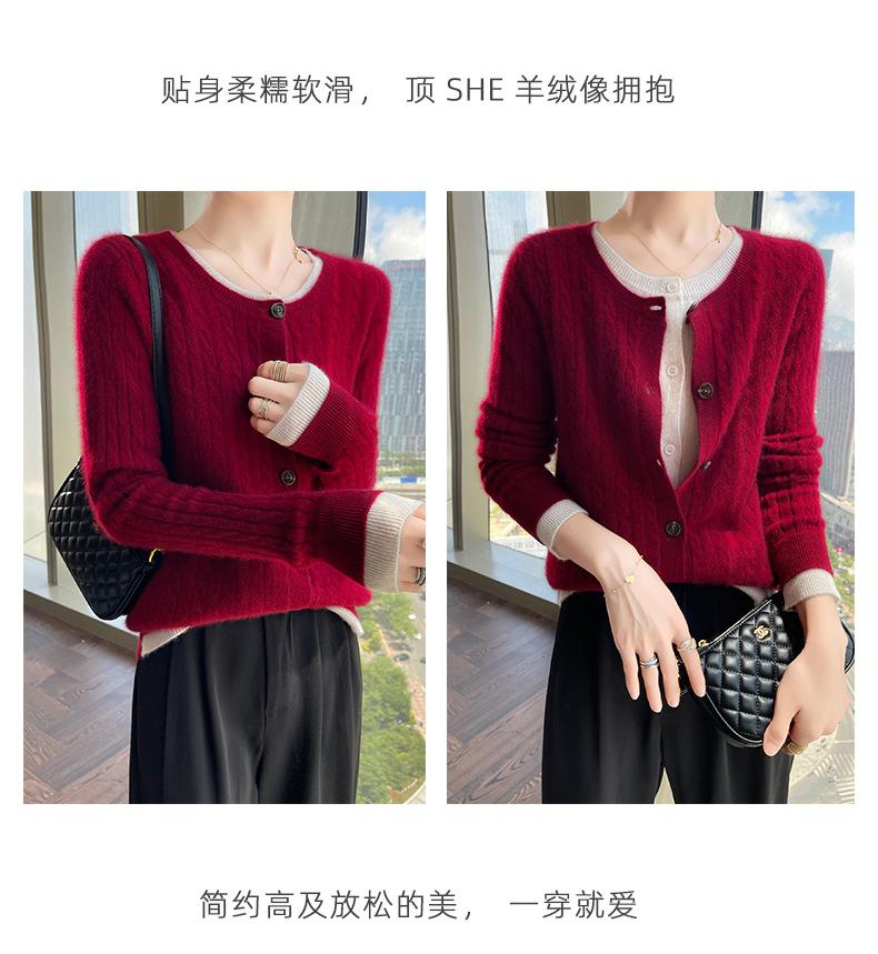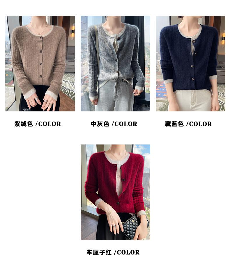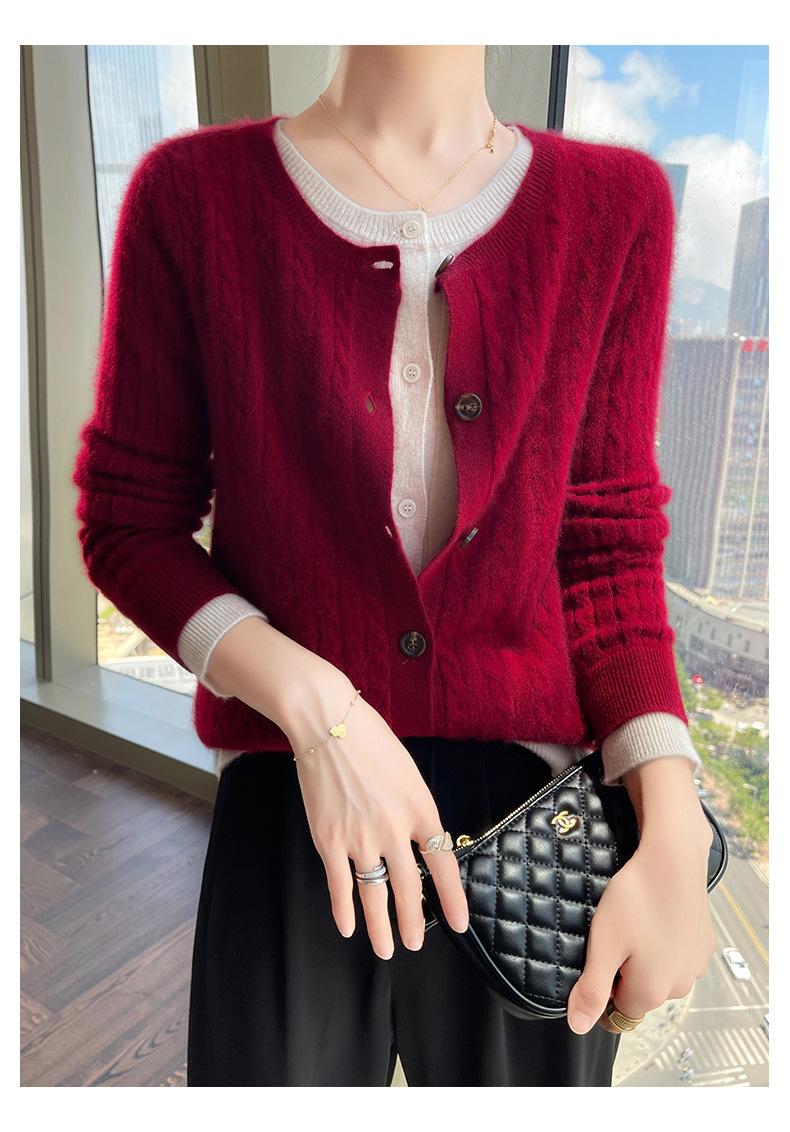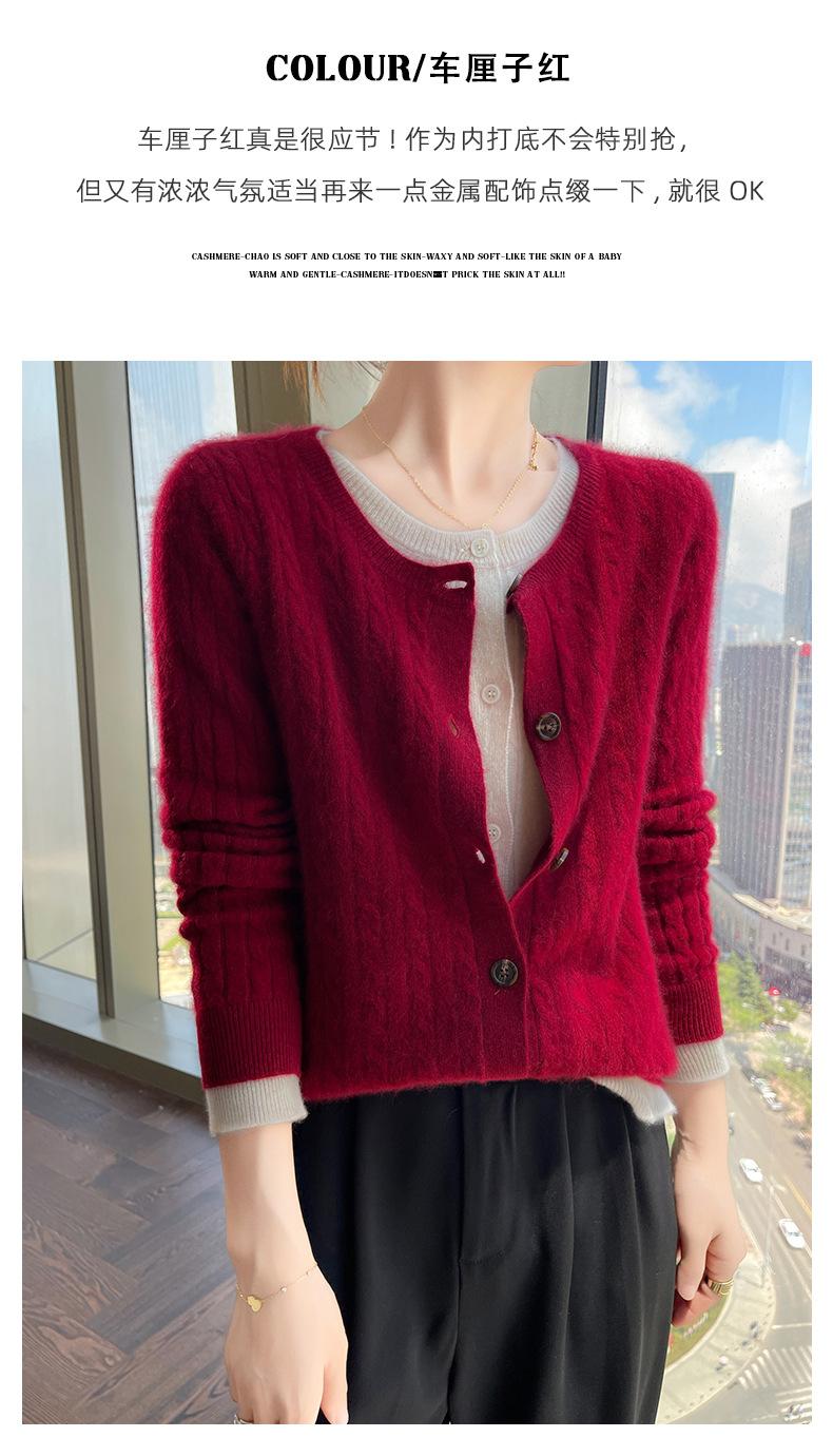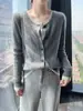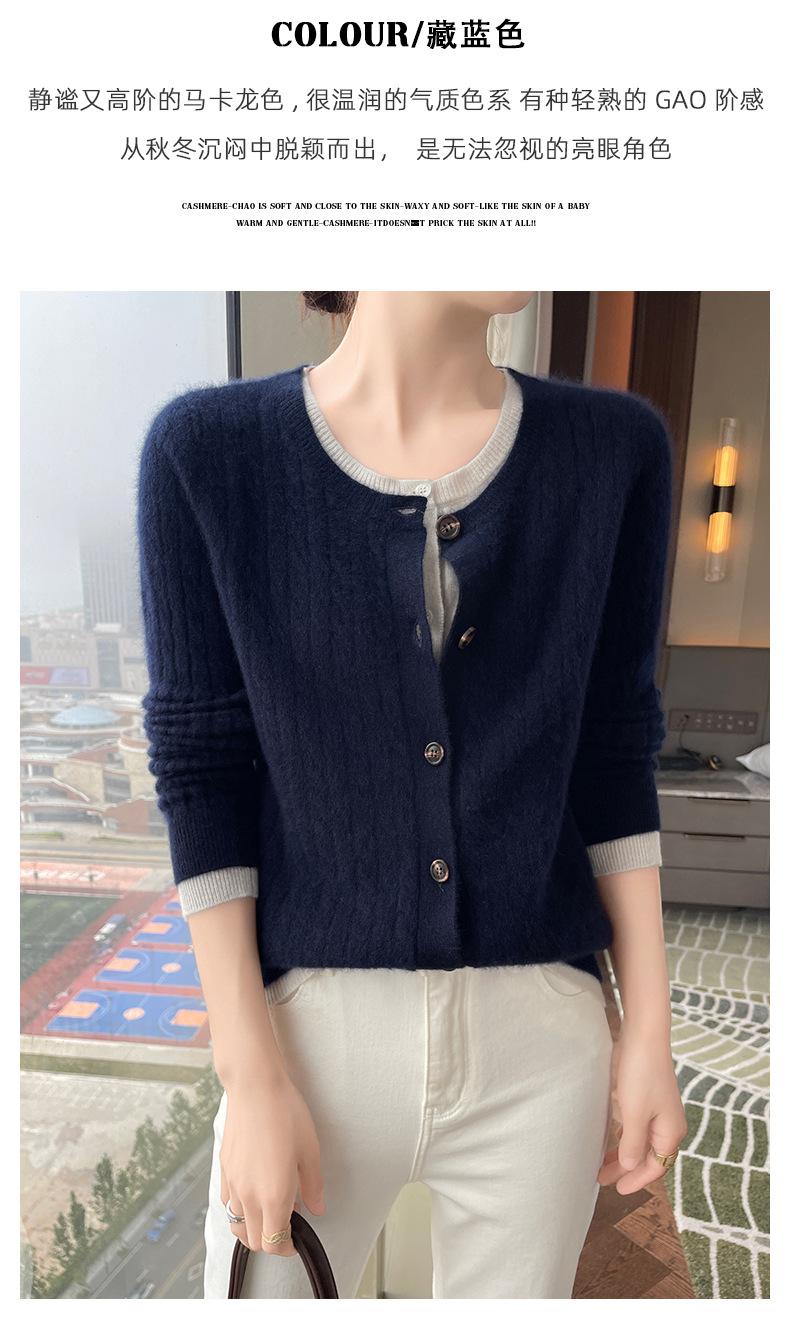 Cárdigan de cachemira suave y encerado para mujer, cuello redondo, color a juego, falso suéter de punto trenzado de dos piezas, chaqueta, camisa holgada con base de lana