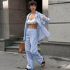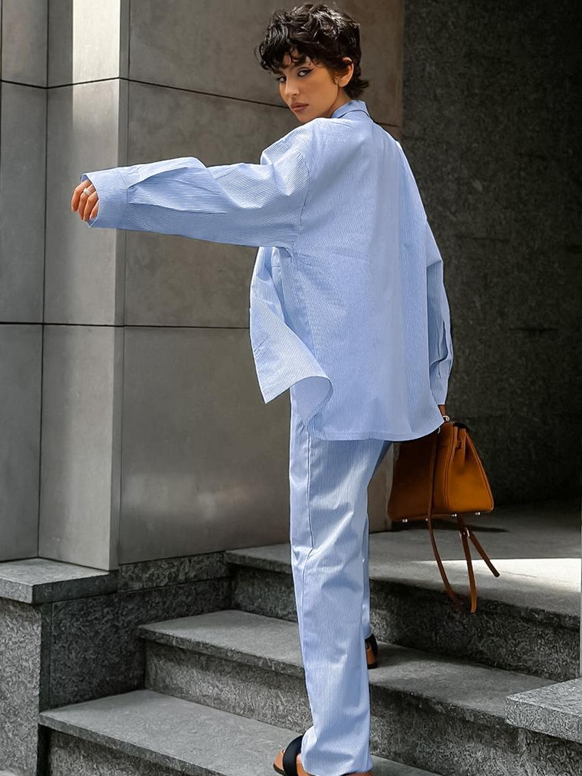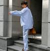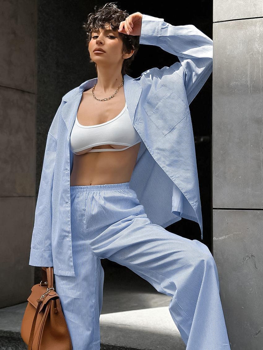 Europeo y Americano Rayado Joker Estilo Perezoso Simple Moda Casual traje 2024 Otoño e Invierno Nuevo Nicho Cintura Alta para Mujer Commuter