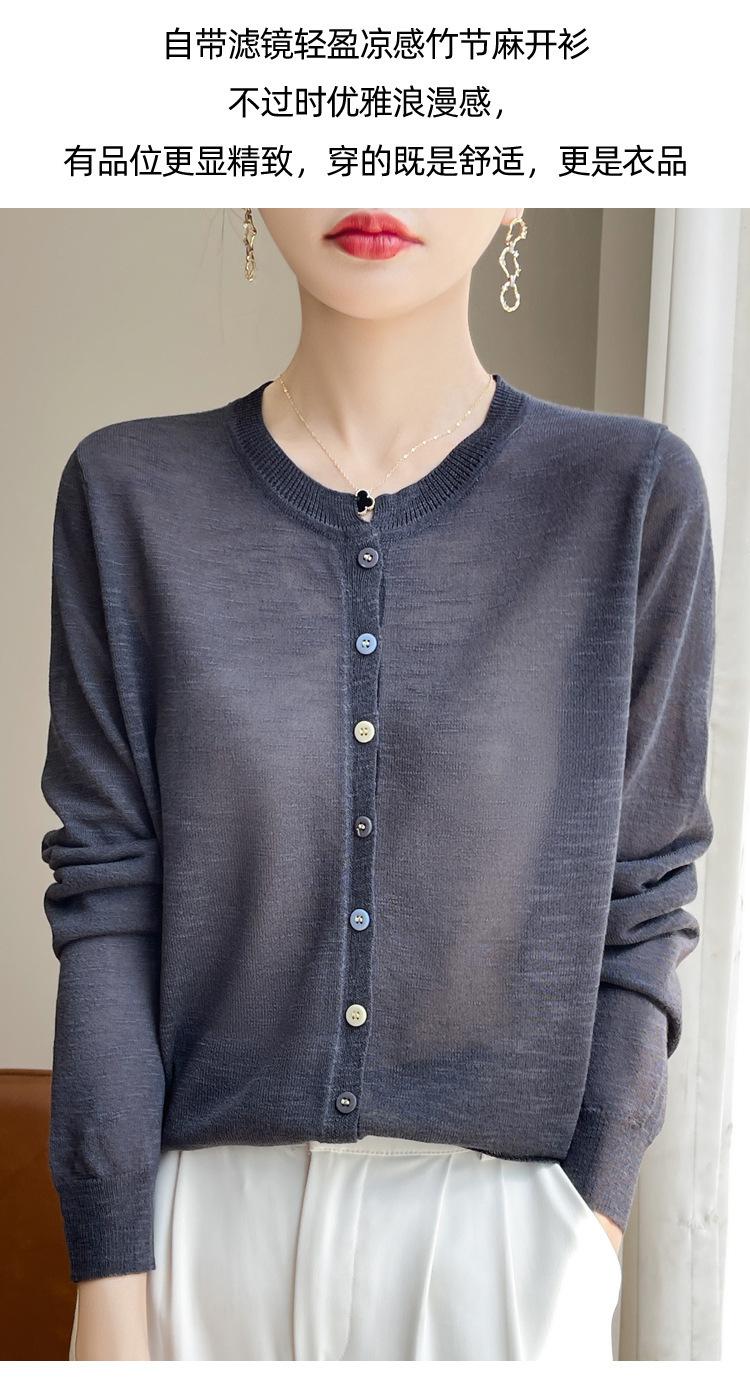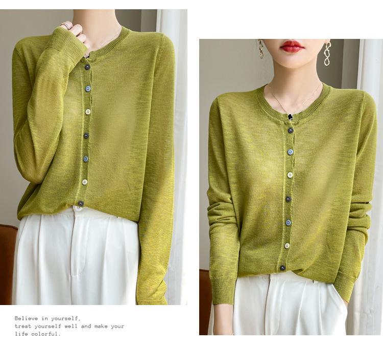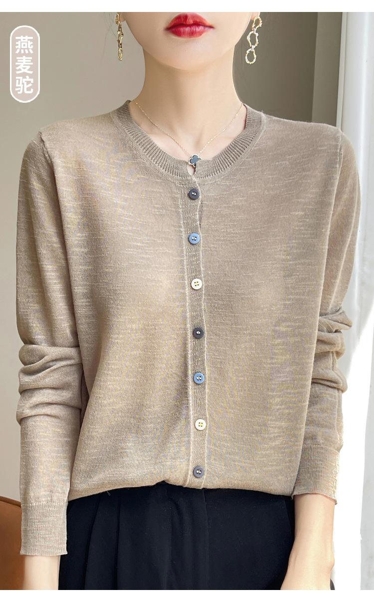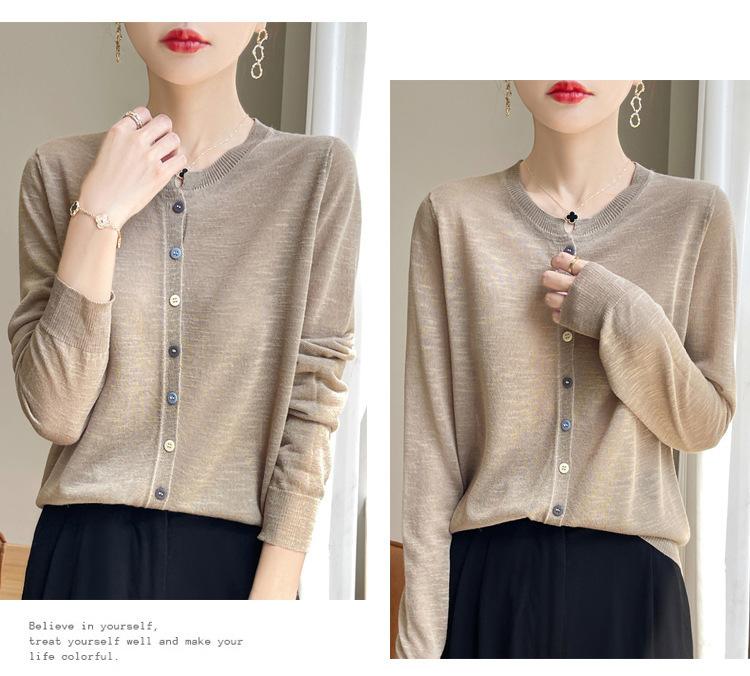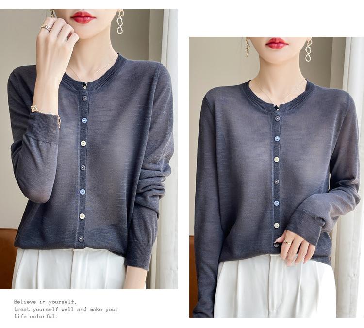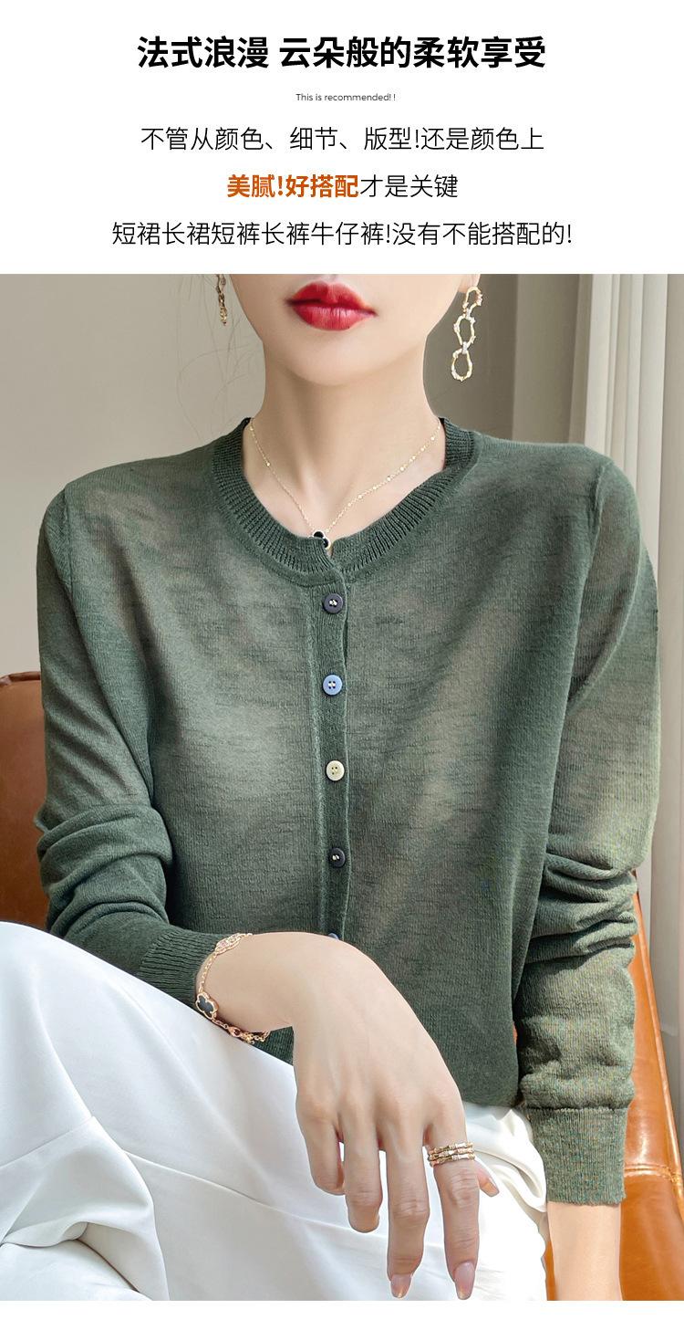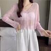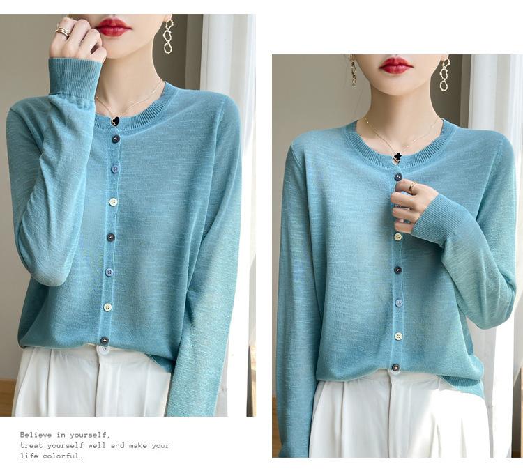 Cárdigan de punto con cuello redondo de verano para mujer, abrigo fino y holgado con protector solar, camisa de manga corta y aire acondicionado, venta al por mayor