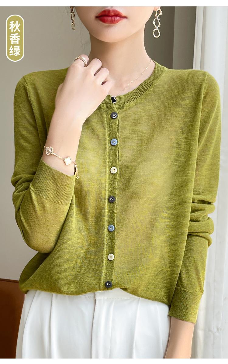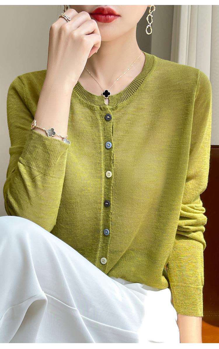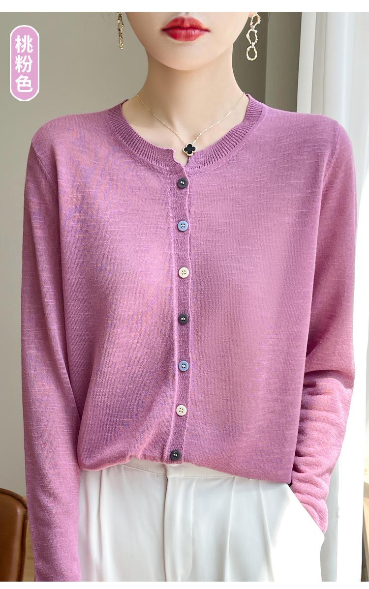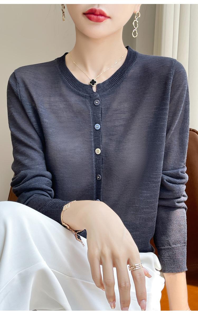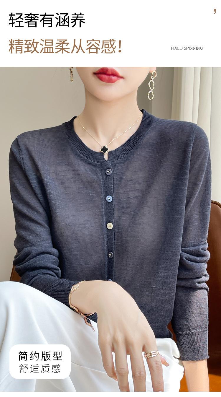 Cárdigan de punto con cuello redondo de verano para mujer, abrigo fino y holgado con protector solar, camisa de manga corta y aire acondicionado, venta al por mayor