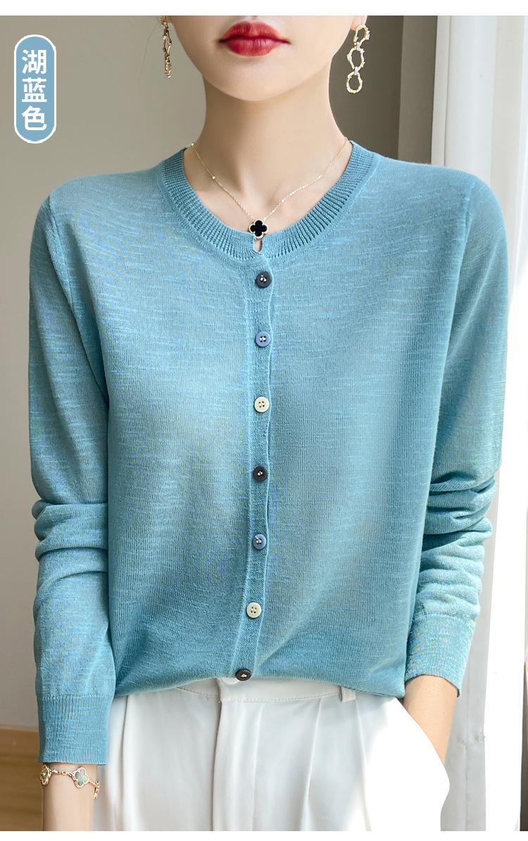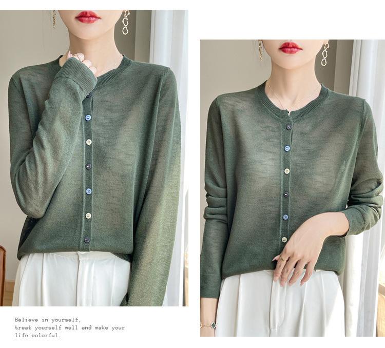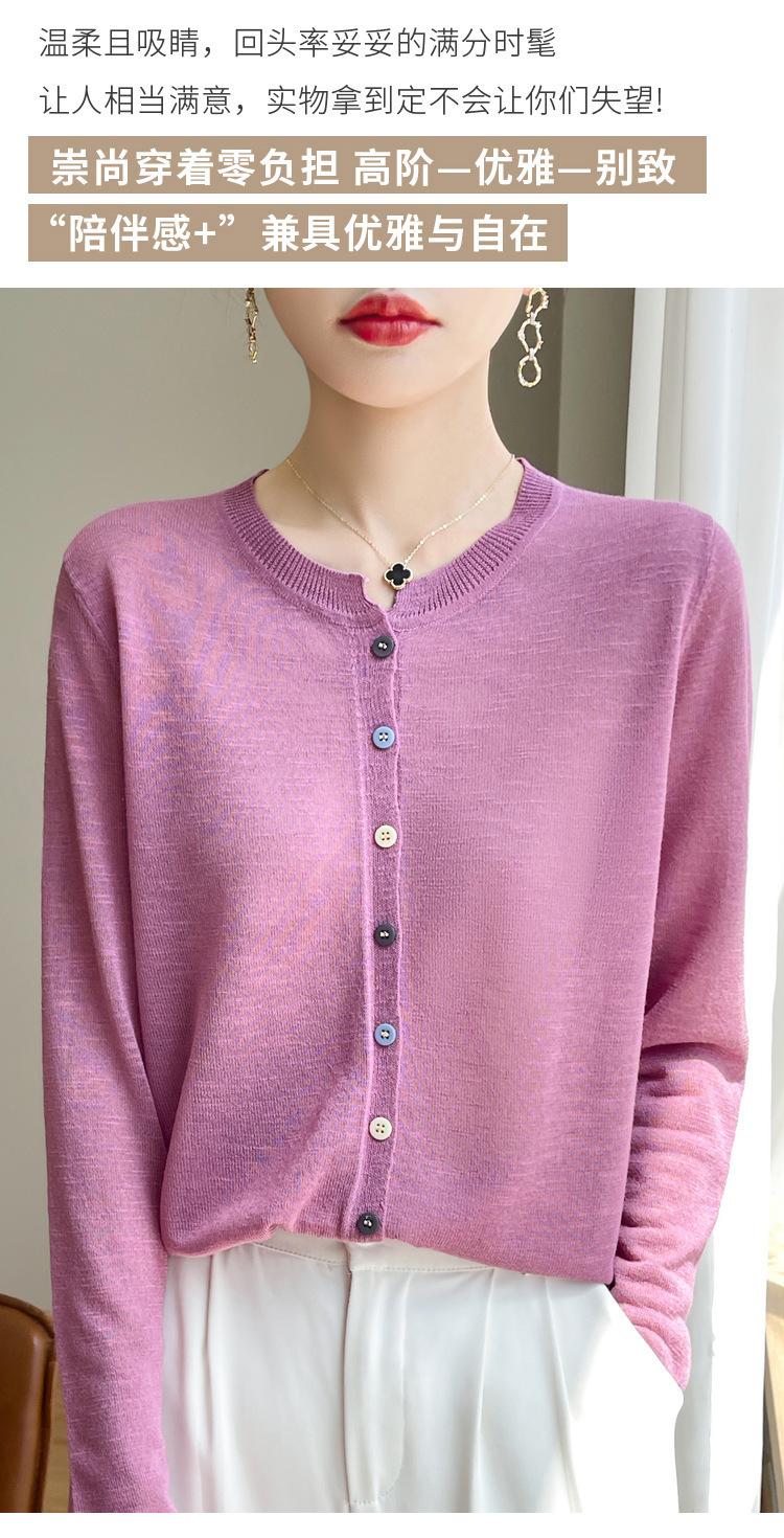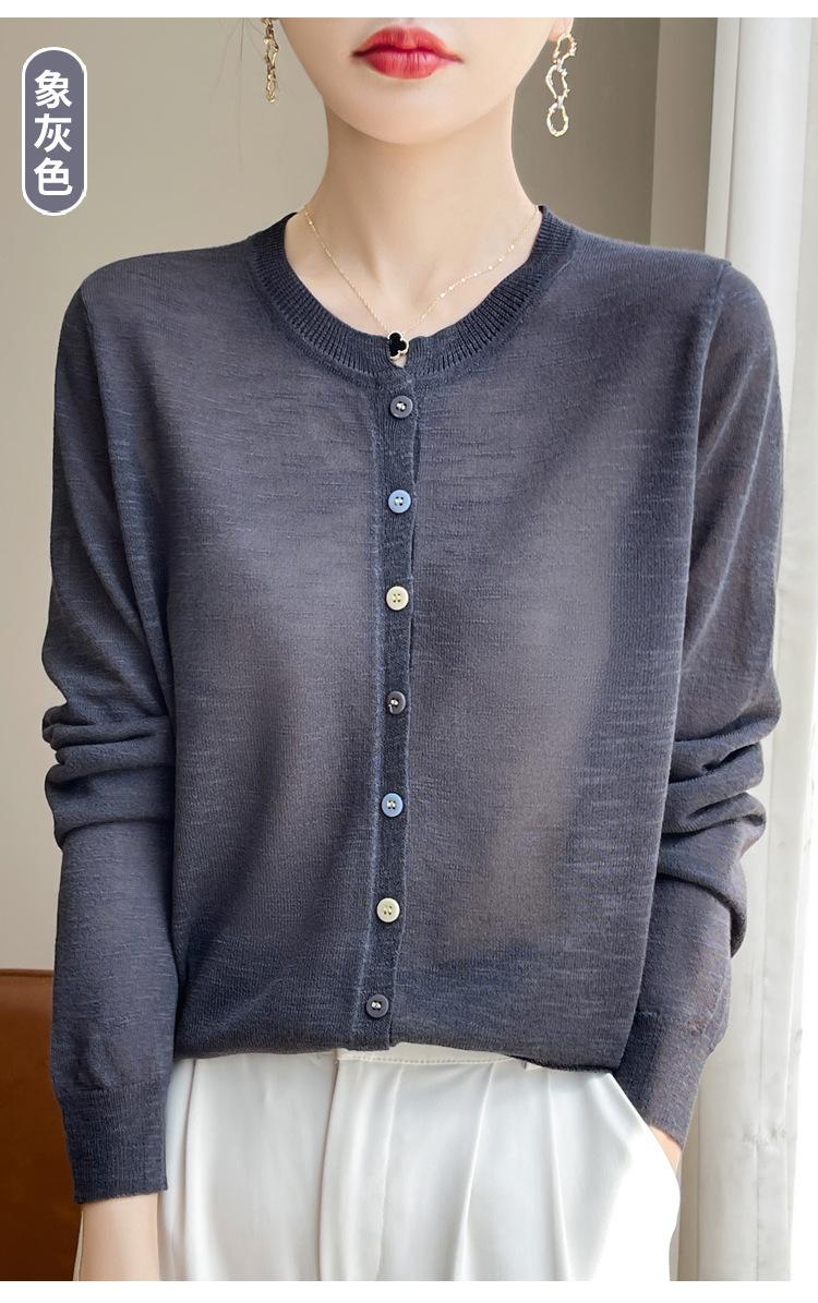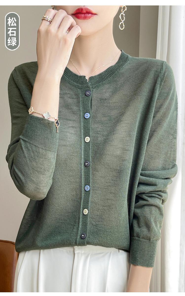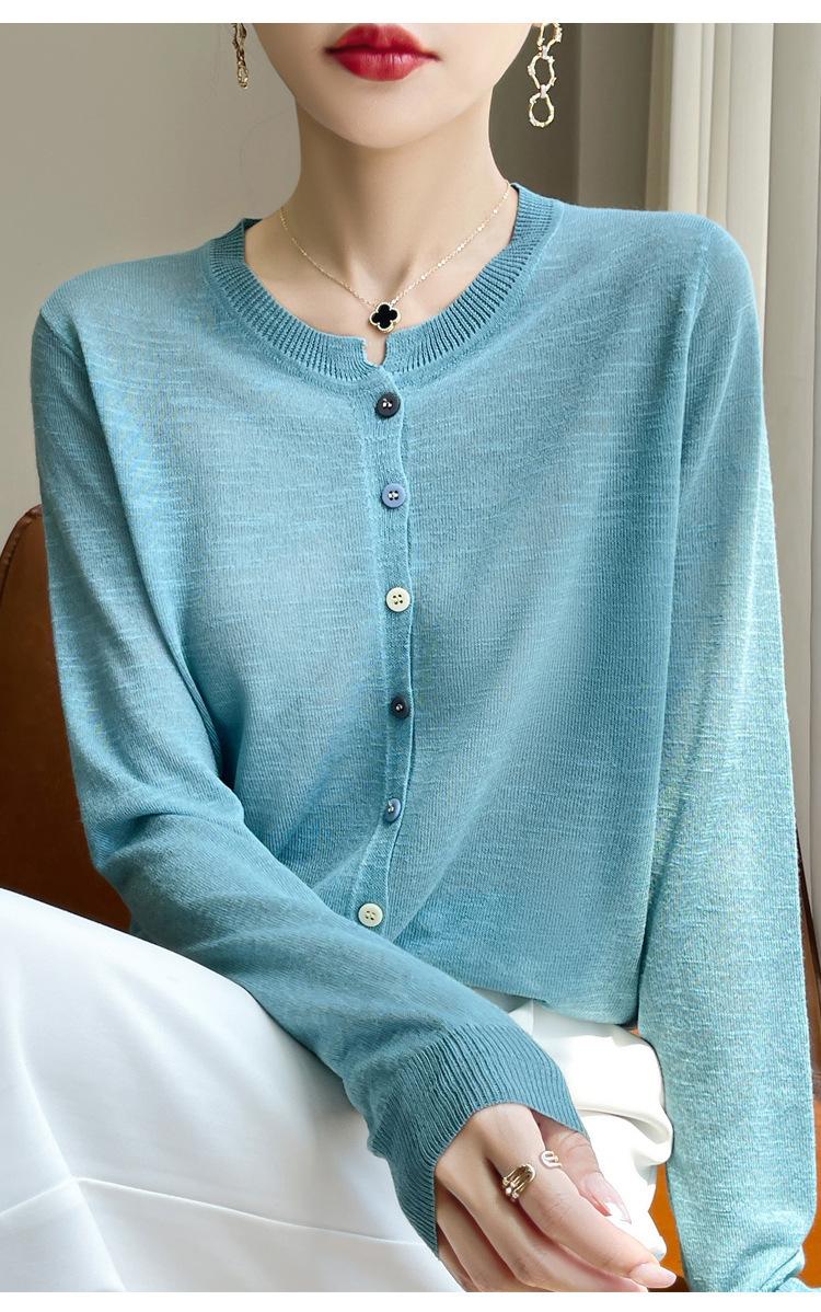 Cárdigan de punto con cuello redondo de verano para mujer, abrigo fino y holgado con protector solar, camisa de manga corta y aire acondicionado, venta al por mayor