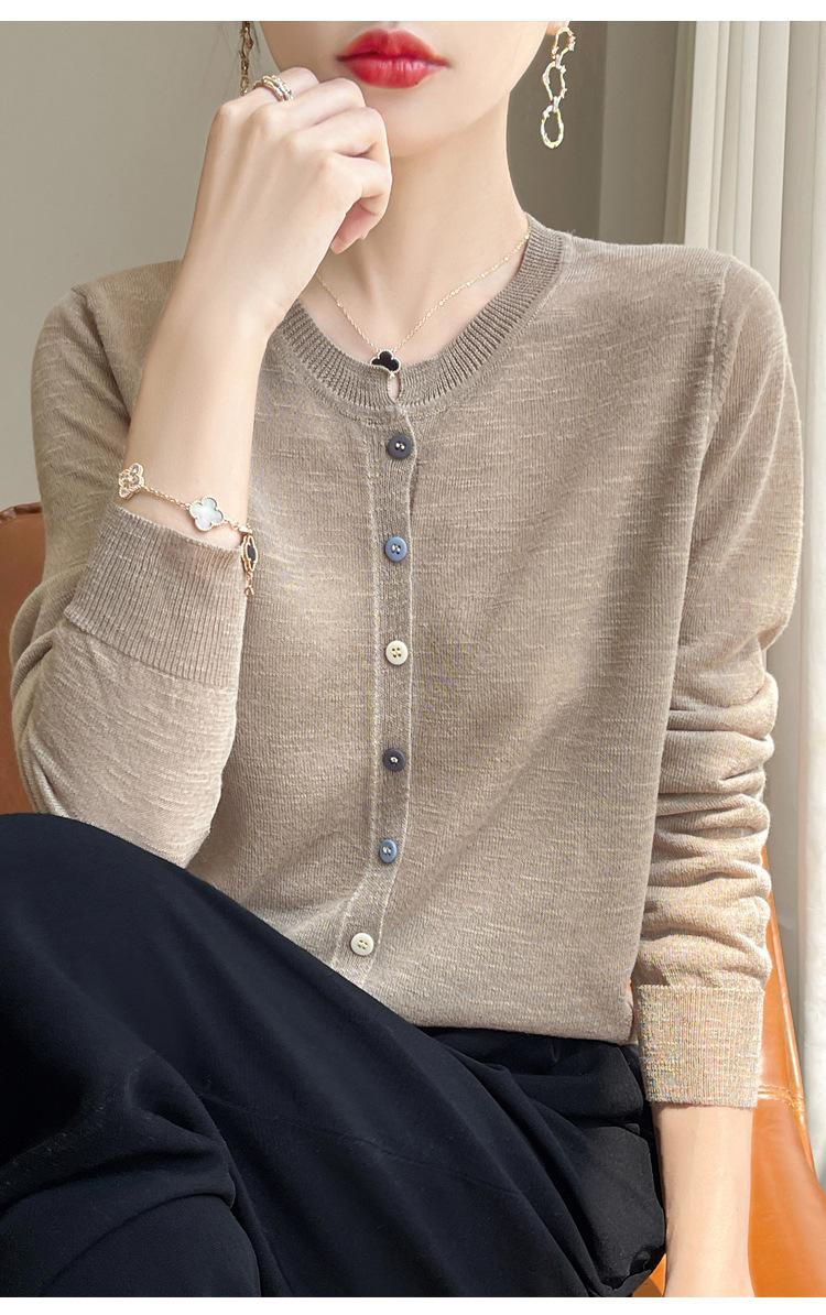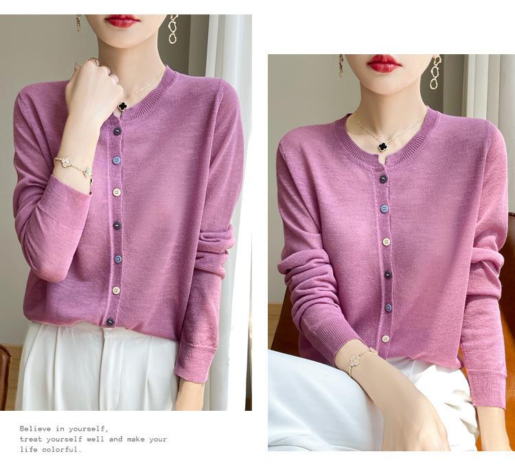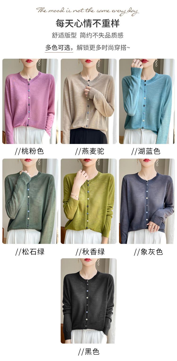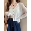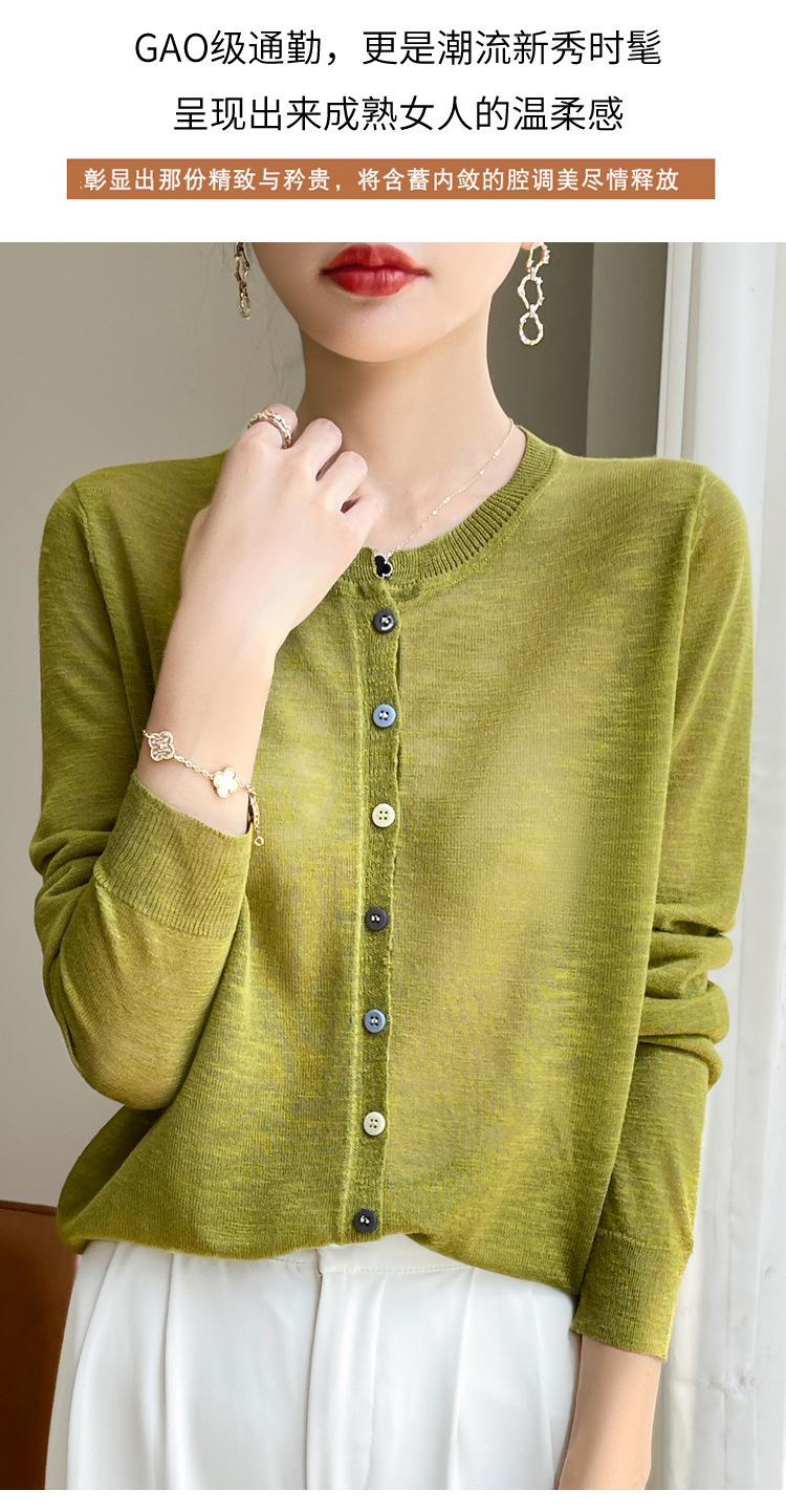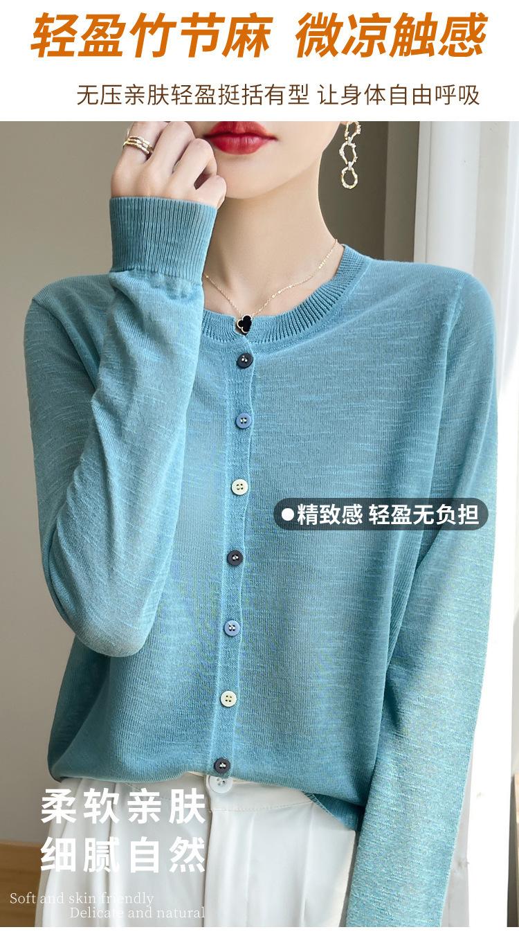 Cárdigan de punto con cuello redondo de verano para mujer, abrigo fino y holgado con protector solar, camisa de manga corta y aire acondicionado, venta al por mayor