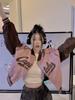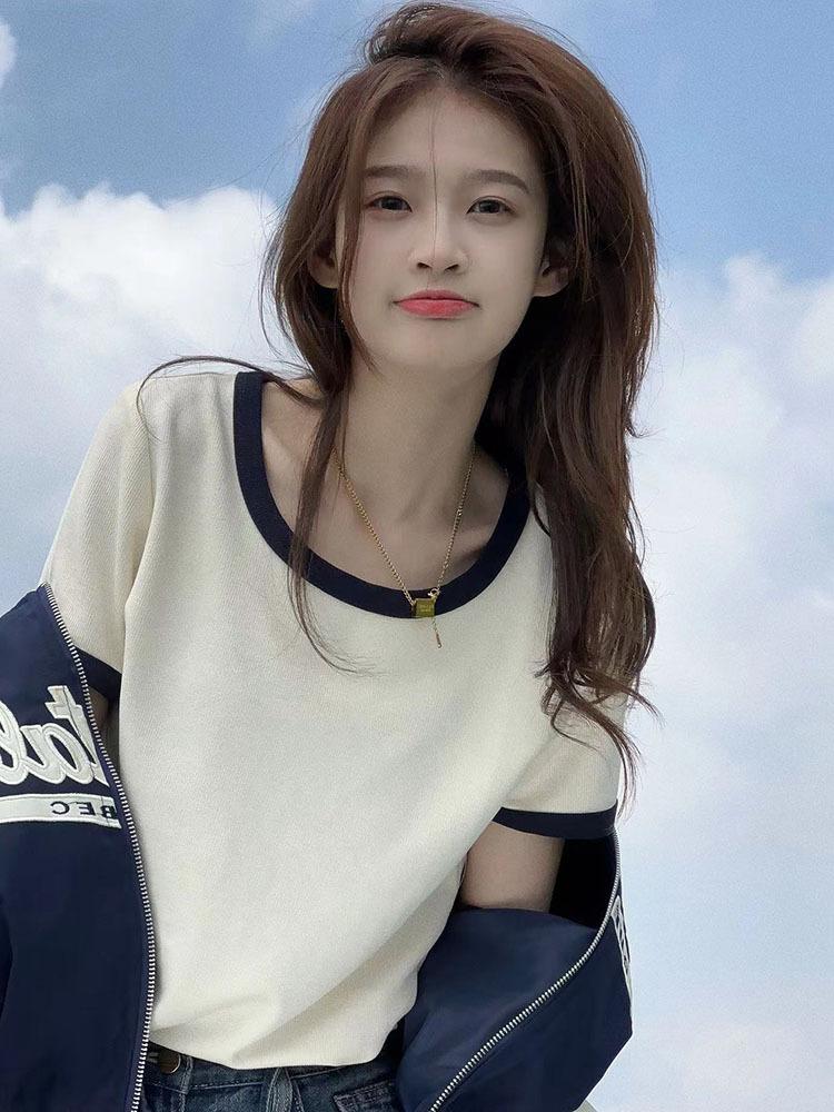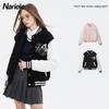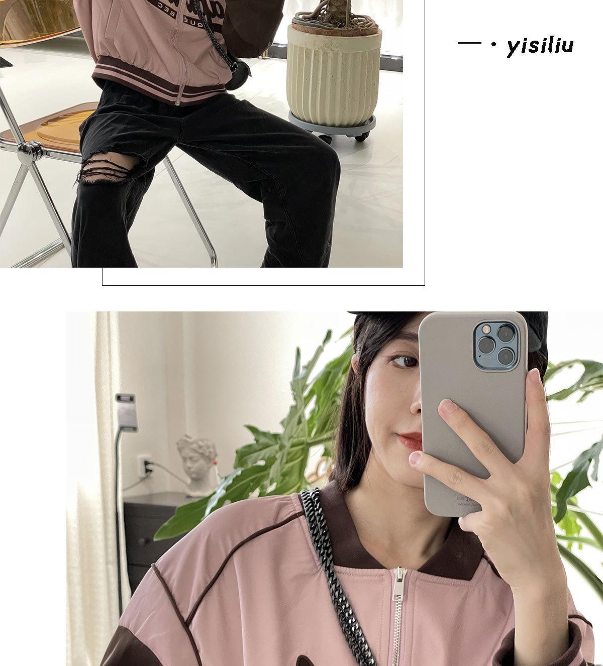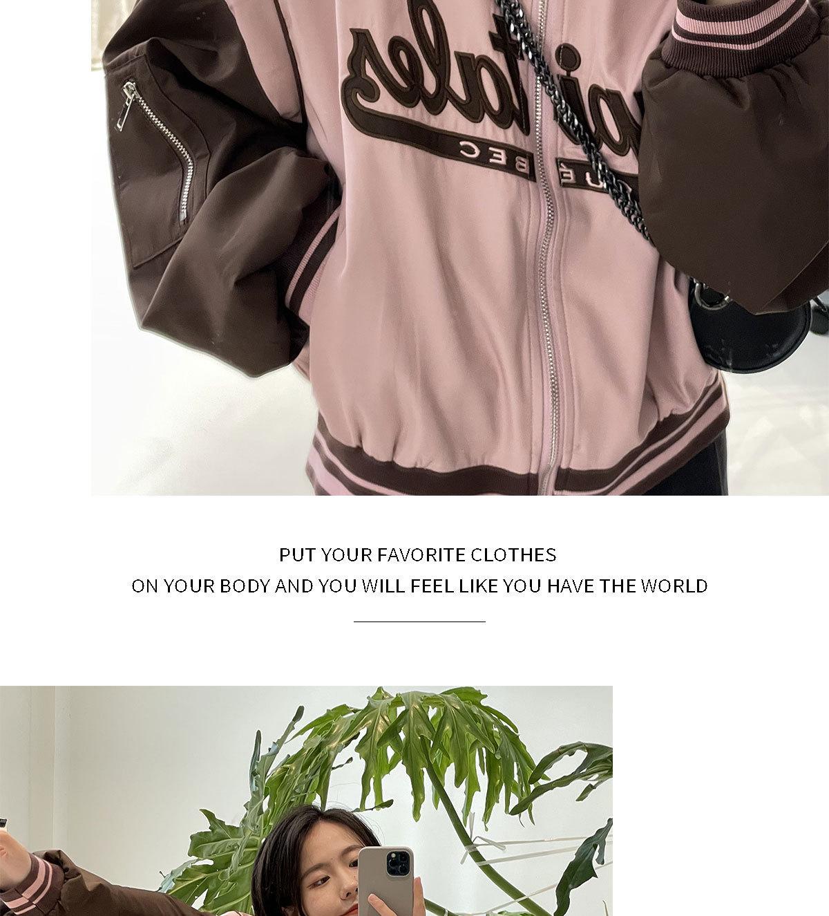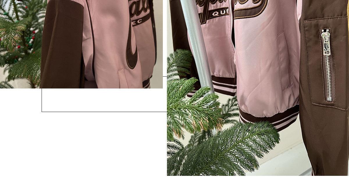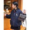Uniforme de Béisbol Estilo Preppy Retro Americano para Mujer Principios de Otoño Nuevo Top con Cuello Alto y Bloque de Color Chaqueta Azul con Cierre para Mujer