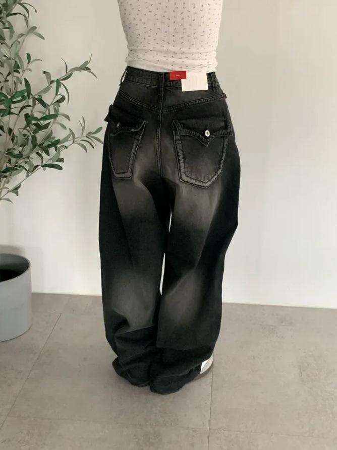 Vaqueros holgados con bordes sin rematar, lavados y de alta calidad, de Dongdaemun, para mujer coreana, para otoño