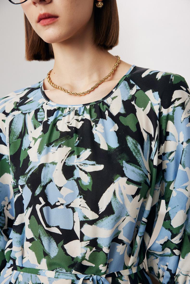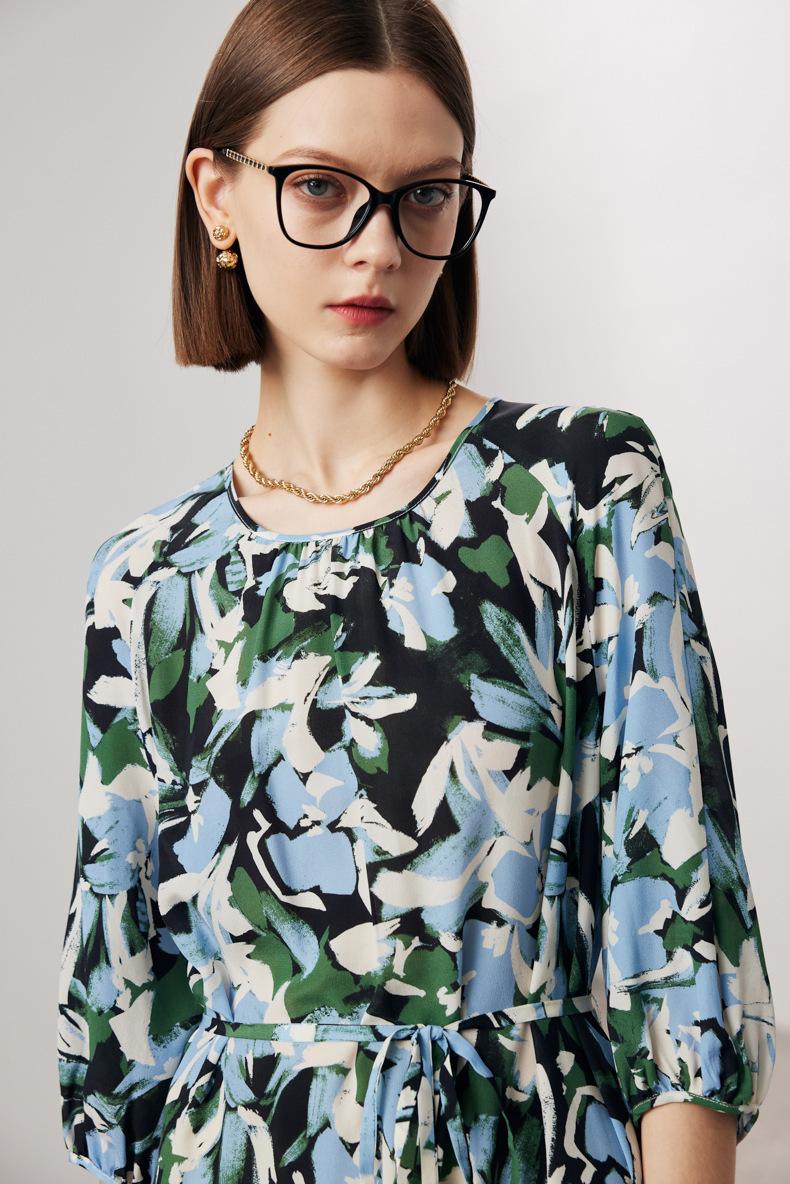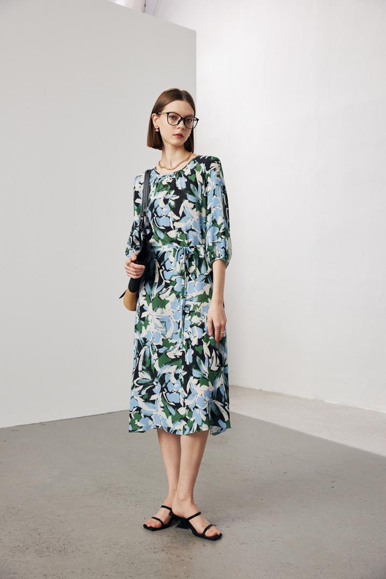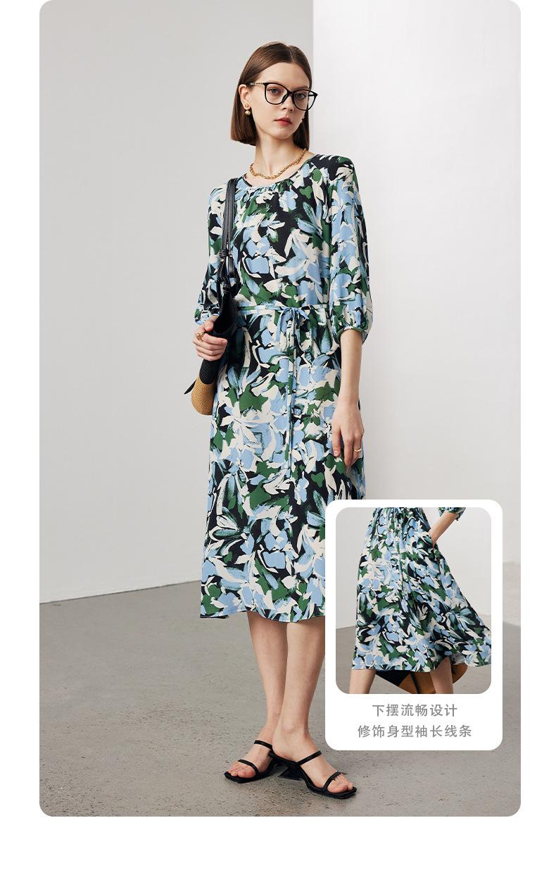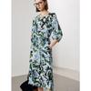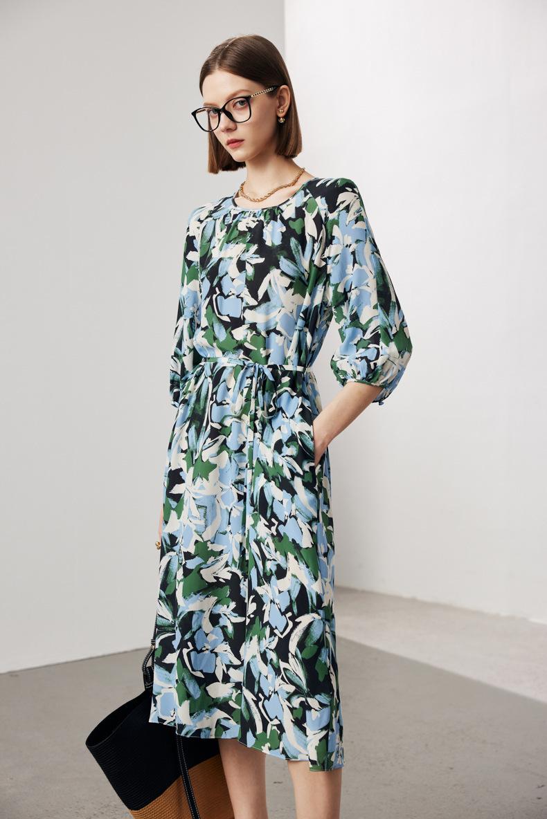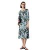 Vestido de Seda de Manga Corta para Mujer Primavera y Verano 2025 Nuevo Estampado Capa Única Crepé de China 100% Seda de Morera Falda Larga
