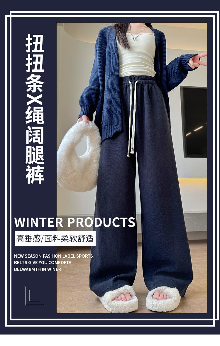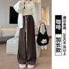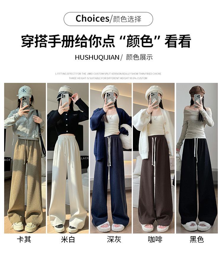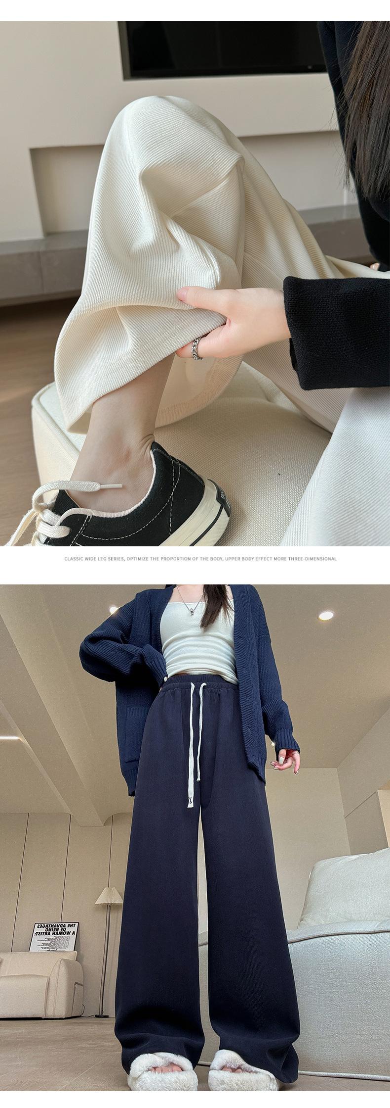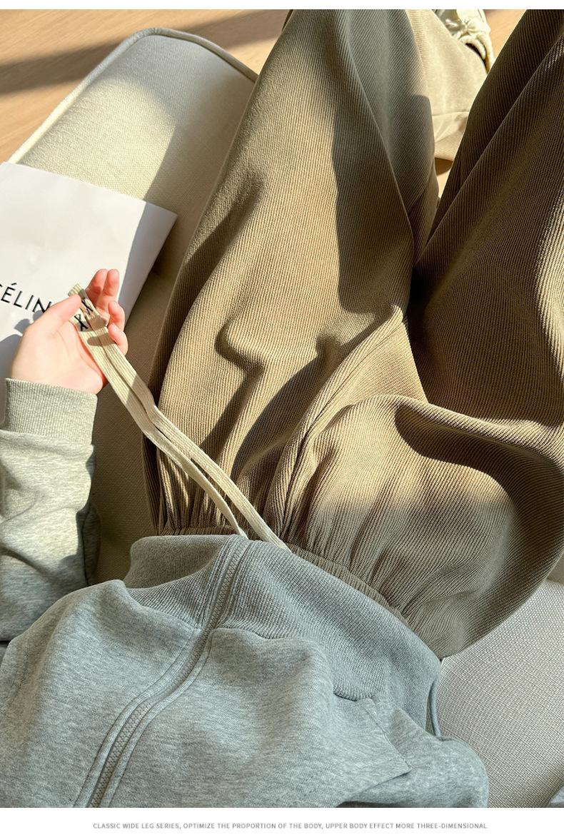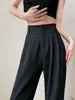 Pantalones torcidos de pierna ancha para mujer Primavera y Otoño 2025 Nuevos Pantalones rectos drapeados de cintura alta delgados Pantalones casuales holgados hasta el suelo