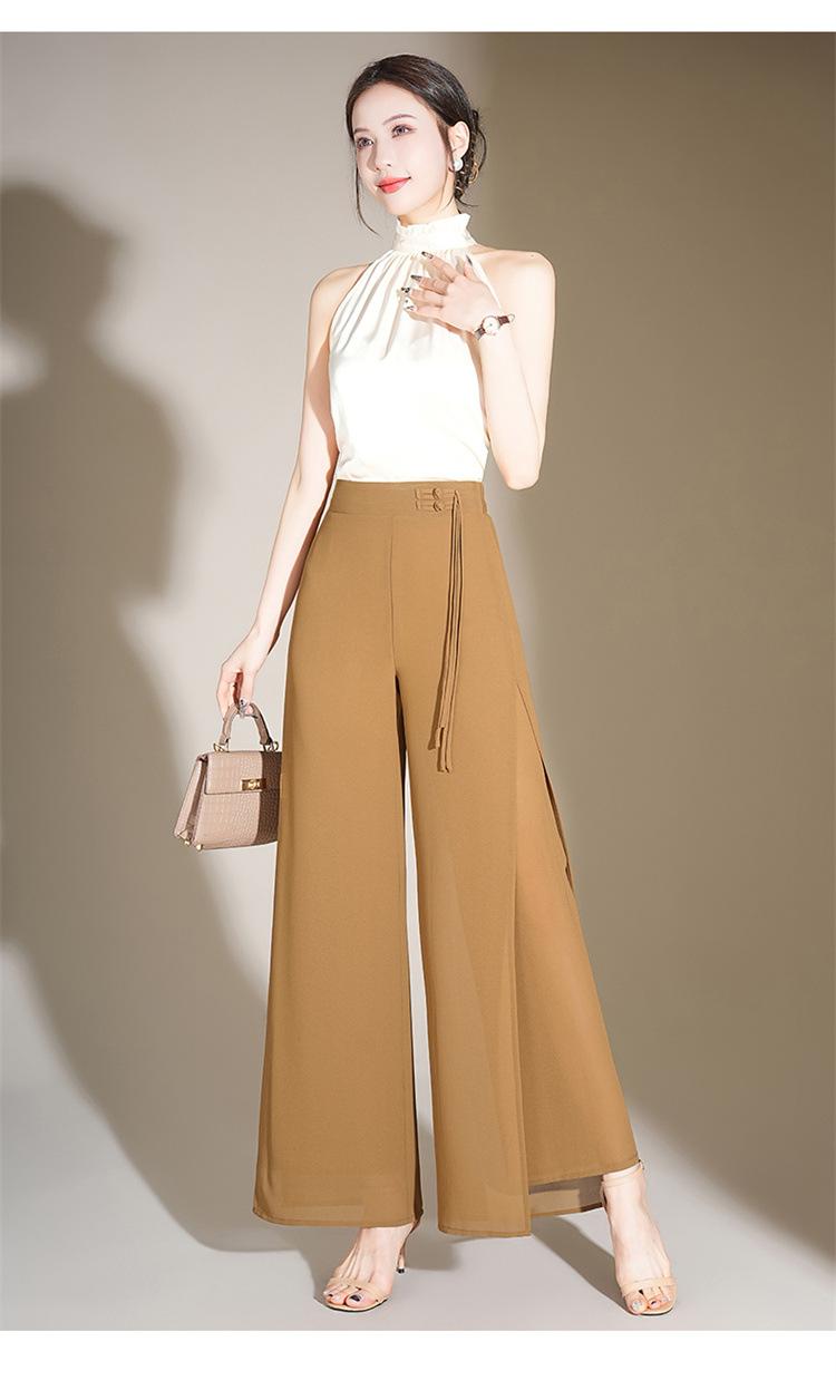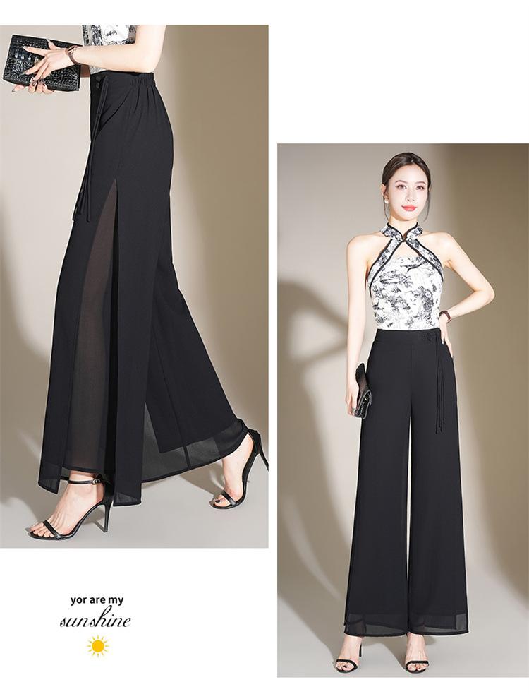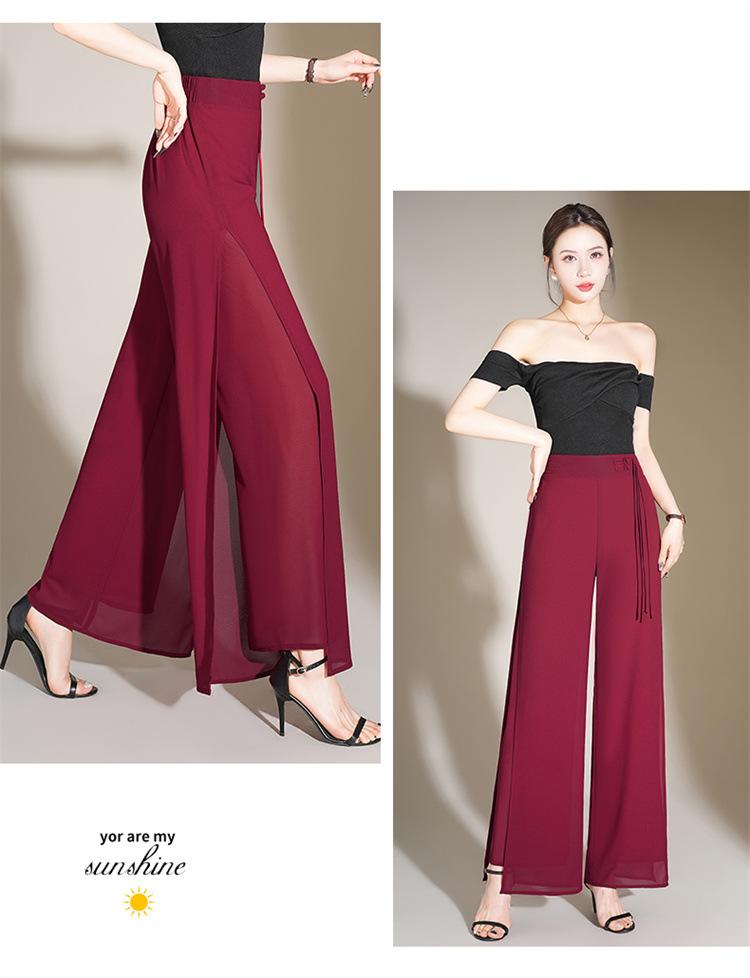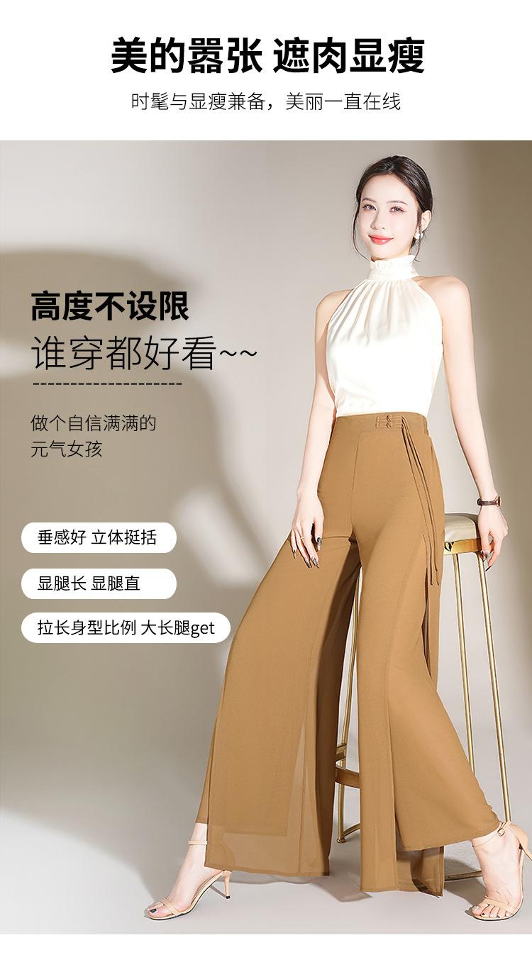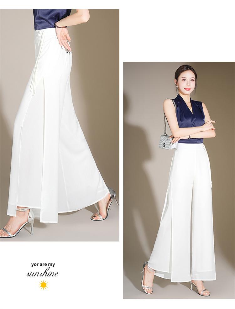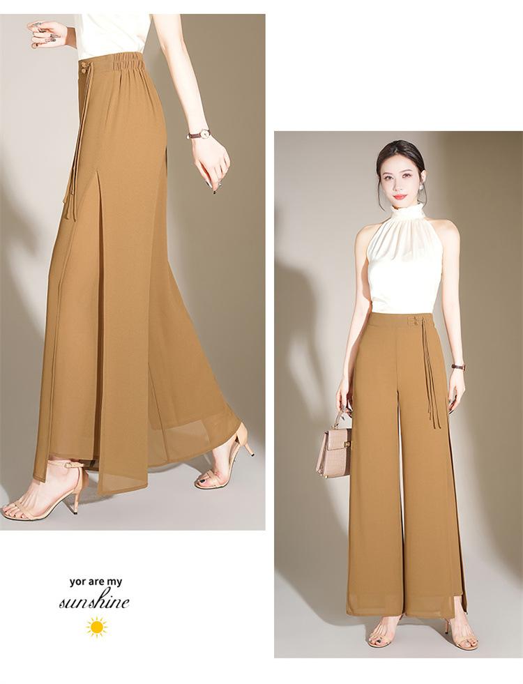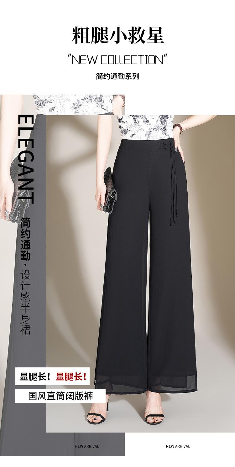 Pantalones anchos de gasa elegantes para mujer, verano 2024, nuevos pantalones holgados de cintura alta con abertura recta elegantes para mujer