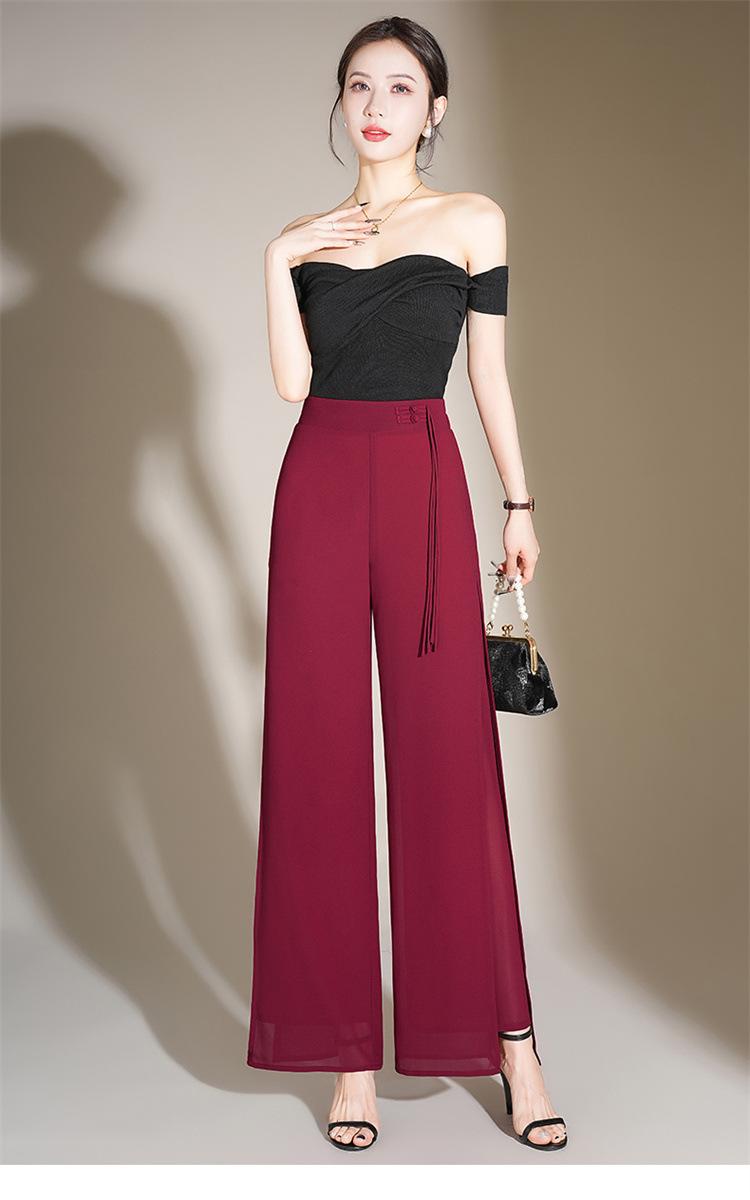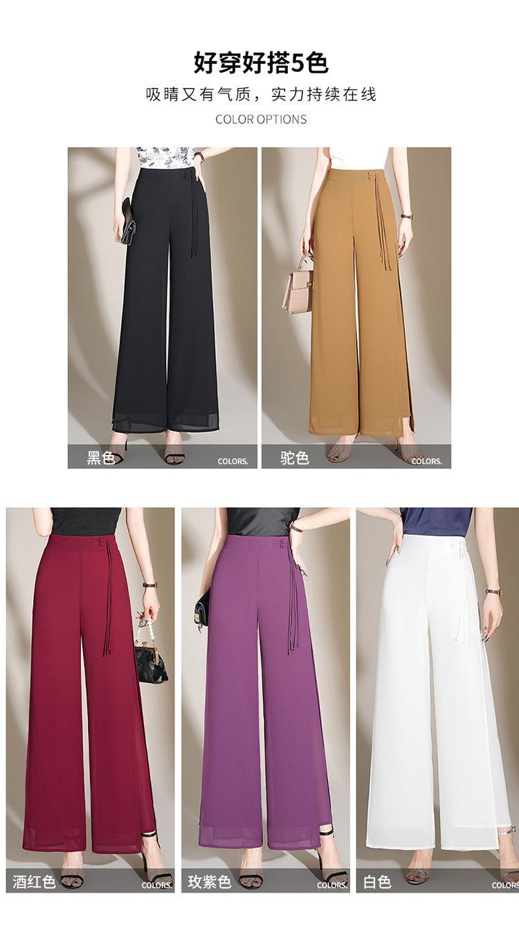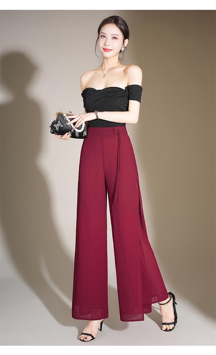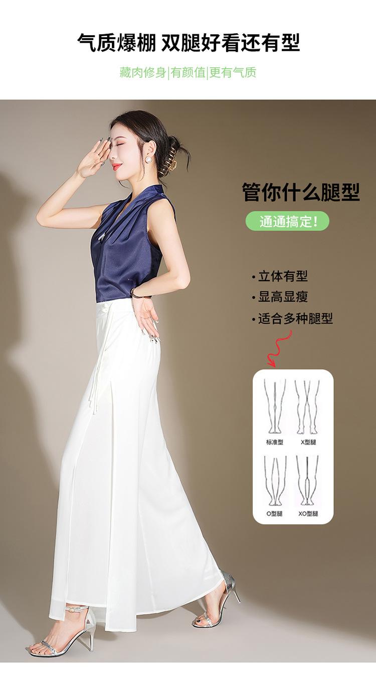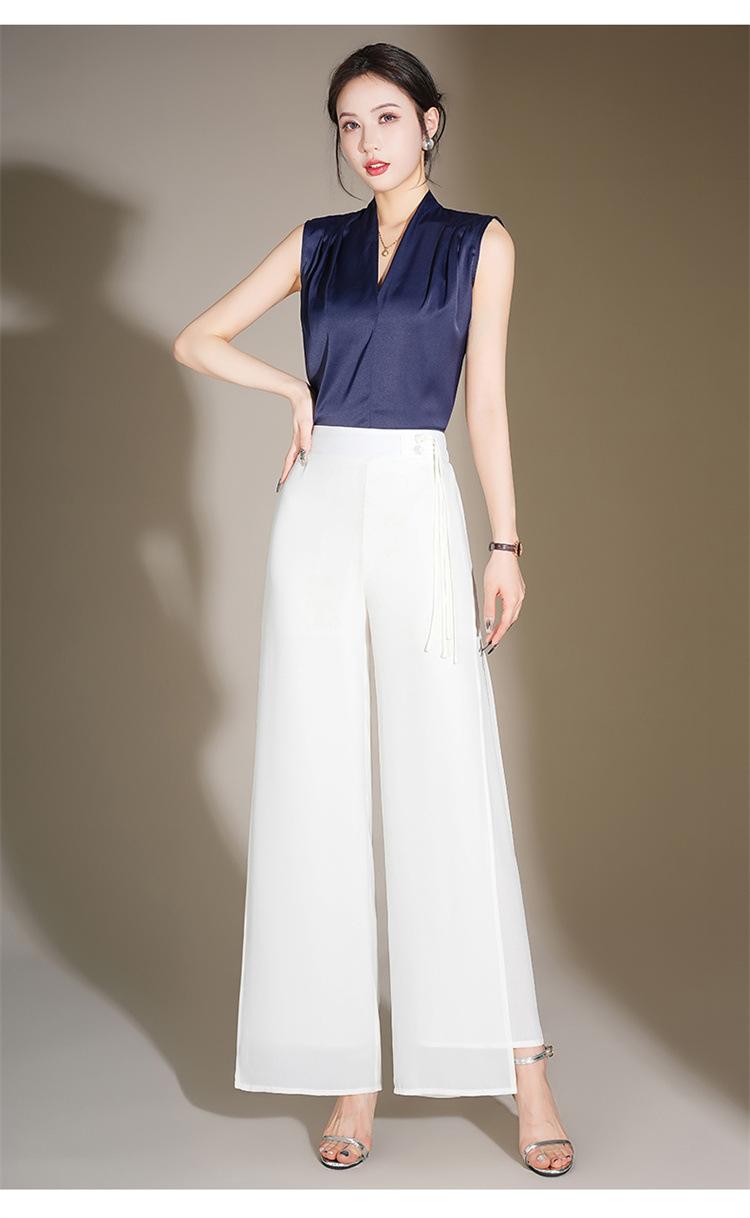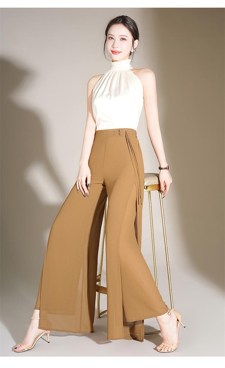 Pantalones anchos de gasa elegantes para mujer, verano 2024, nuevos pantalones holgados de cintura alta con abertura recta elegantes para mujer