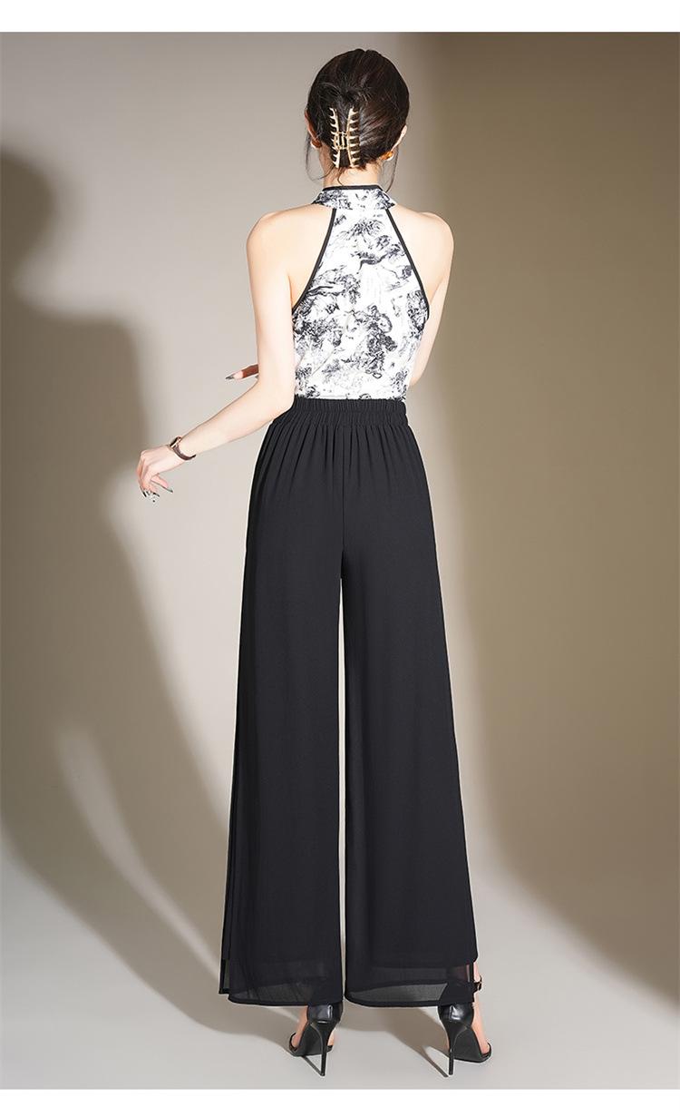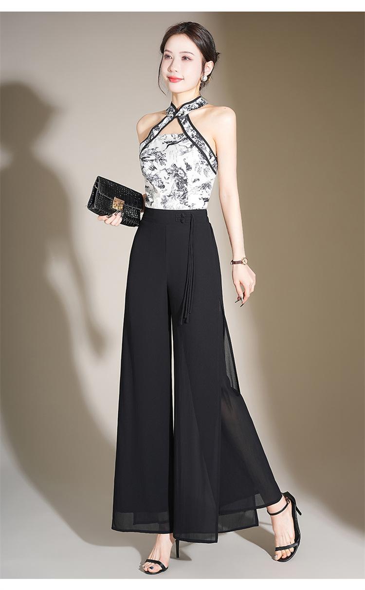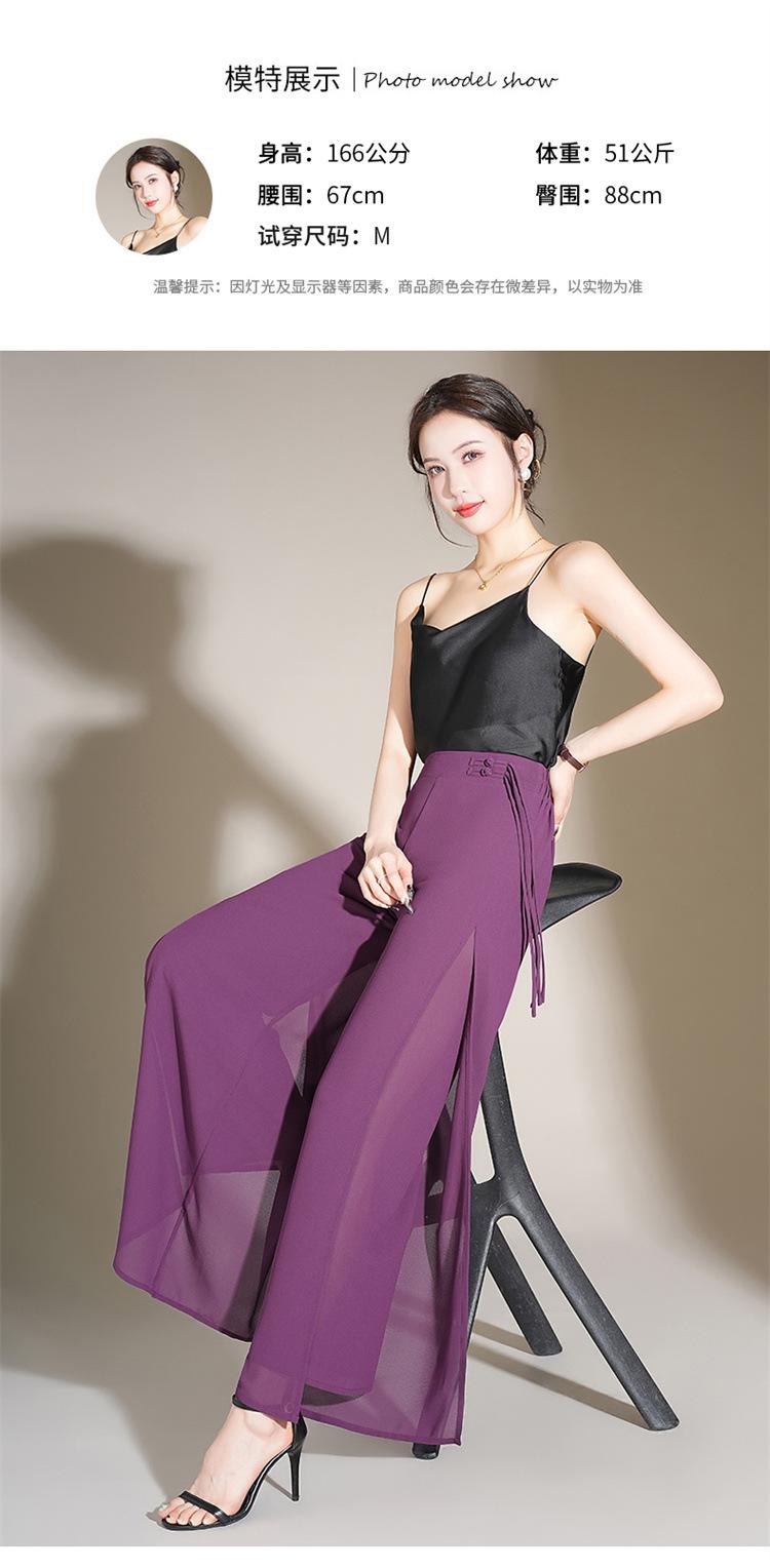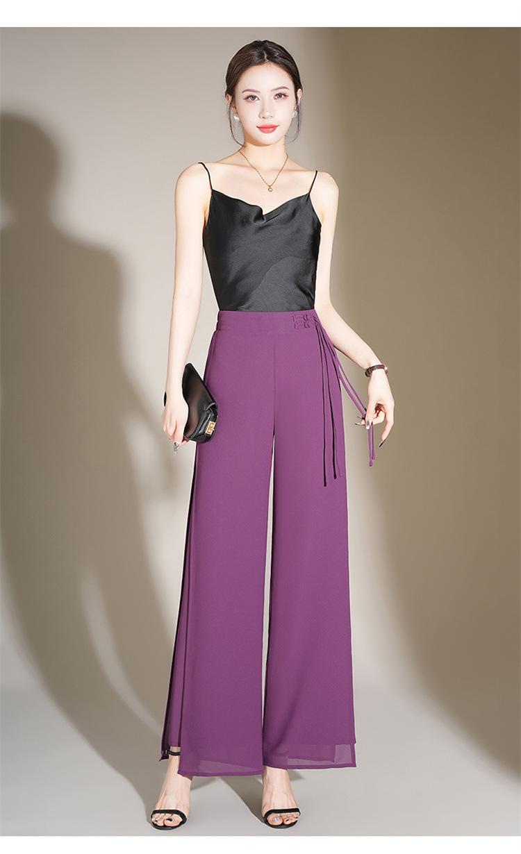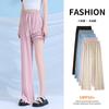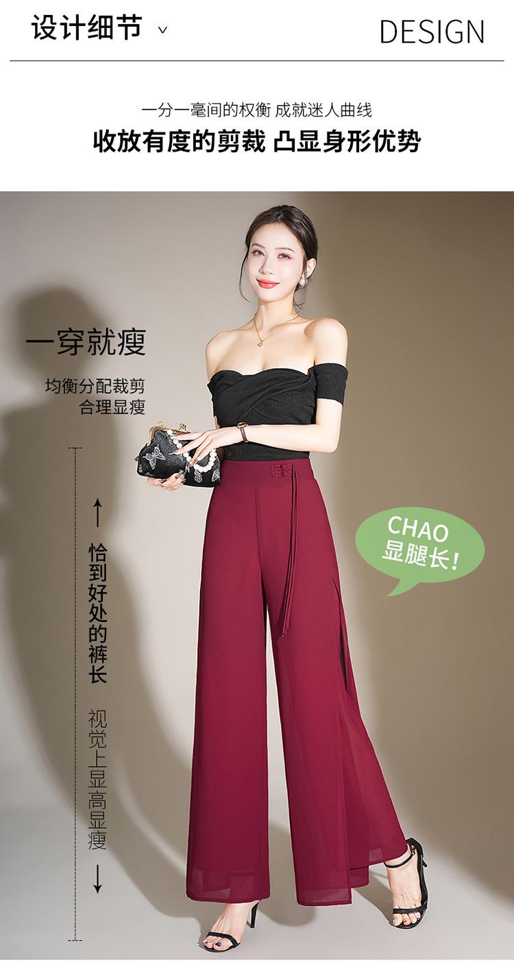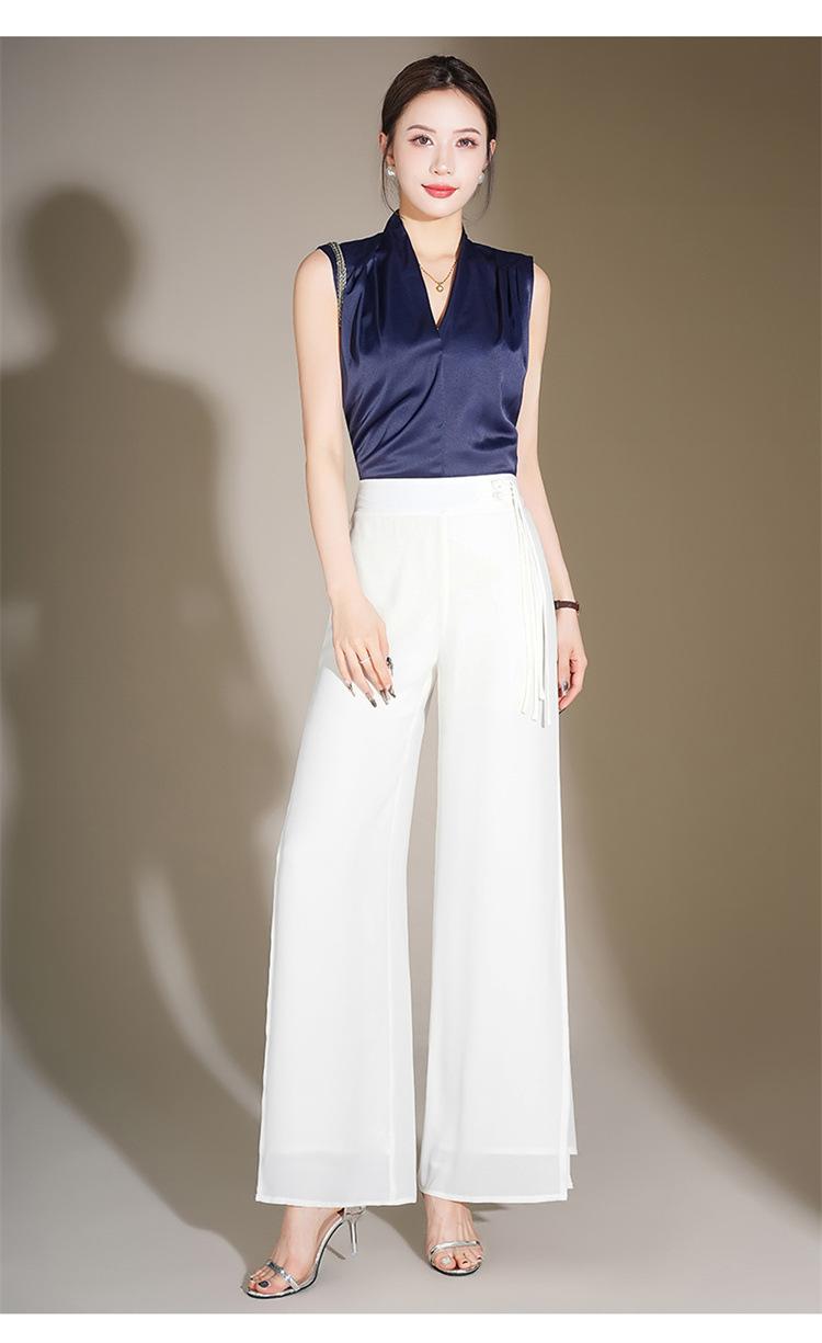 Pantalones anchos de gasa elegantes para mujer, verano 2024, nuevos pantalones holgados de cintura alta con abertura recta elegantes para mujer