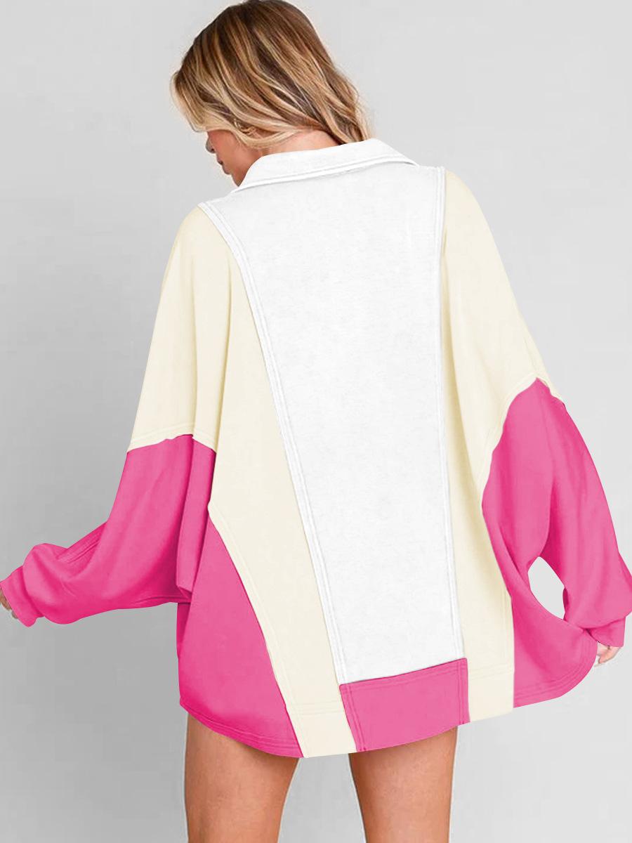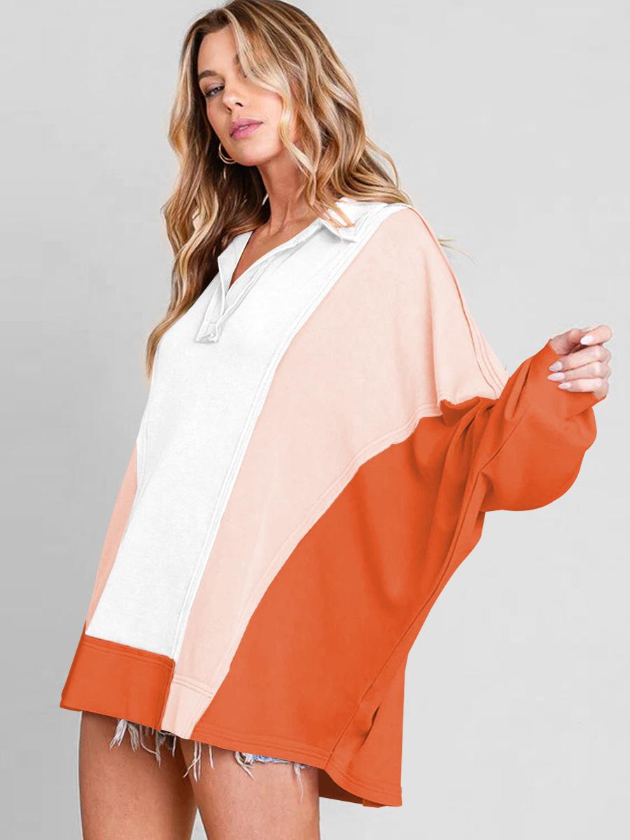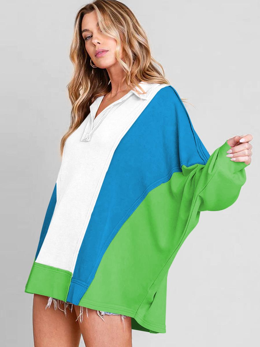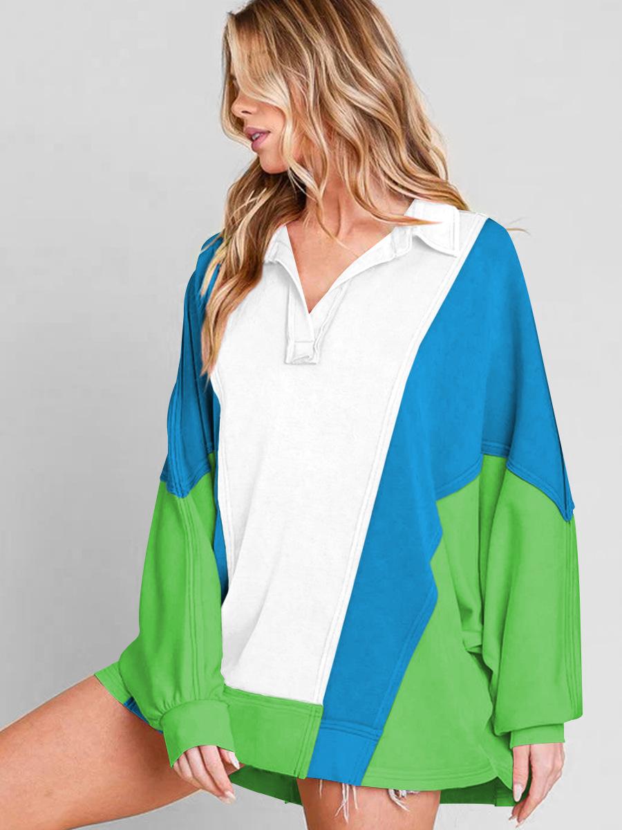 Amazon Europeo y Americano Nuevo Polo de Mujer Costuras de Color Suéter Holgado Casual Decorativo Manga Larga