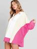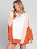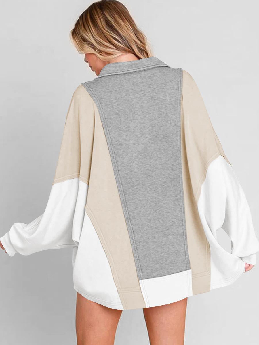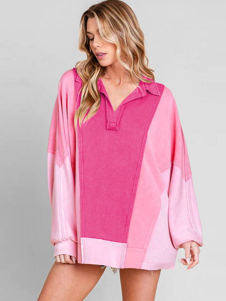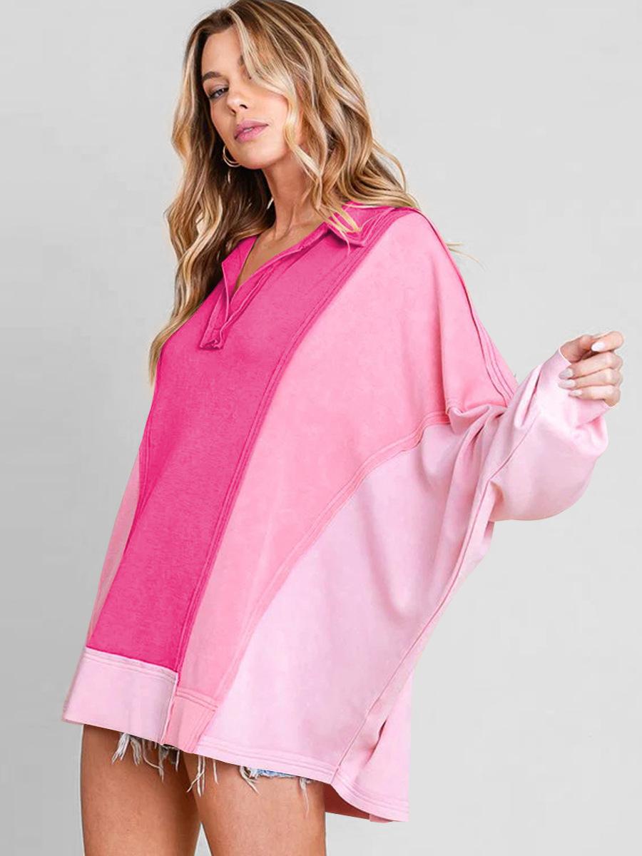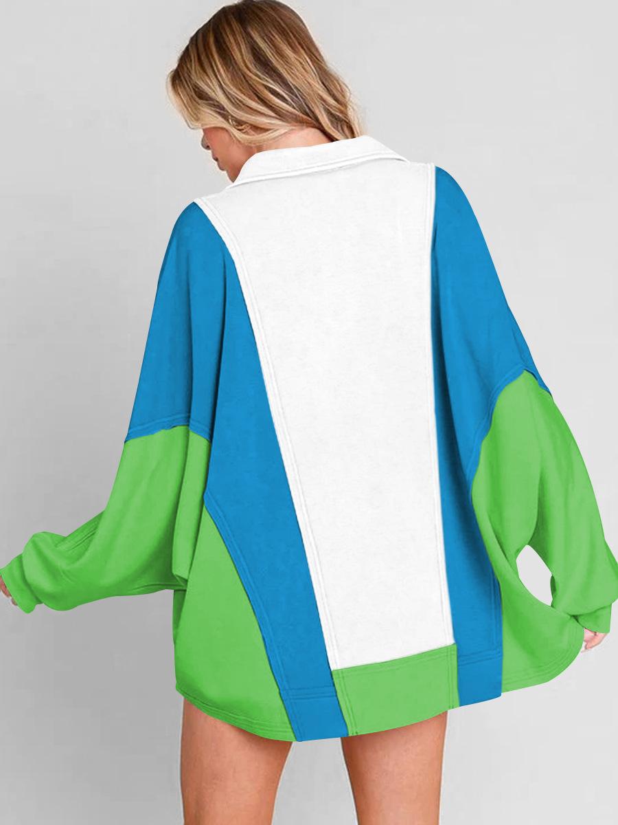 Amazon Europeo y Americano Nuevo Polo de Mujer Costuras de Color Suéter Holgado Casual Decorativo Manga Larga