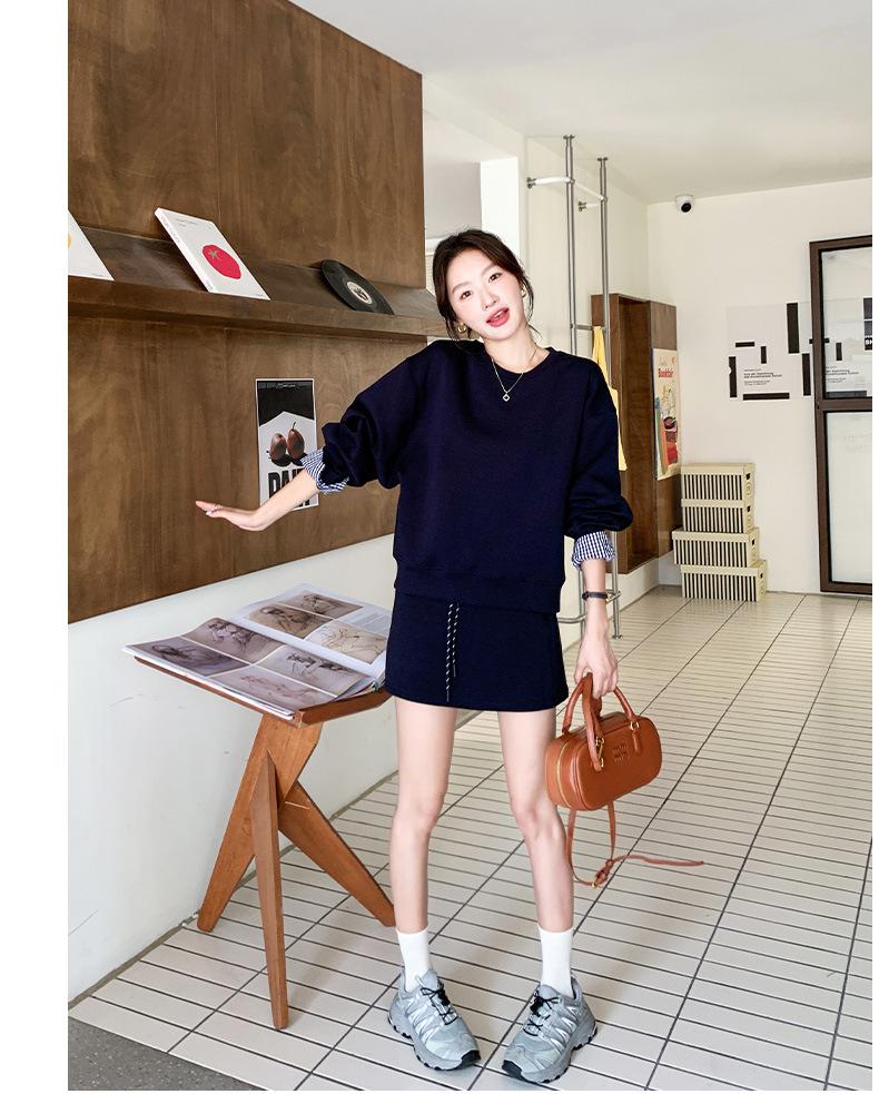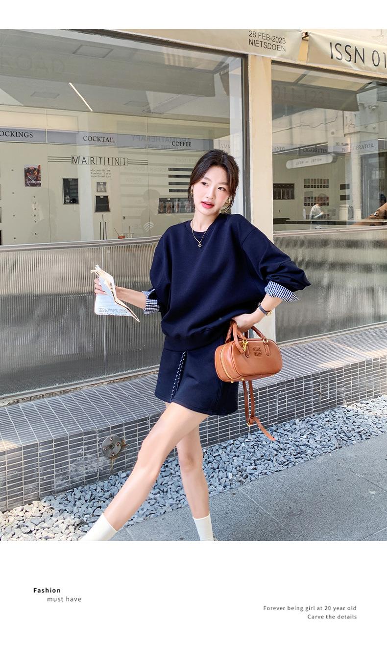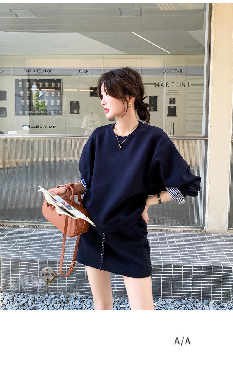 Conjunto de dos piezas de falda y suéter falso de dos piezas para mujer de principios de otoño de 2024, estilo coreano