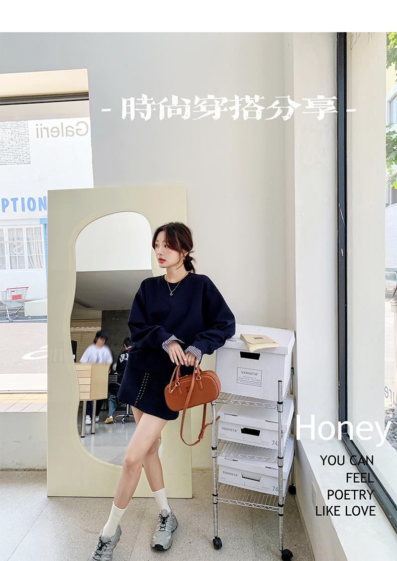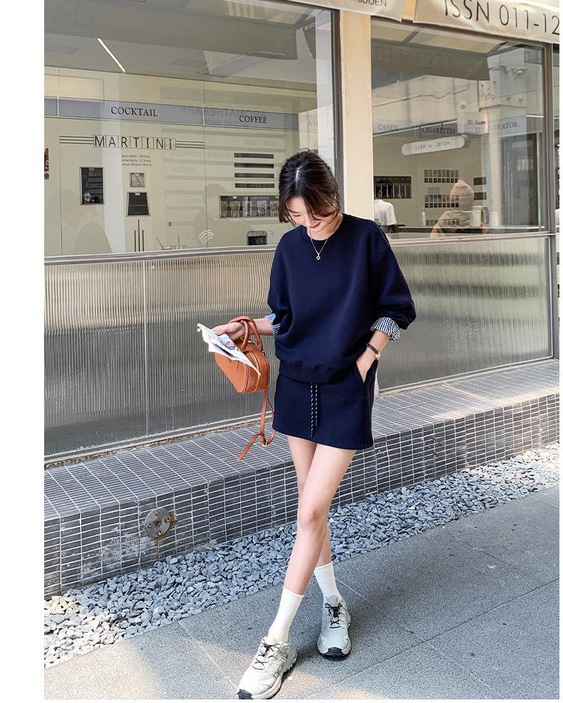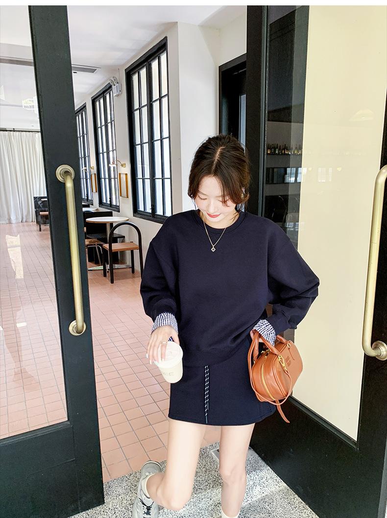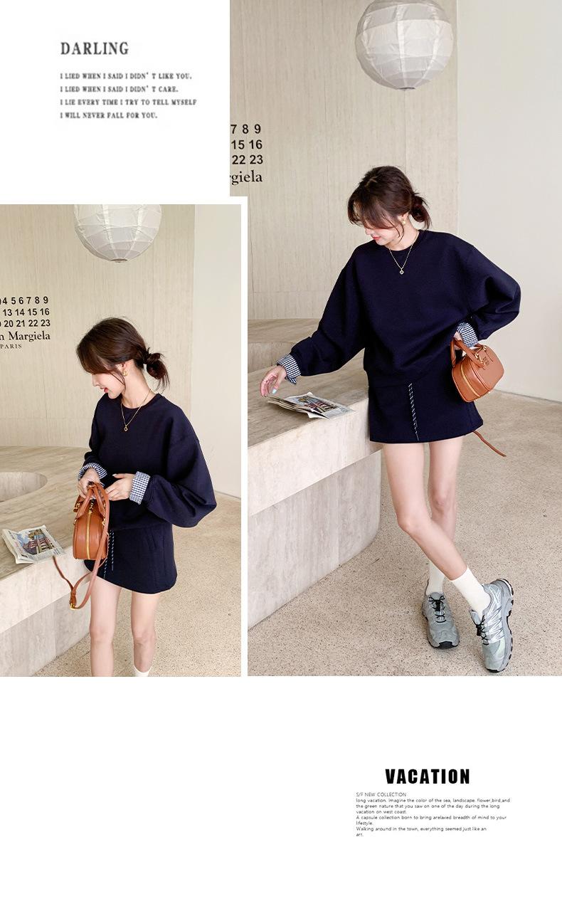 Conjunto de dos piezas de falda y suéter falso de dos piezas para mujer de principios de otoño de 2024, estilo coreano