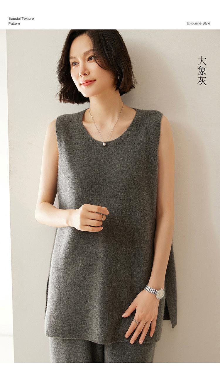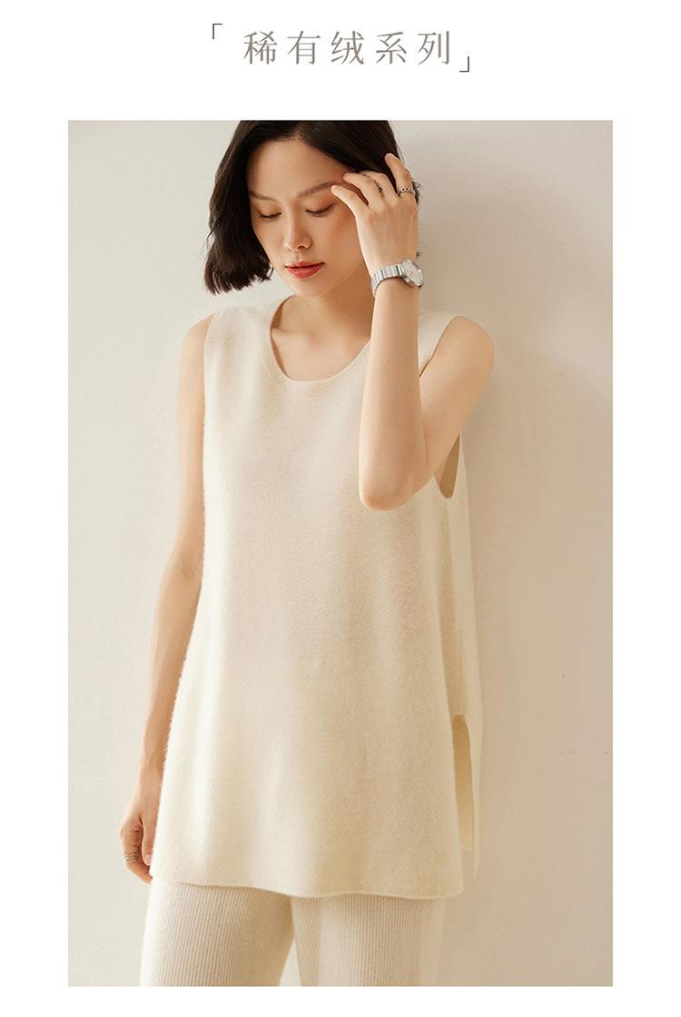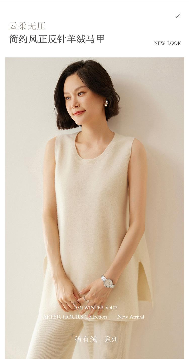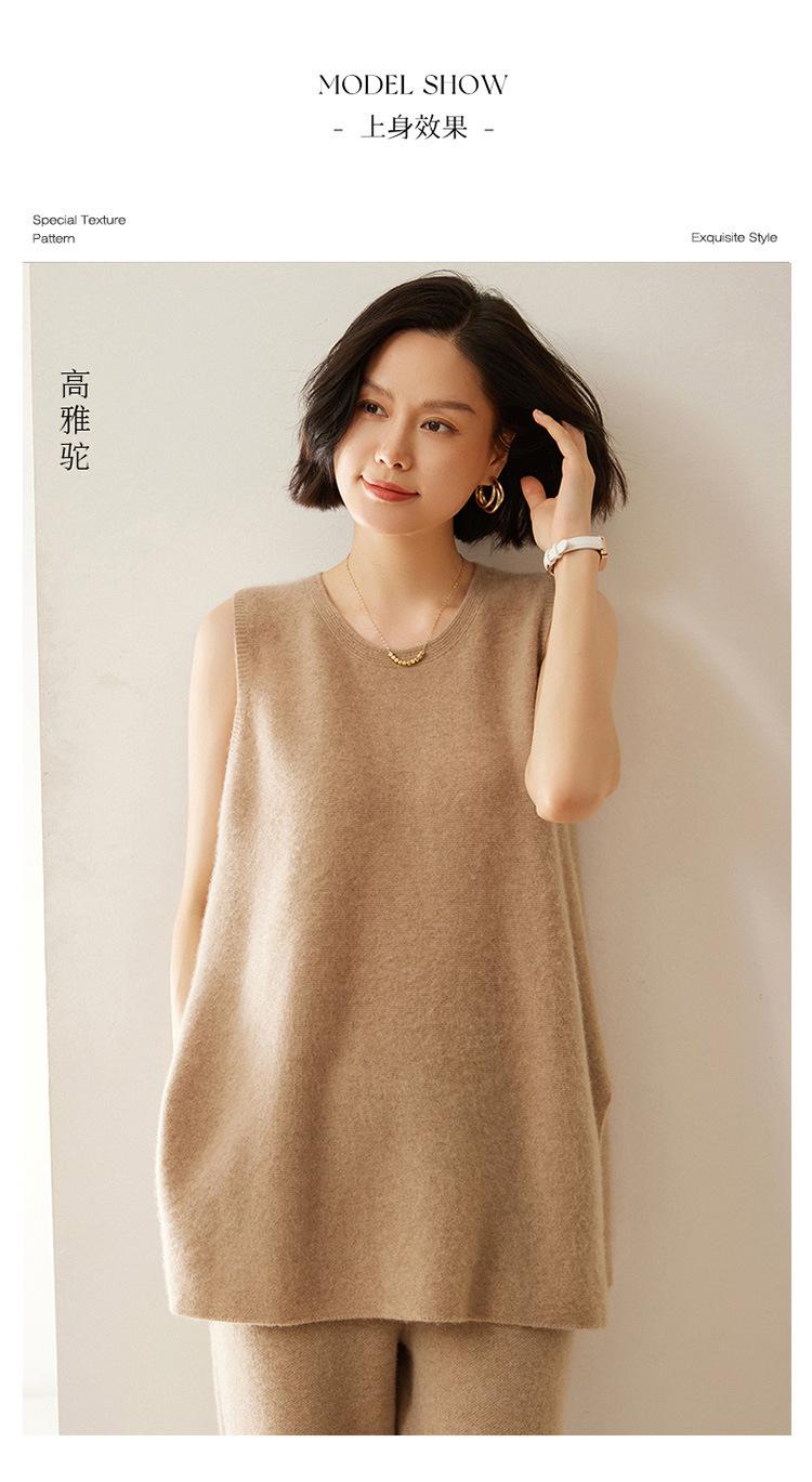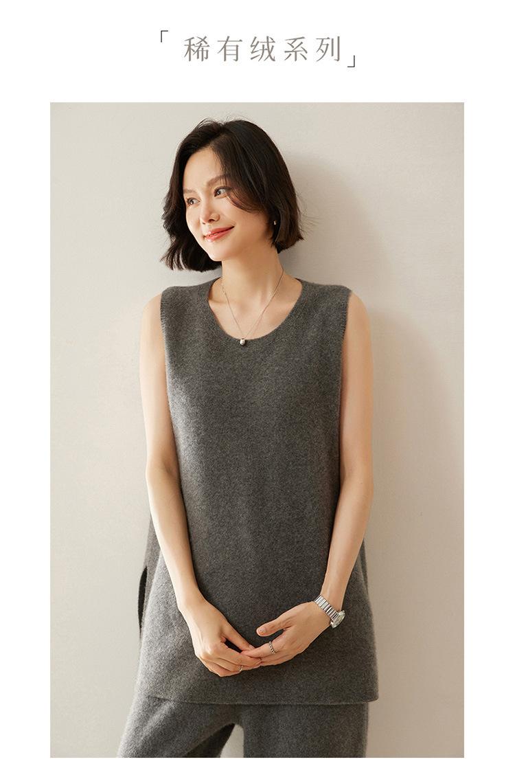 Cachemira 2025 Nuevo Otoño e Invierno Chaleco de Punto de Cuello Redondo para Mujer Aspecto Adelgazante Elegante Versátil Lana Largo Medio Holgado