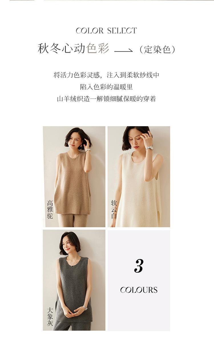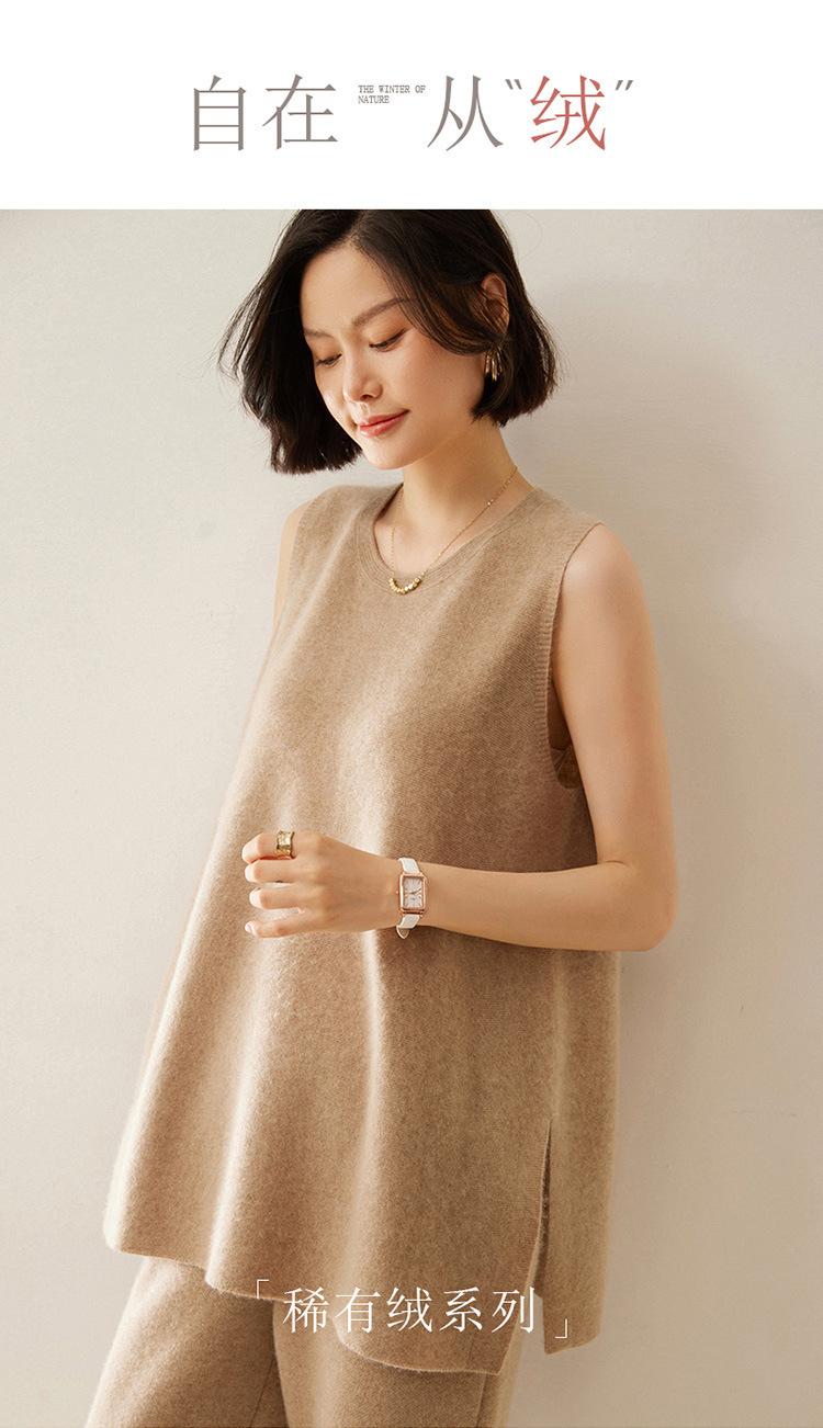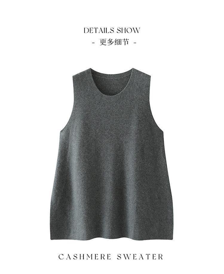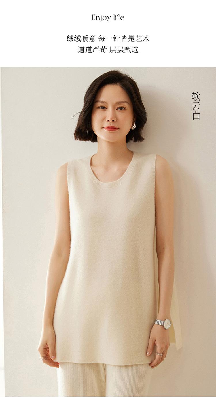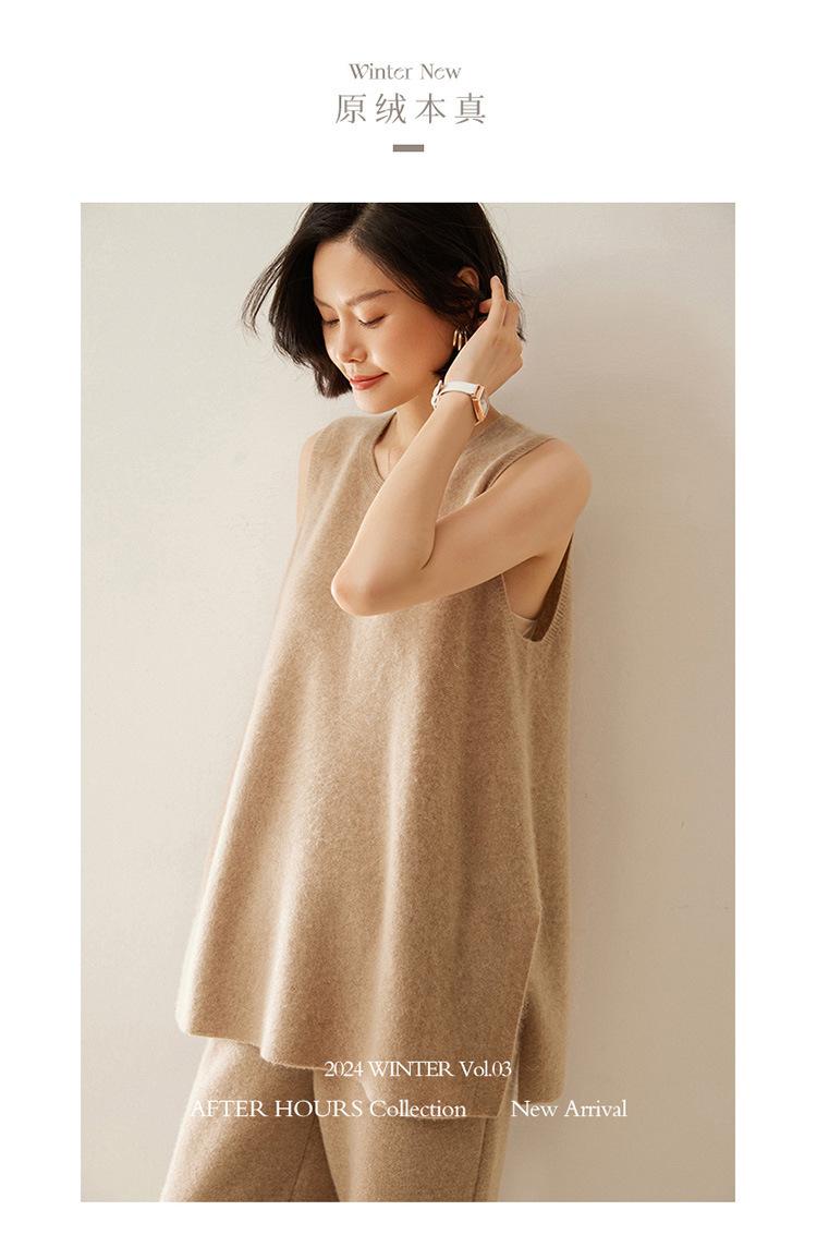 Cachemira 2025 Nuevo Otoño e Invierno Chaleco de Punto de Cuello Redondo para Mujer Aspecto Adelgazante Elegante Versátil Lana Largo Medio Holgado
