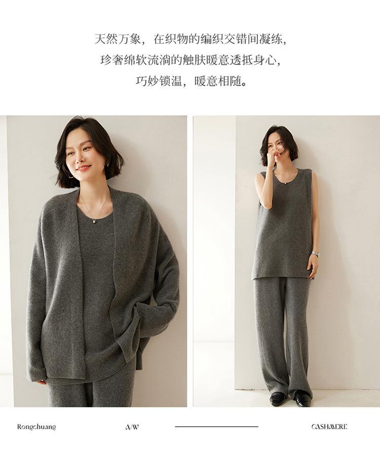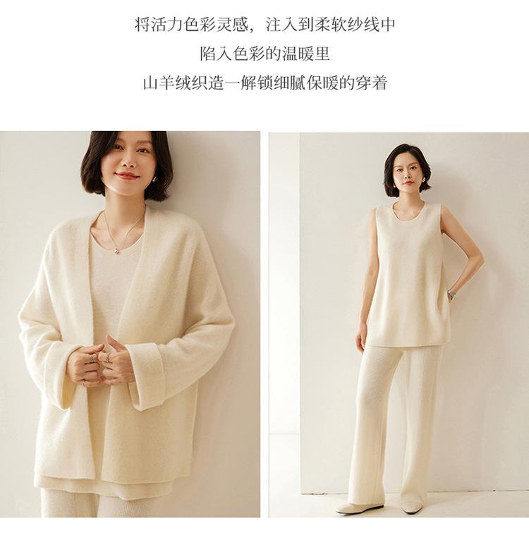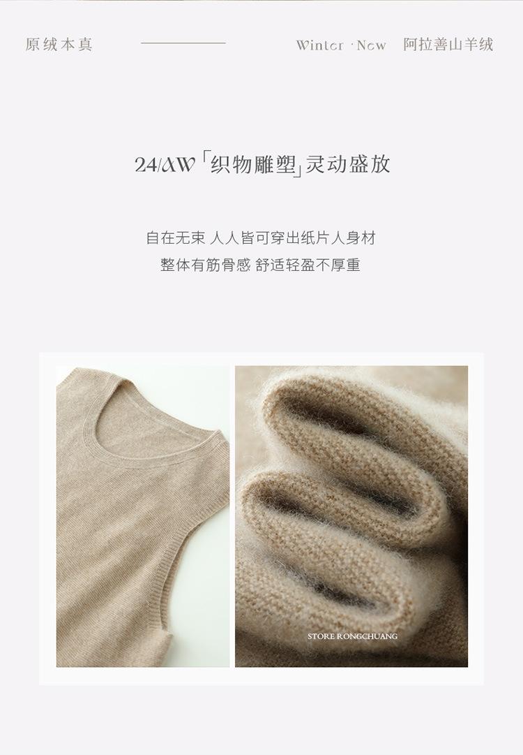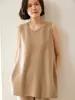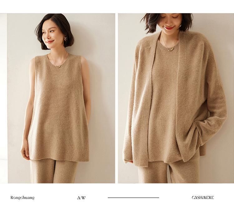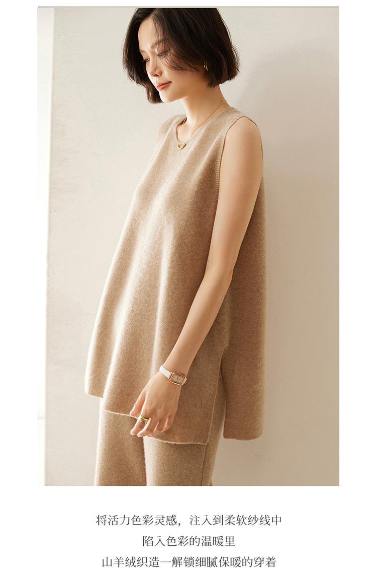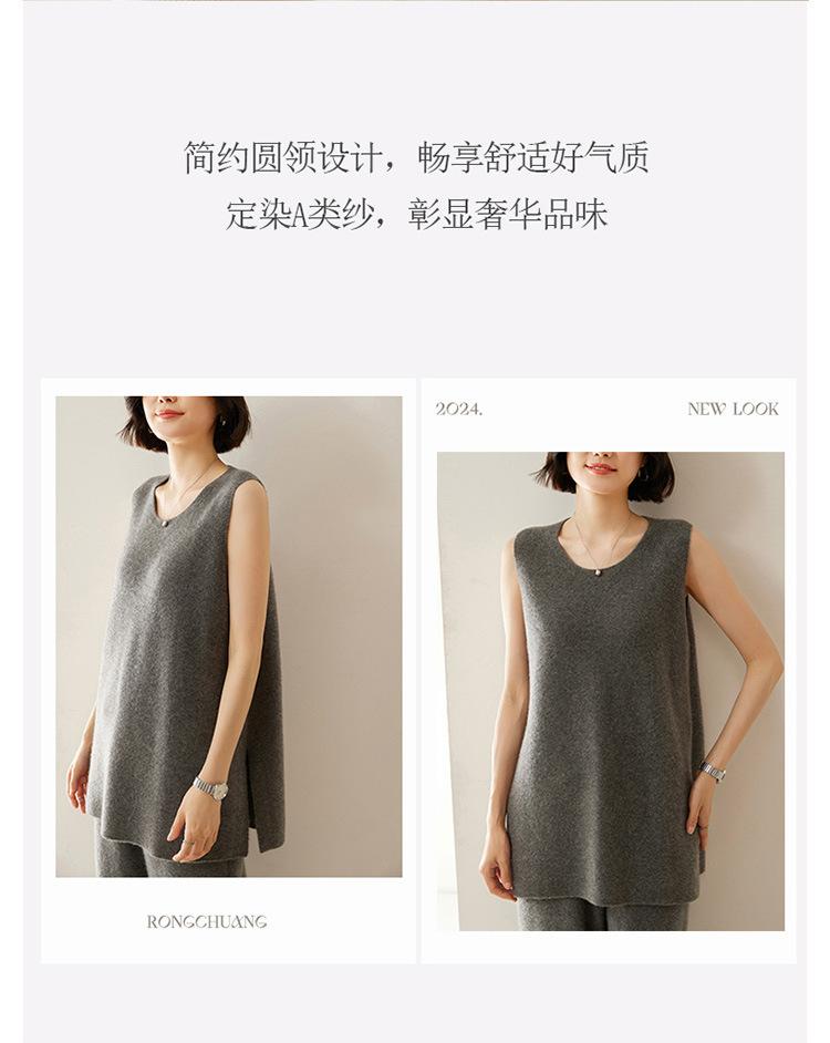 Cachemira 2025 Nuevo Otoño e Invierno Chaleco de Punto de Cuello Redondo para Mujer Aspecto Adelgazante Elegante Versátil Lana Largo Medio Holgado