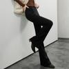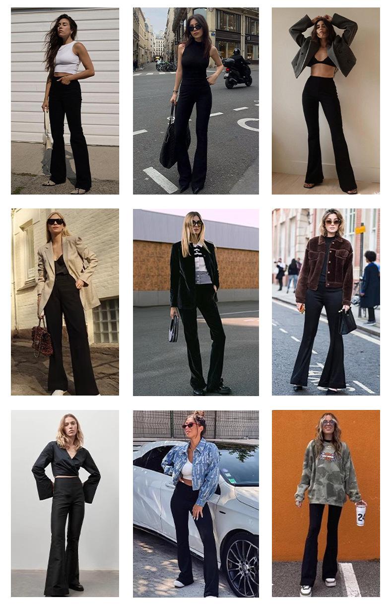 Traje Negro Petite para Mujer Pantalones Campana Primavera y Otoño Ajustado Cintura Alta Elástico Casual Pantalones Acampanados Cintura Alta Adelgazante