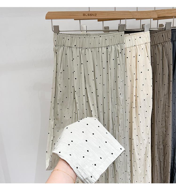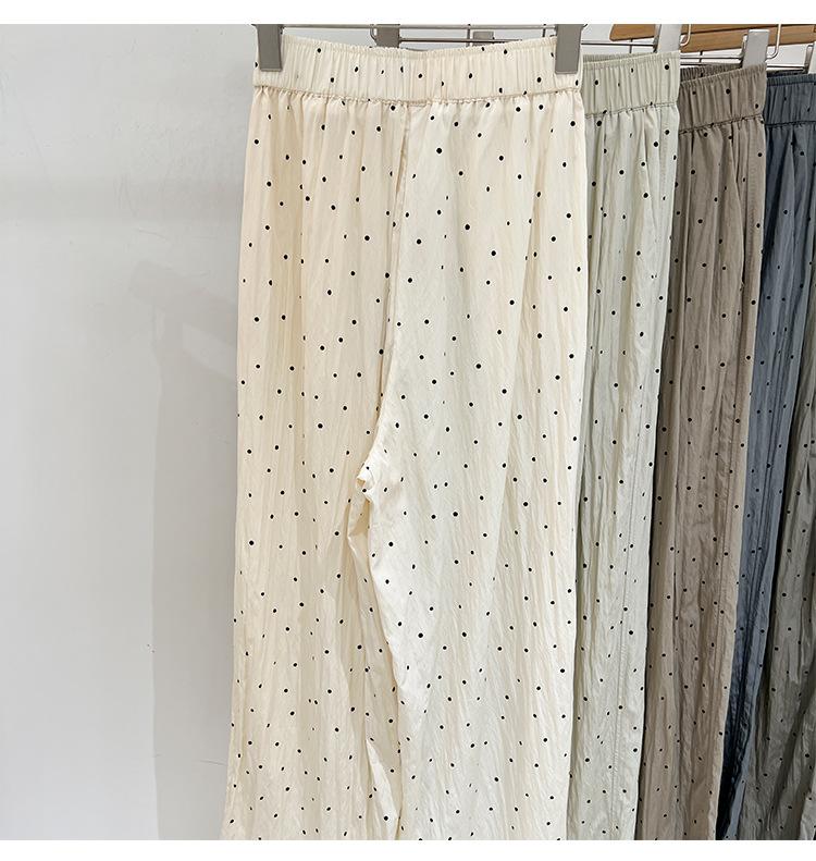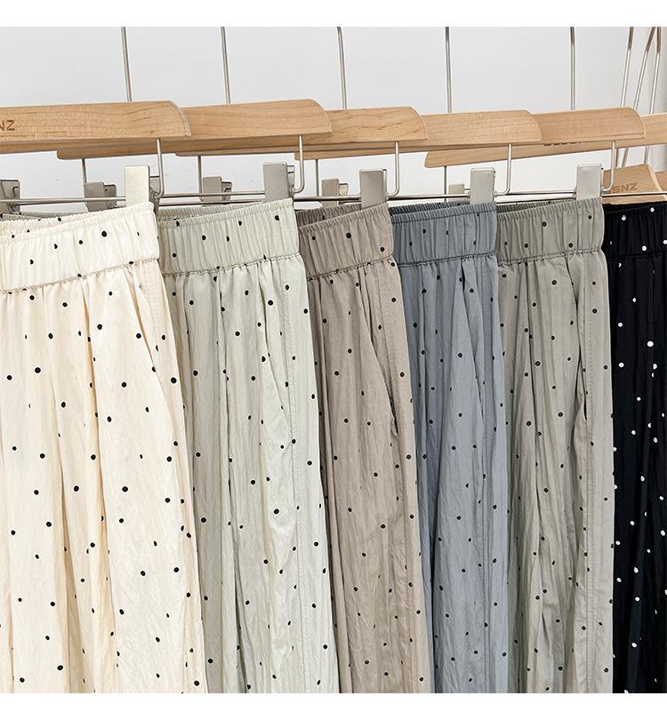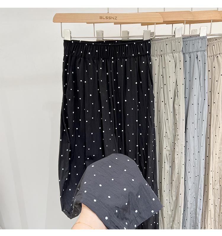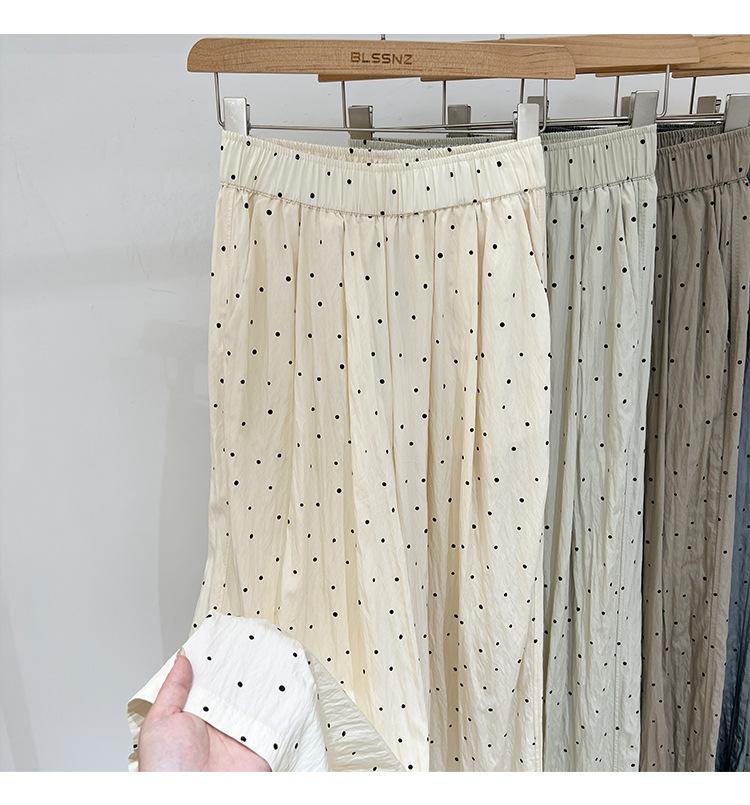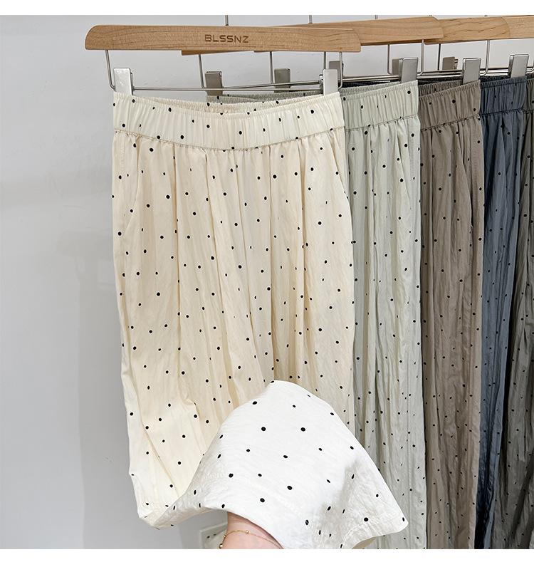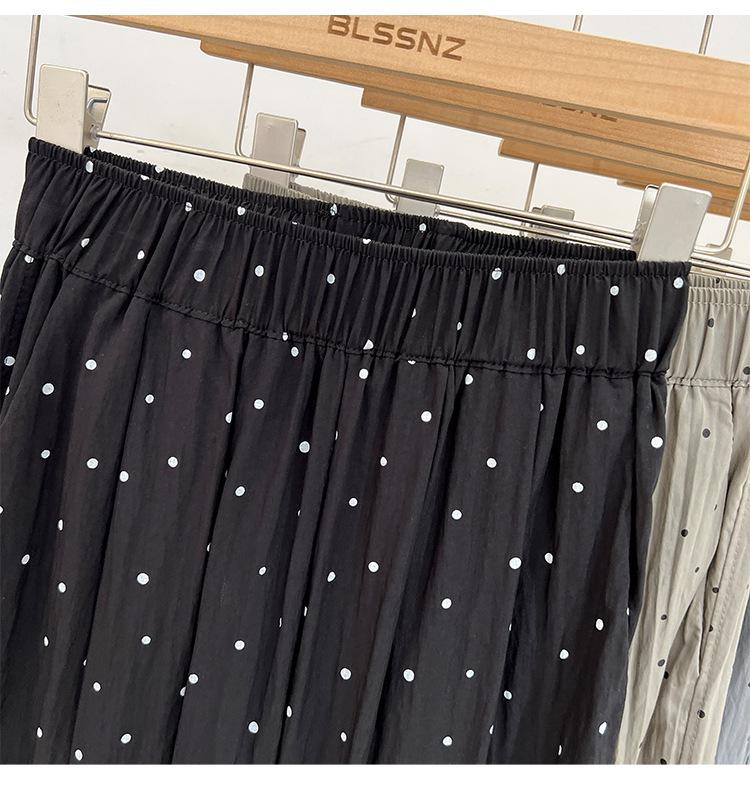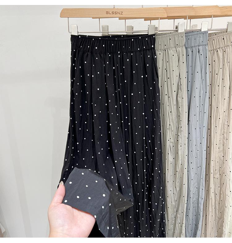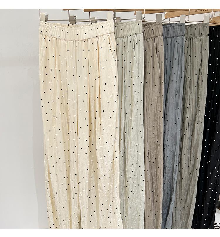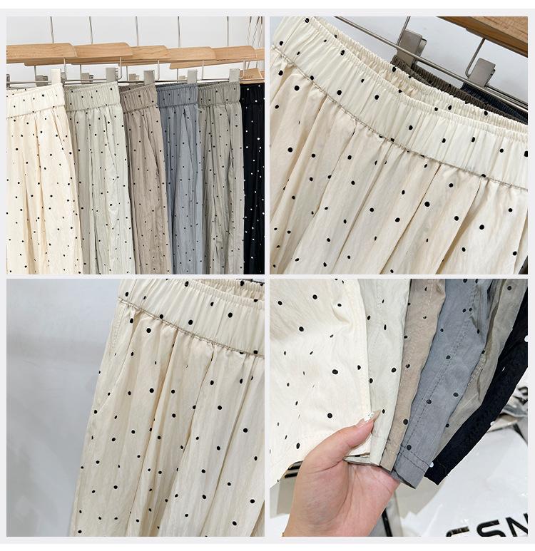 Pantalones casuales de lunares negros para mujer, nuevos pantalones de verano de cintura alta, sueltos, adelgazantes, con forma de pera y pierna ancha.