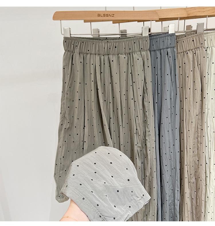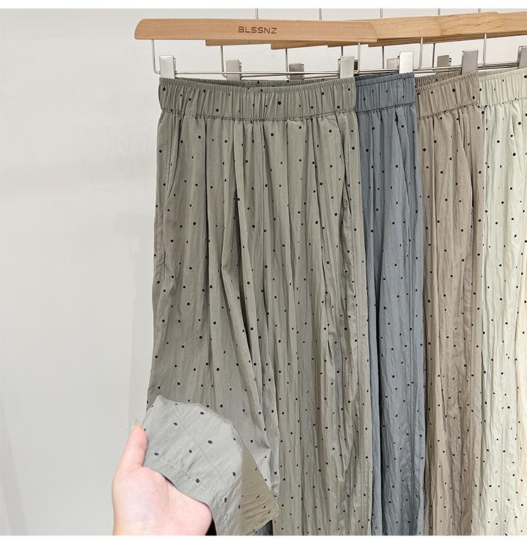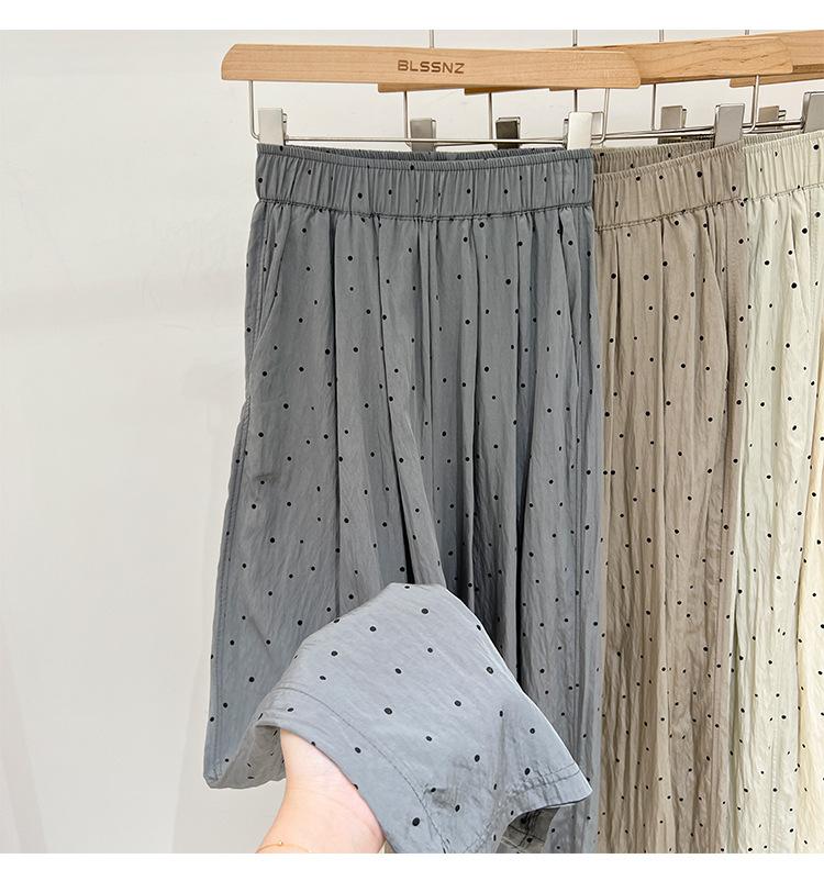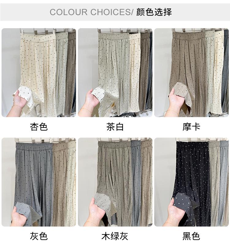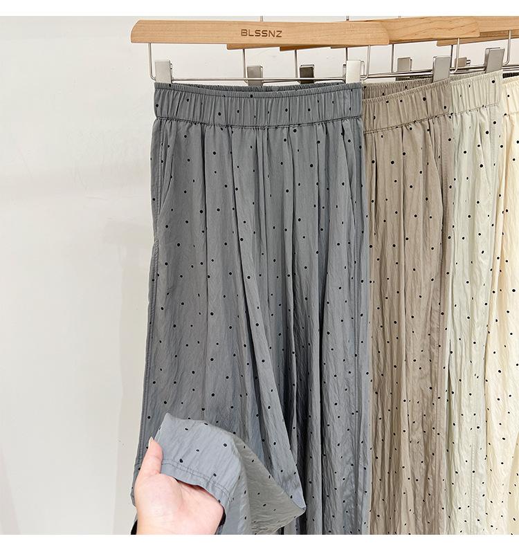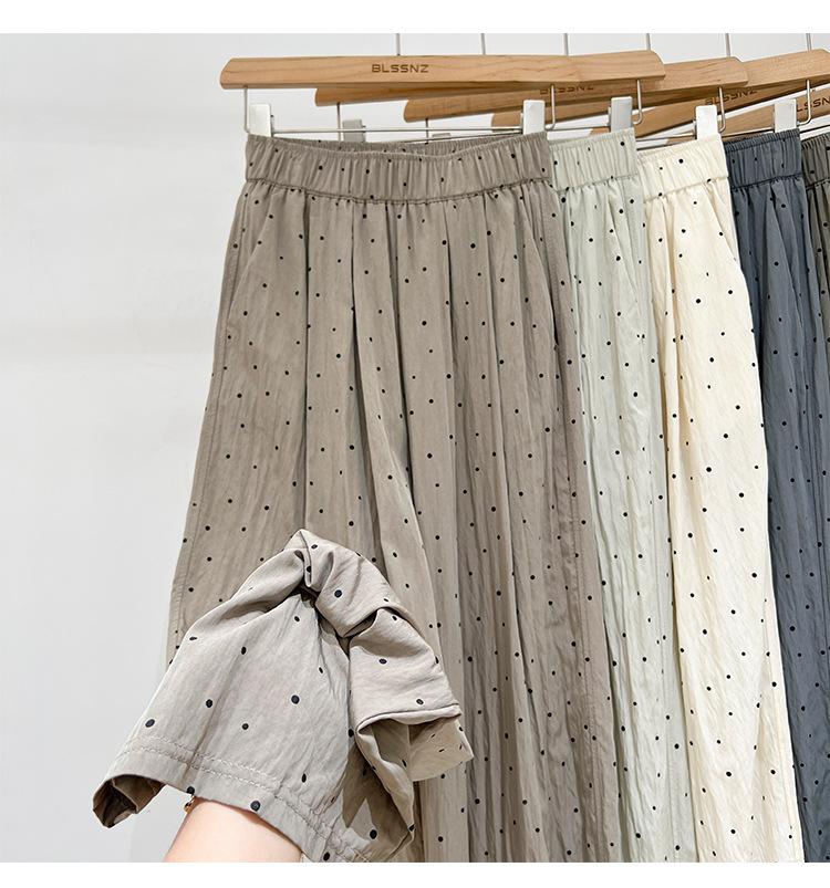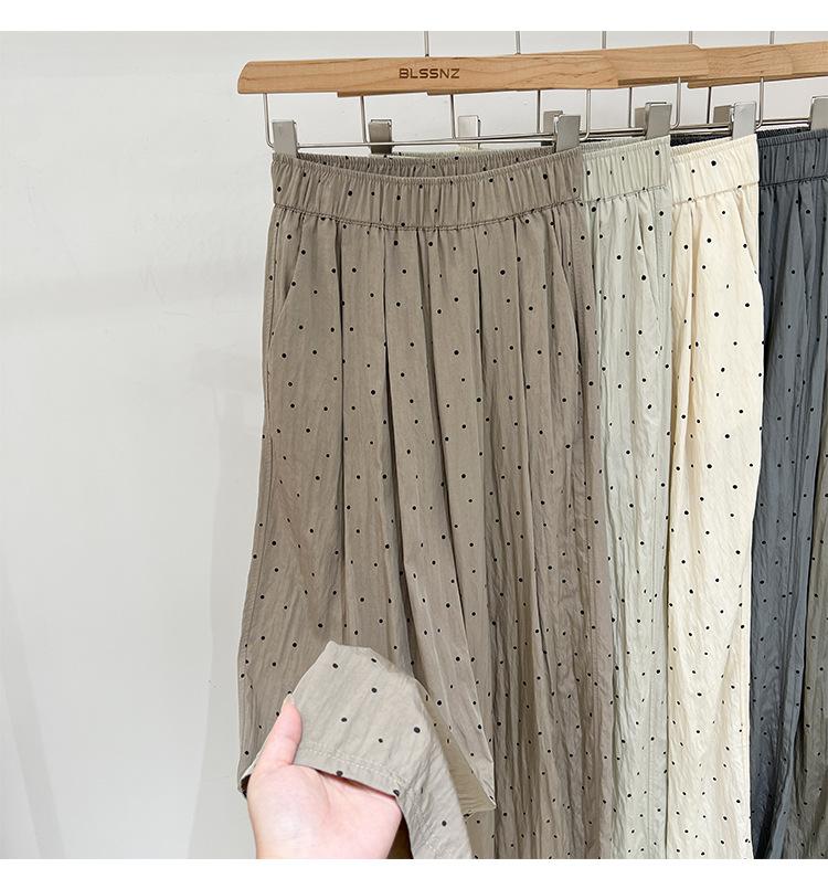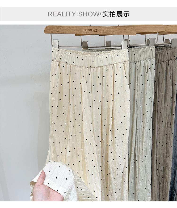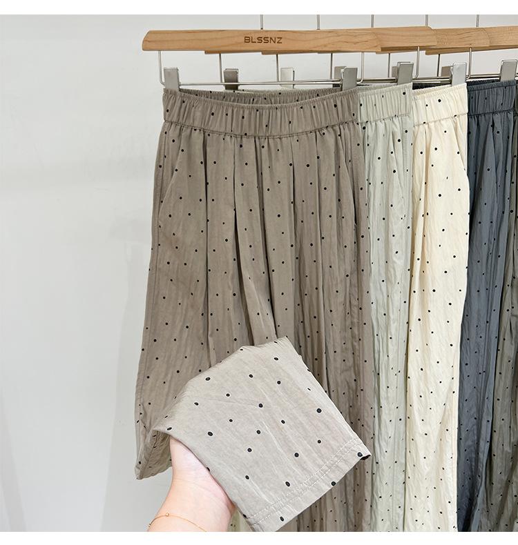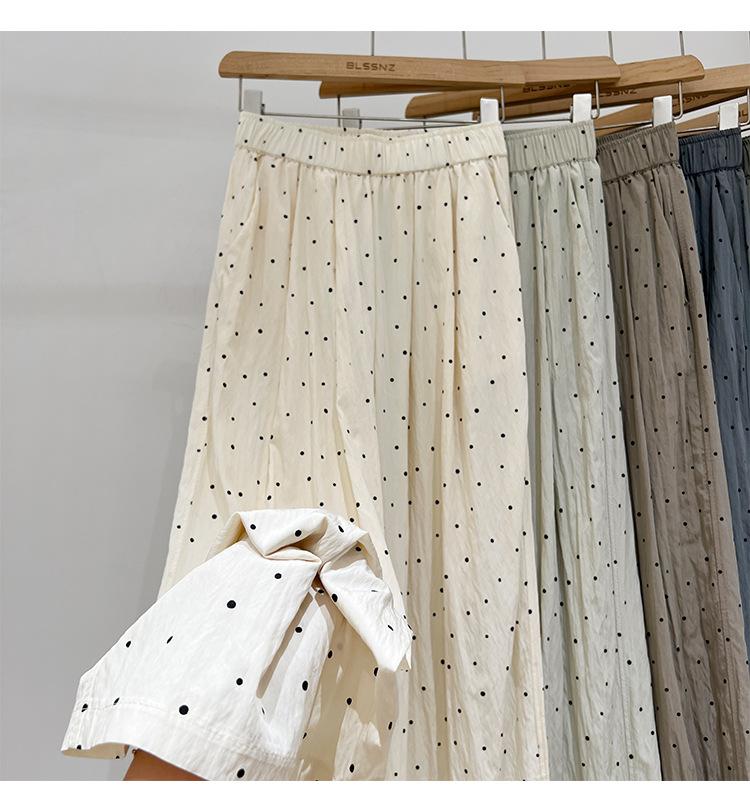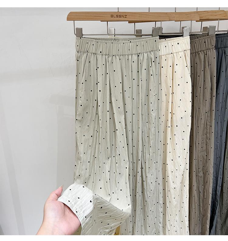 Pantalones casuales de lunares negros para mujer, nuevos pantalones de verano de cintura alta, sueltos, adelgazantes, con forma de pera y pierna ancha.
