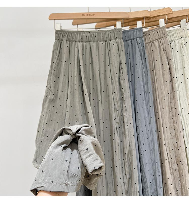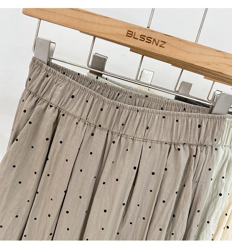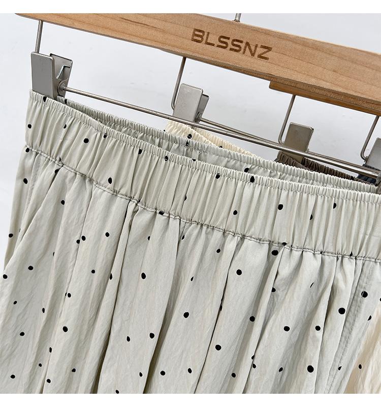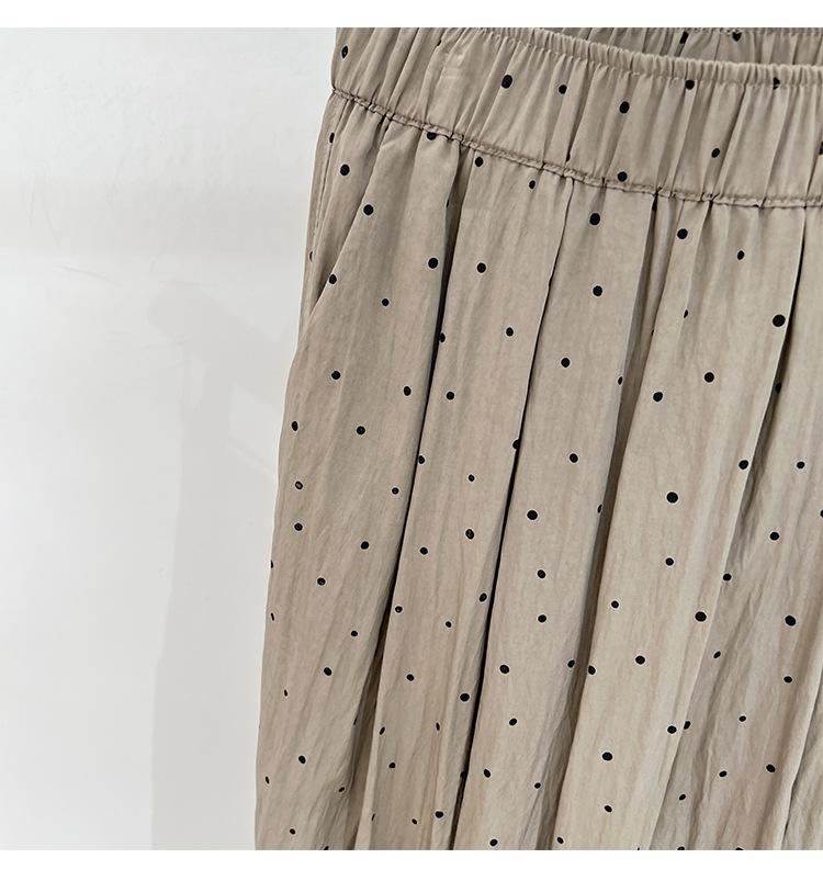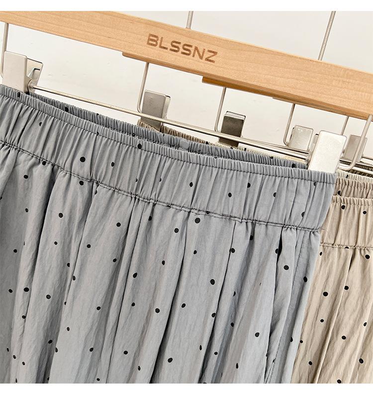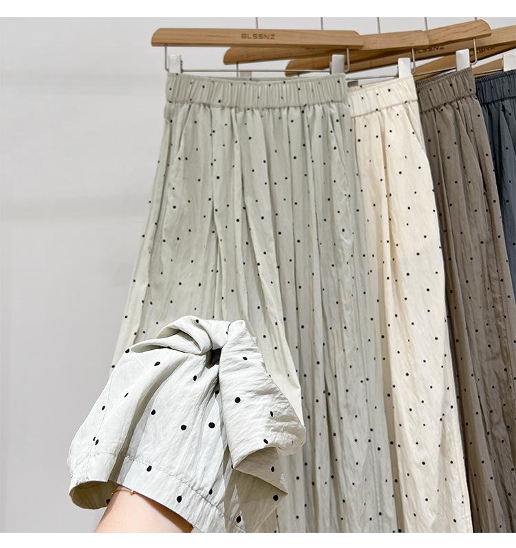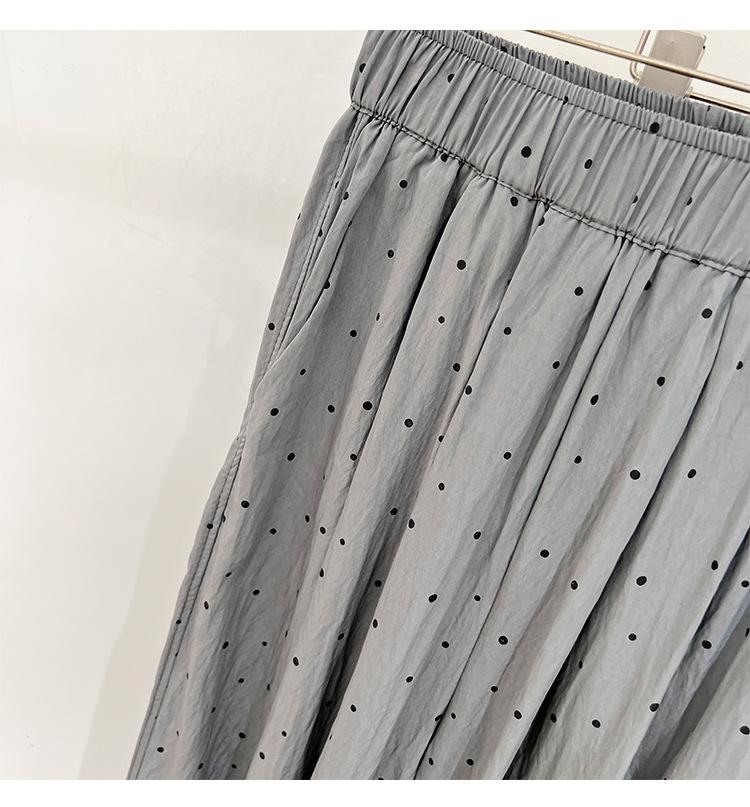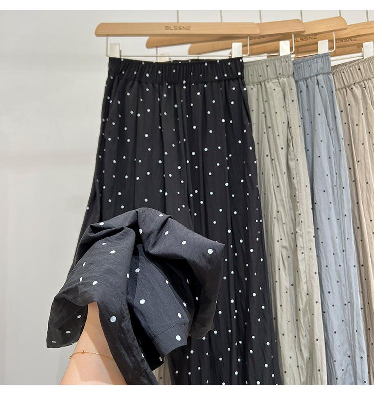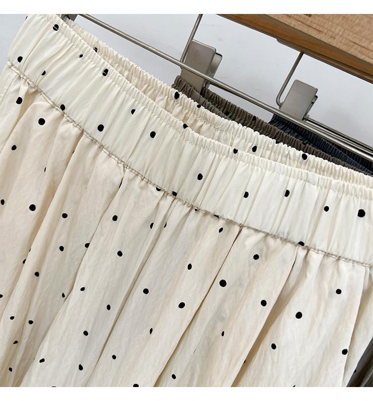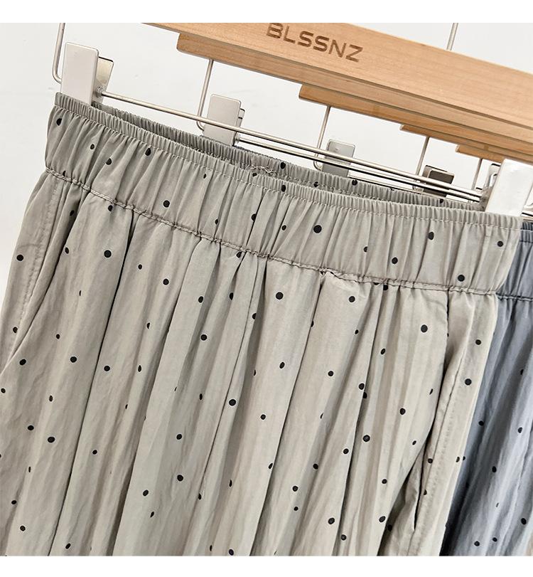 Pantalones casuales de lunares negros para mujer, nuevos pantalones de verano de cintura alta, sueltos, adelgazantes, con forma de pera y pierna ancha.