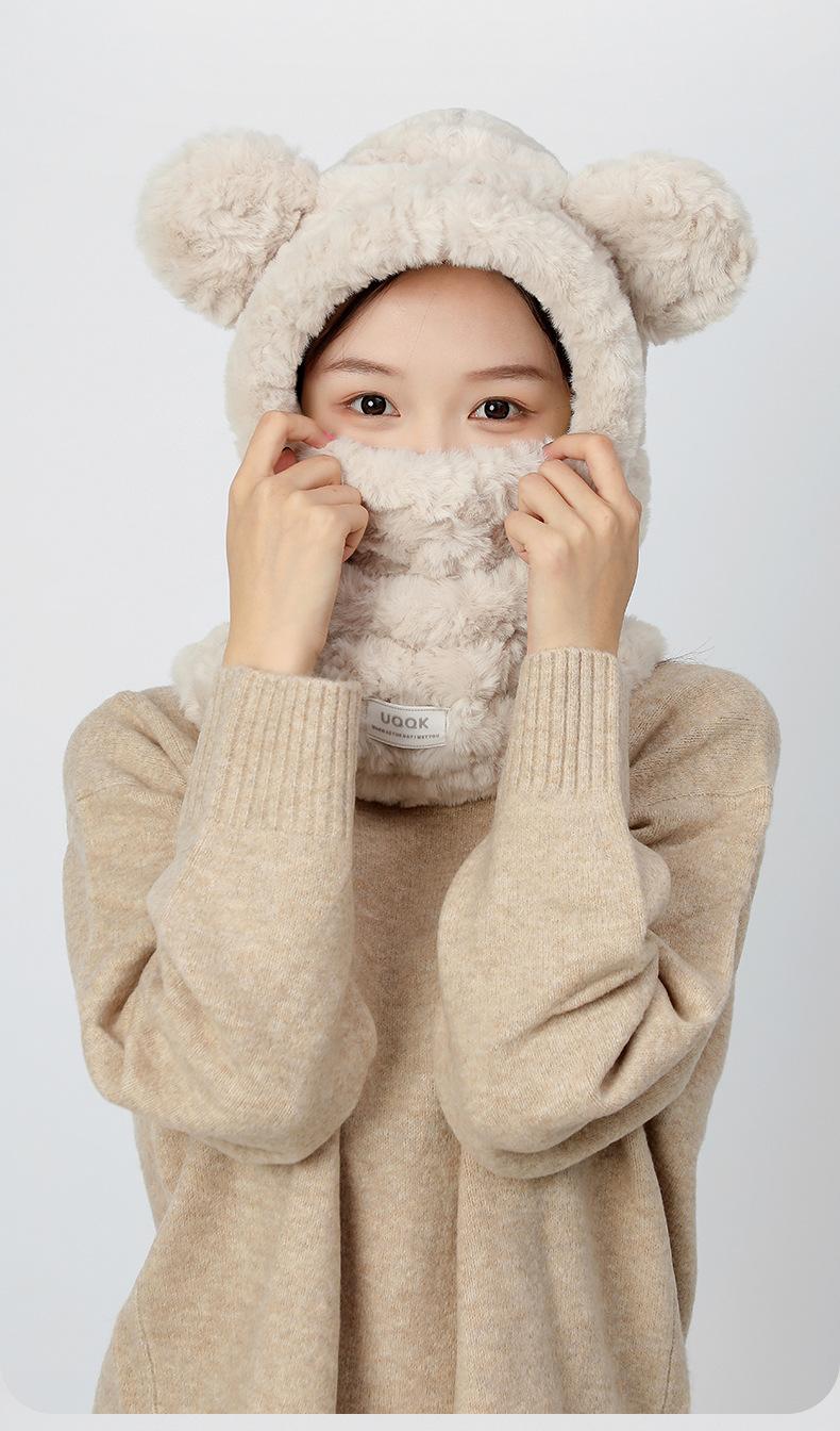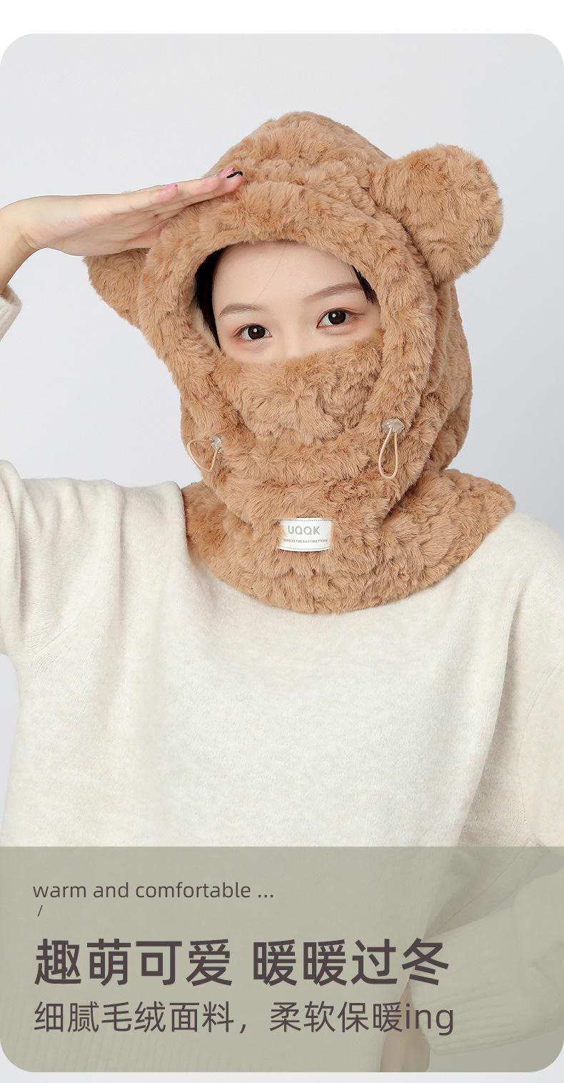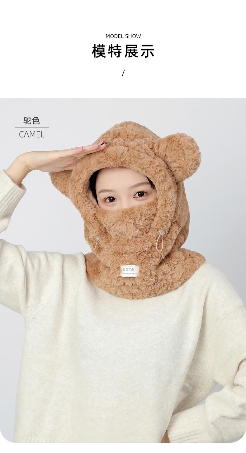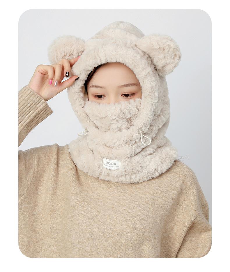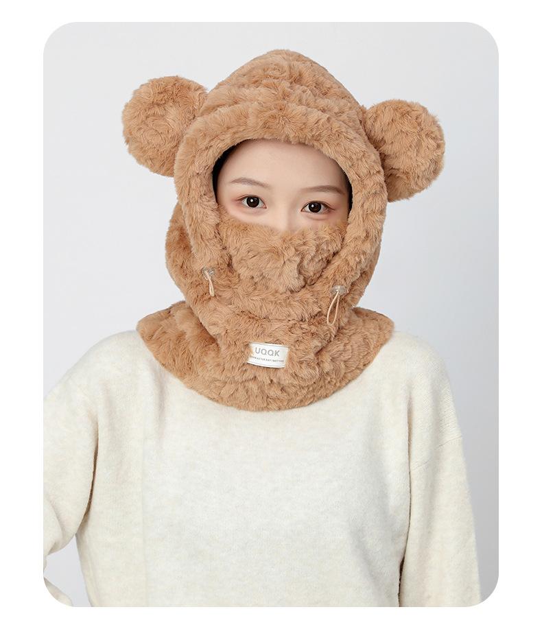 Bonita máscara de oso integrada, gorro de invierno para mujer, para ciclismo, cálido gorro con protección para los oídos, bufanda de felpa de invierno.