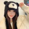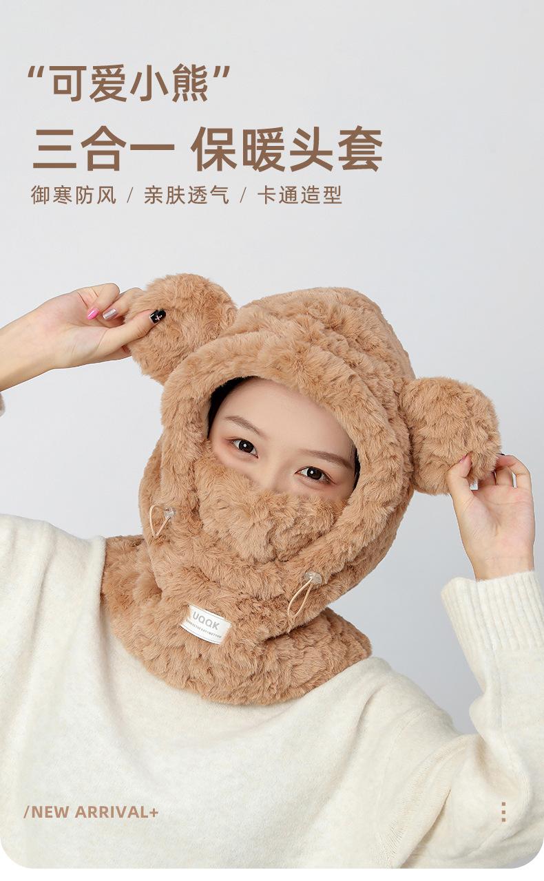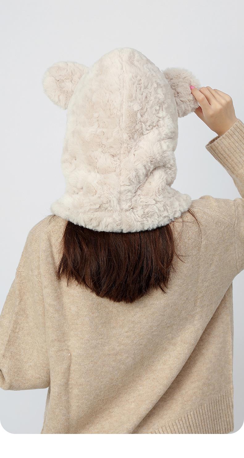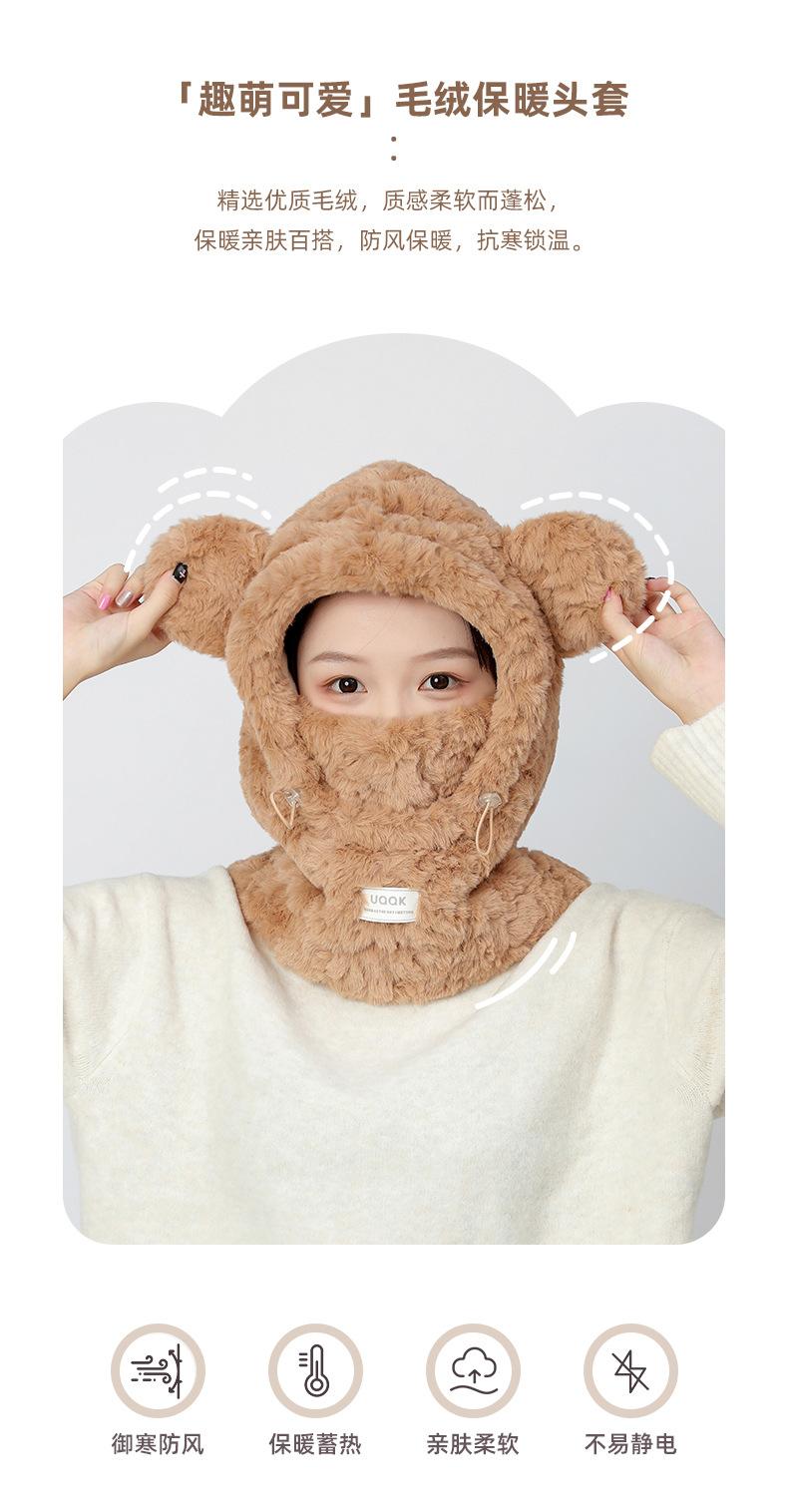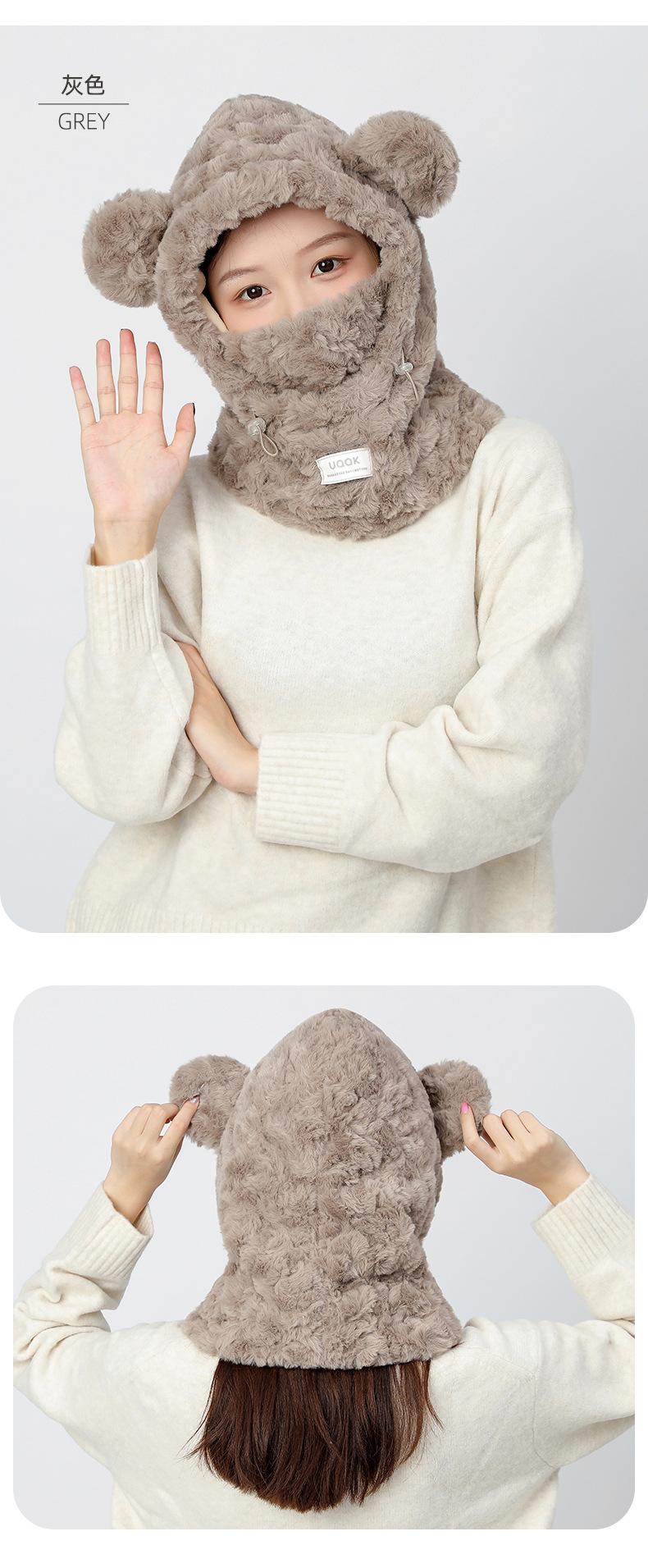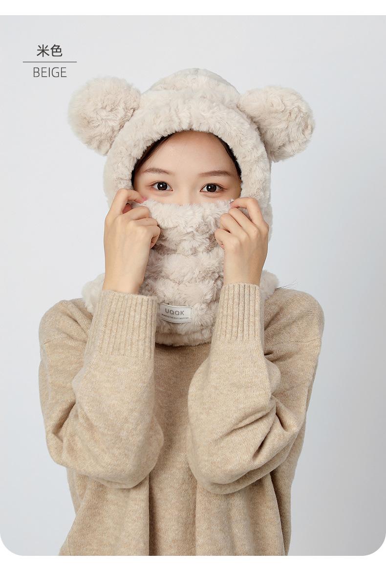Bonita máscara de oso integrada, gorro de invierno para mujer, para ciclismo, cálido gorro con protección para los oídos, bufanda de felpa de invierno.