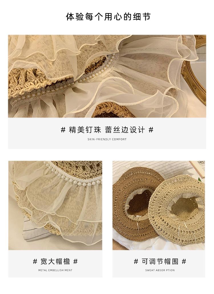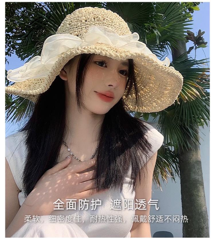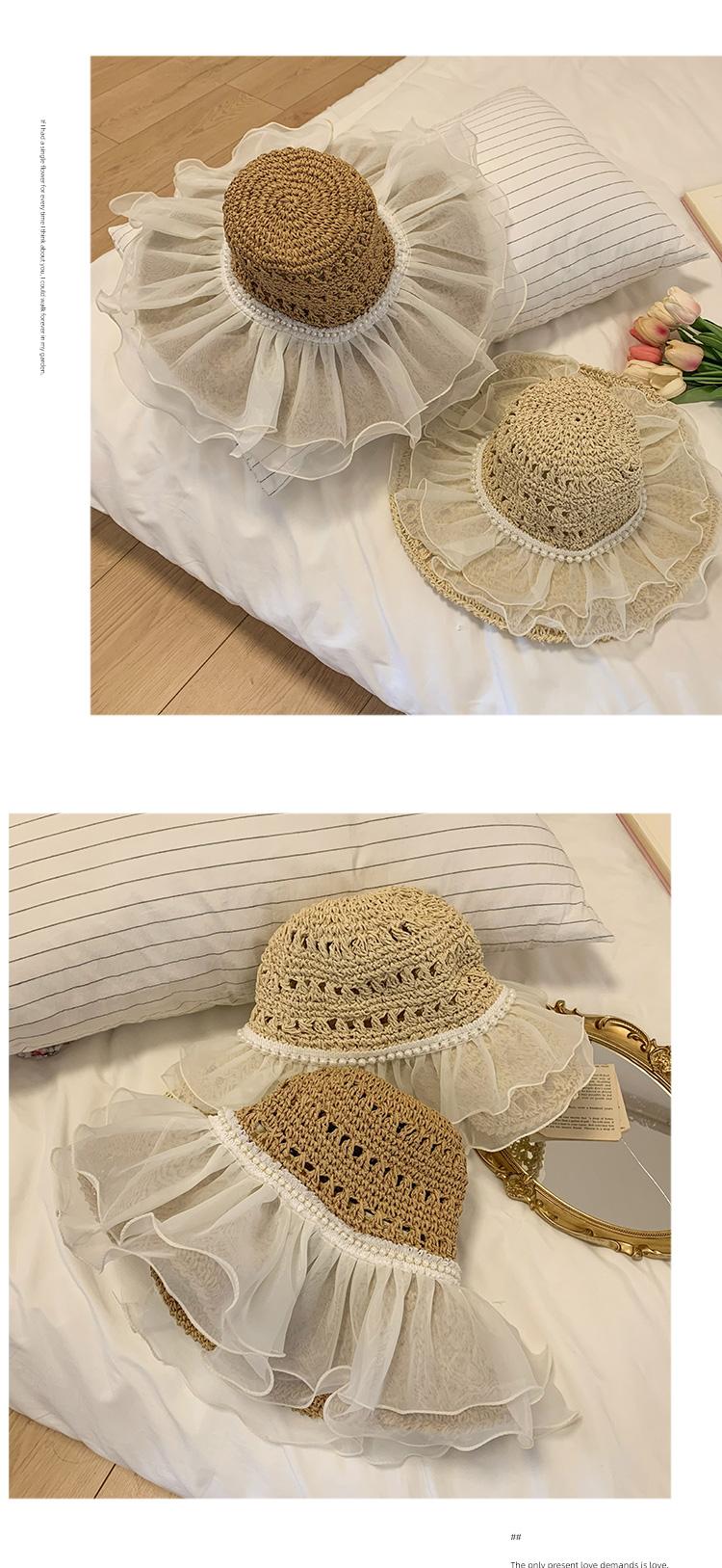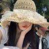 Sombrero de paja de encaje para el sol para mujer, verano, transpirable, ala grande, sombrero de paja para vacaciones en la playa, cubierta, sombrero de protección solar para toda la cara