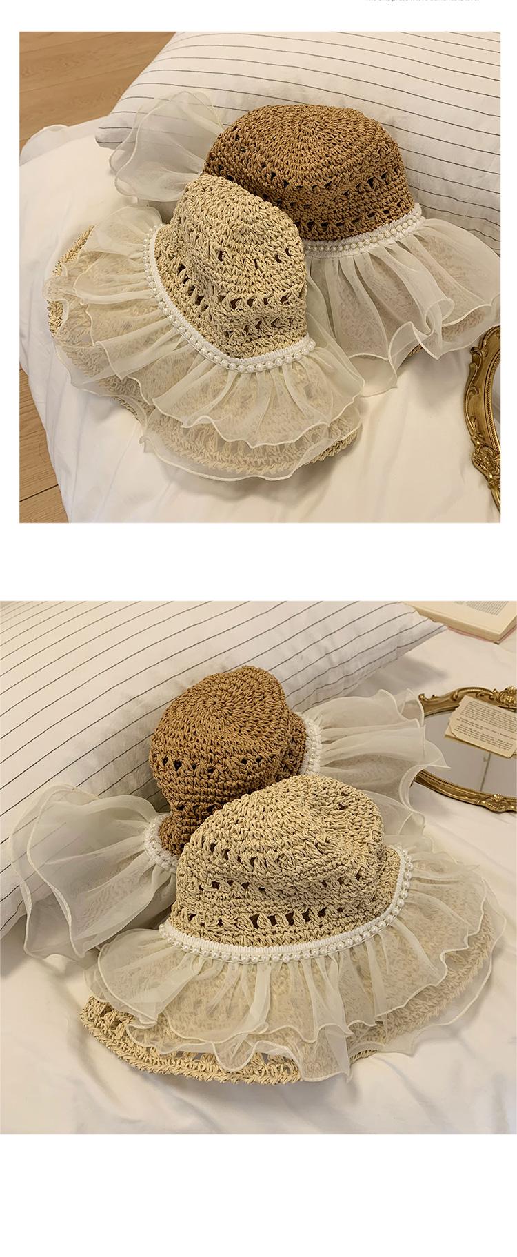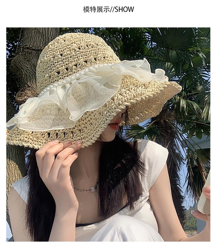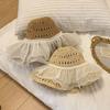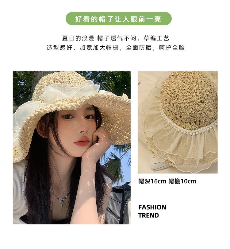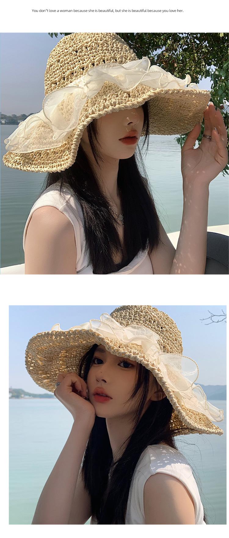Sombrero de paja de encaje para el sol para mujer, verano, transpirable, ala grande, sombrero de paja para vacaciones en la playa, cubierta, sombrero de protección solar para toda la cara