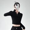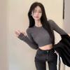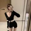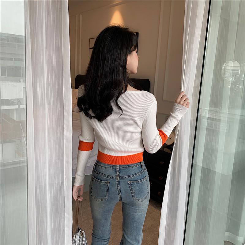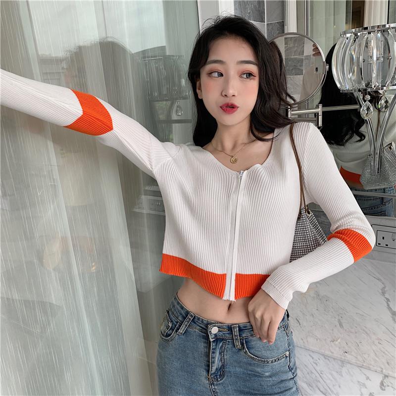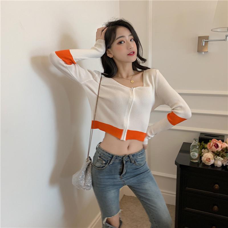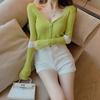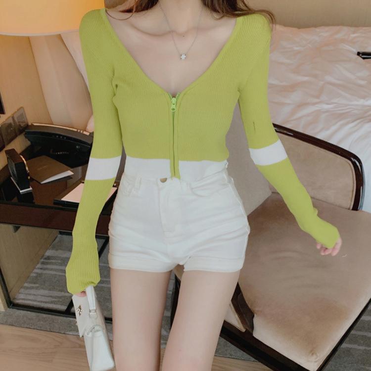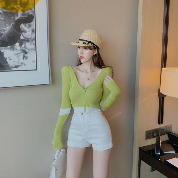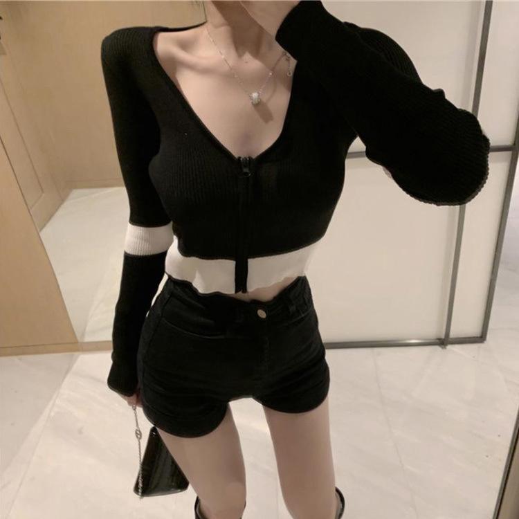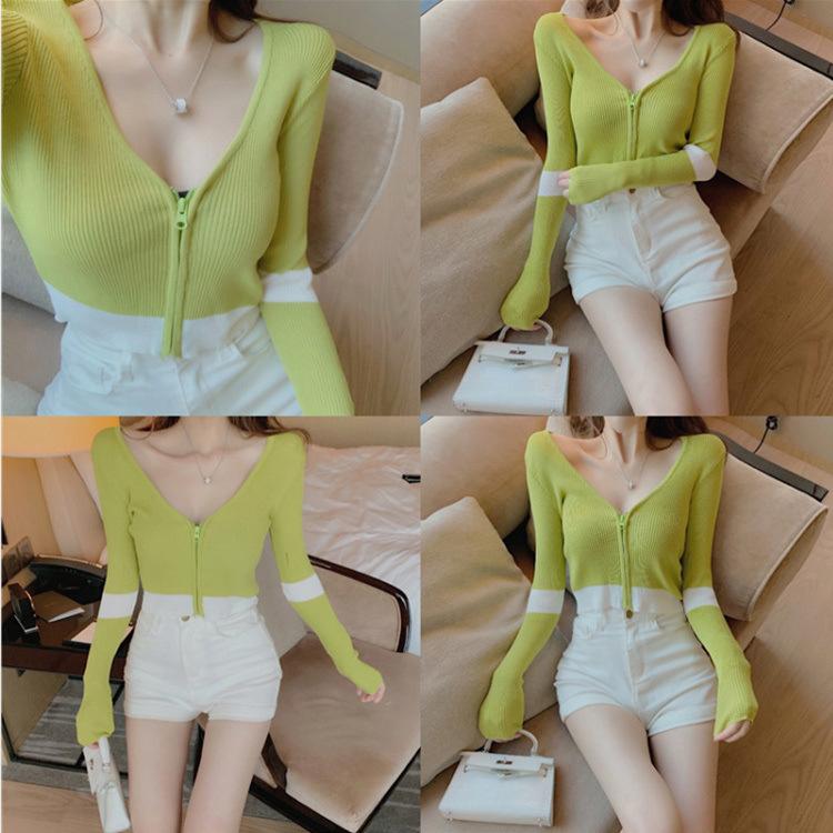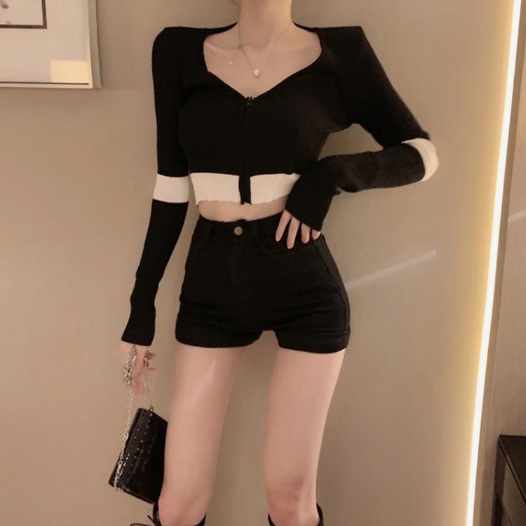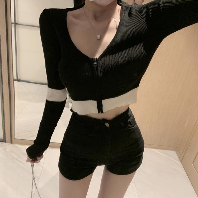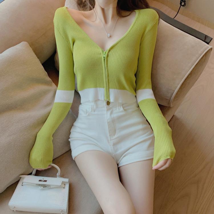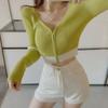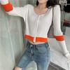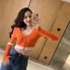 Cárdigan de punto adelgazante sexy de corte bajo con cuello para mujer, primavera y otoño 2023, color a juego, corto, ajustado, de manga larga, a la moda