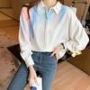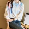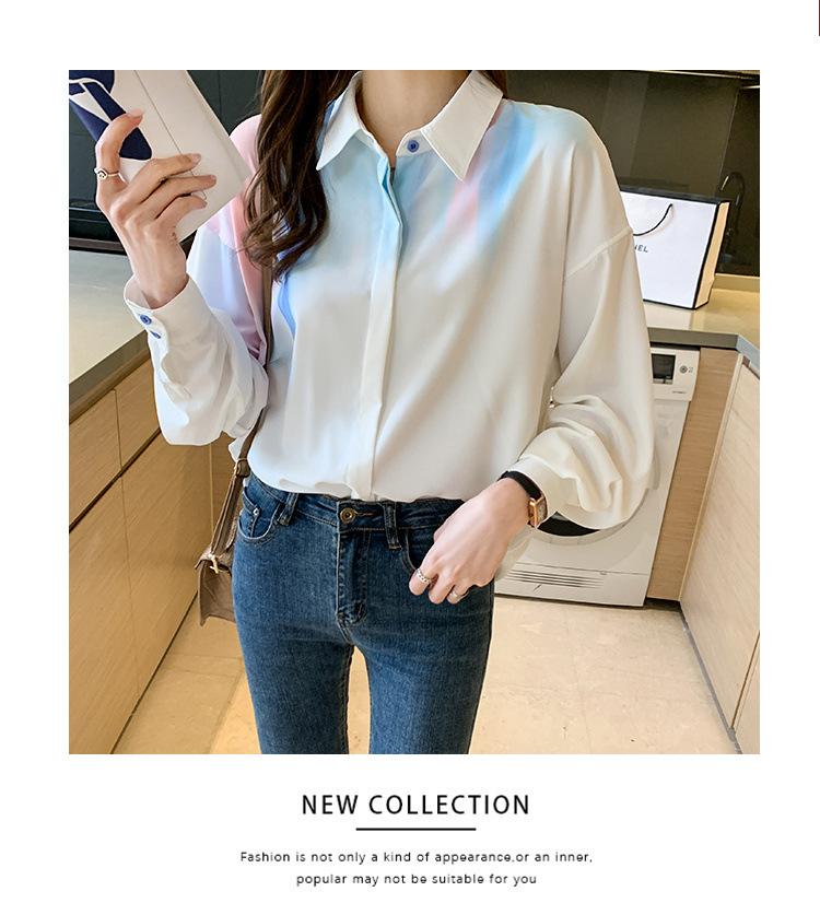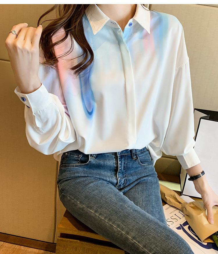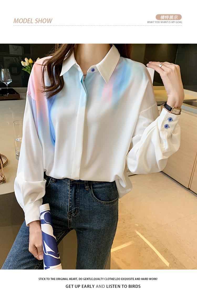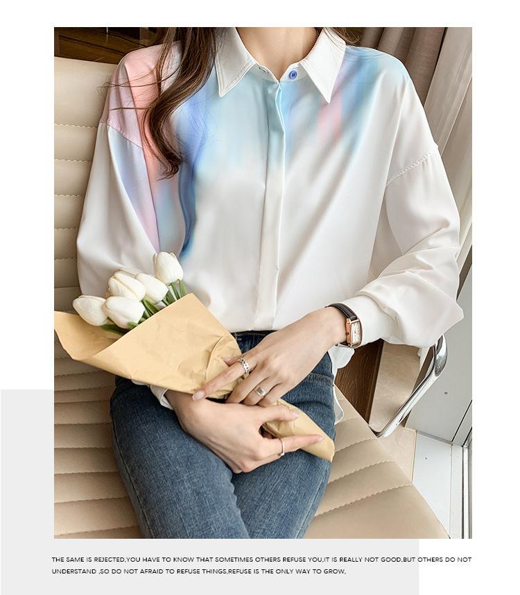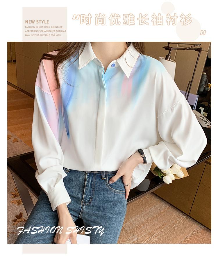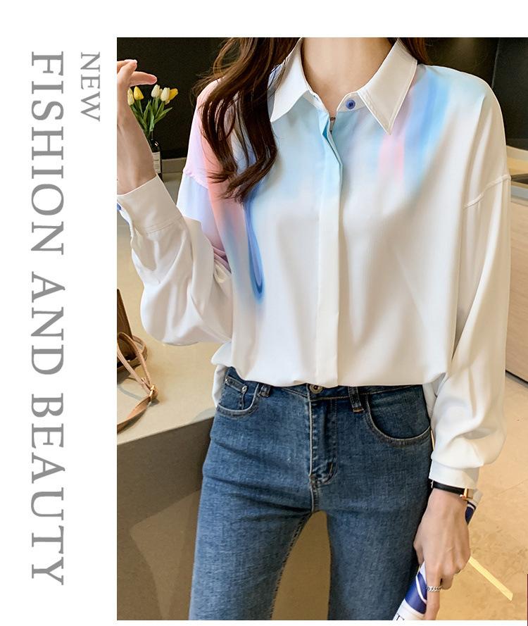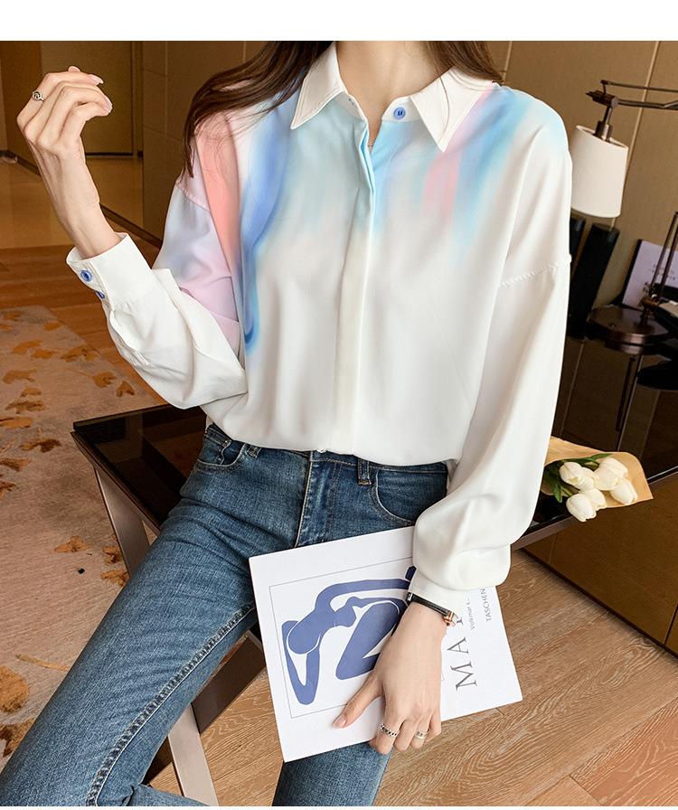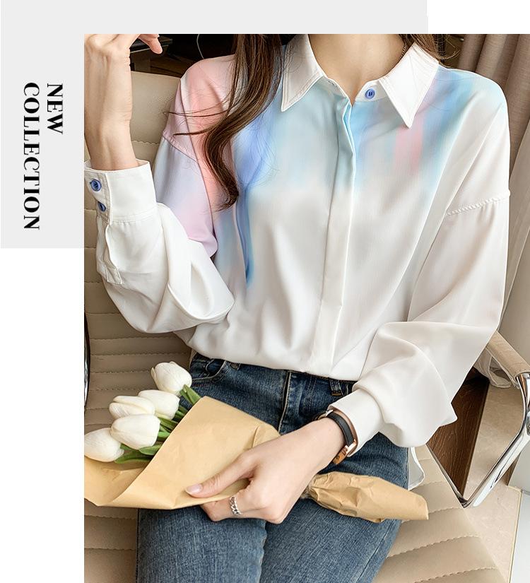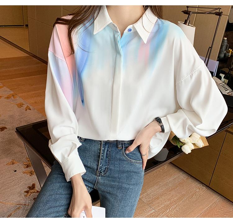 Camisa elegante de primavera y otoño 2024 para mujer, camisa informal de manga larga con estampado de tinta que combina con todo, diseño de nicho para mujer