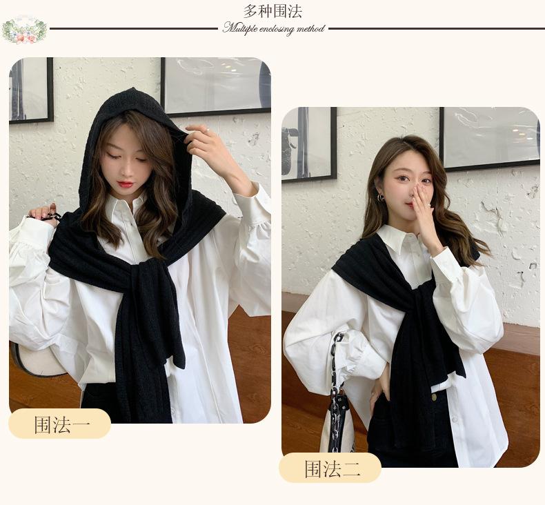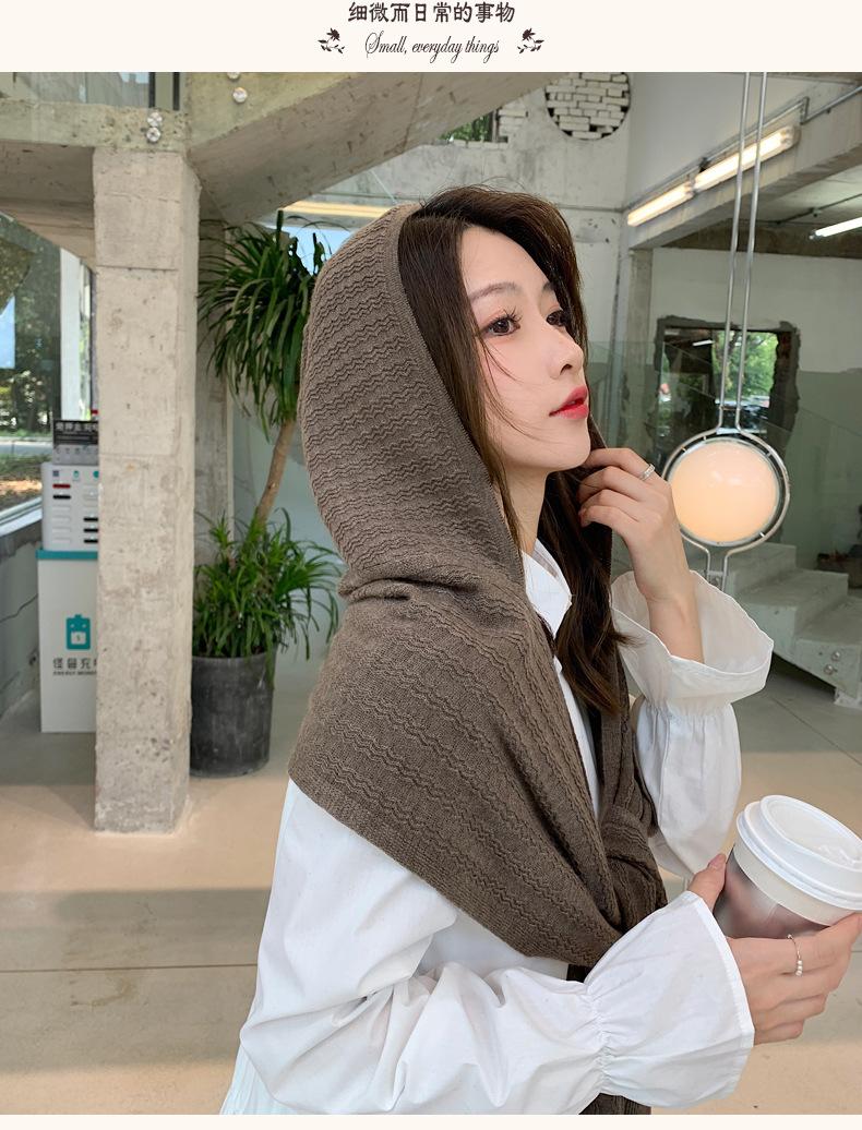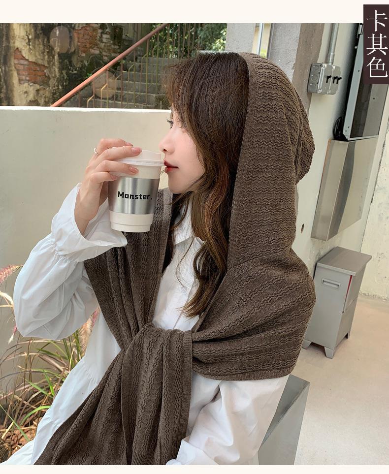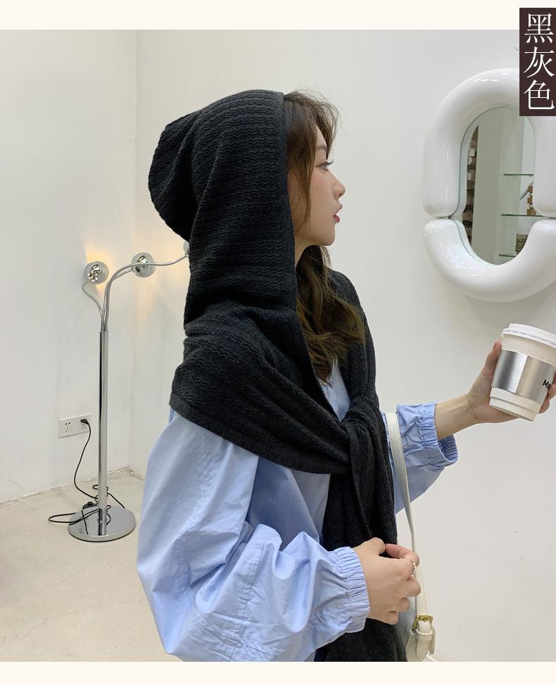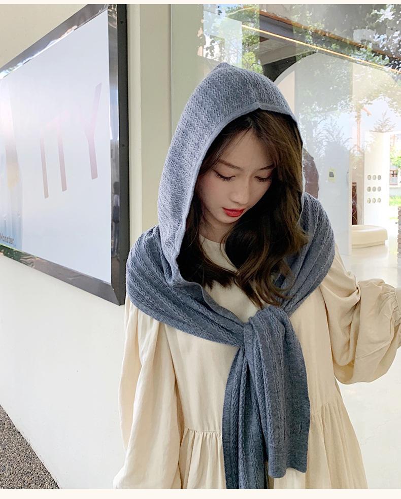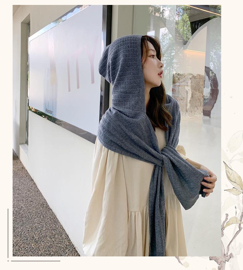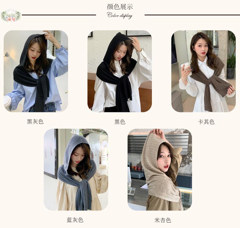 Corea del Sur nueva lana color sólido exterior con capucha tejido pequeño chal bufanda sombrero dos en uno viaje chal para aire acondicionado