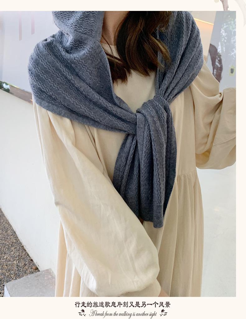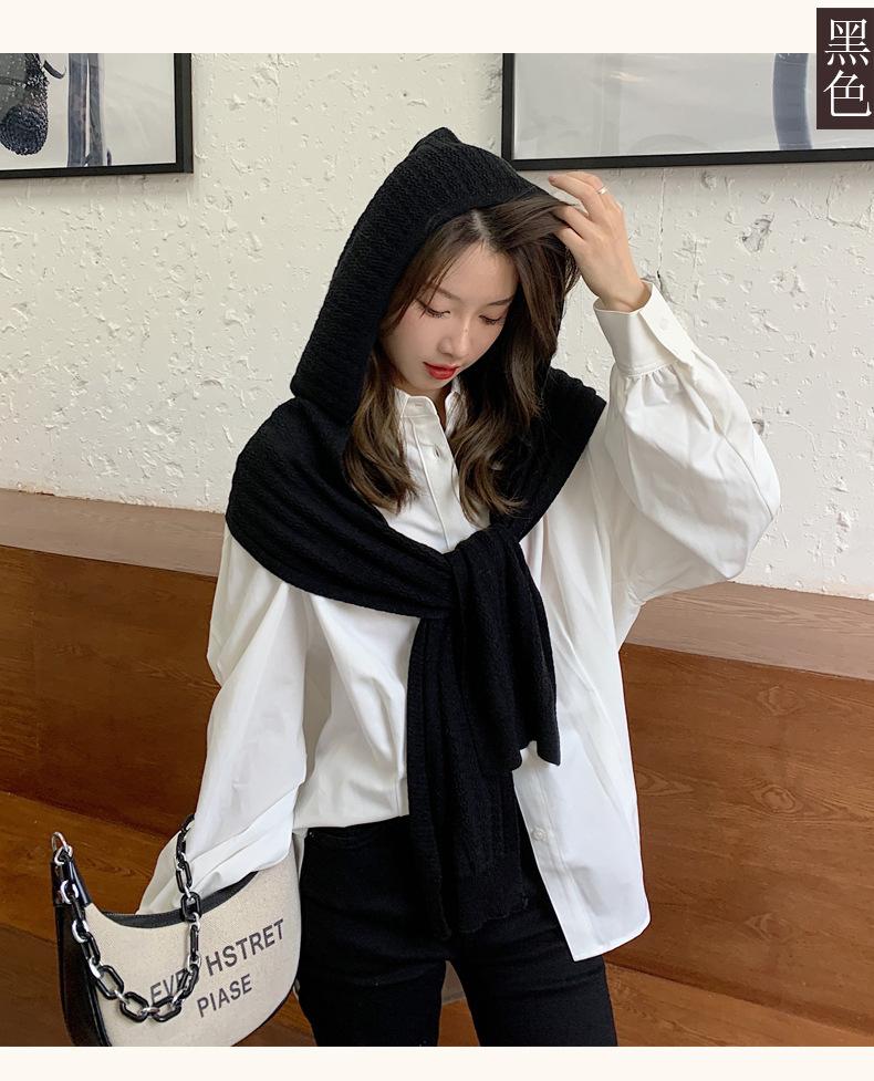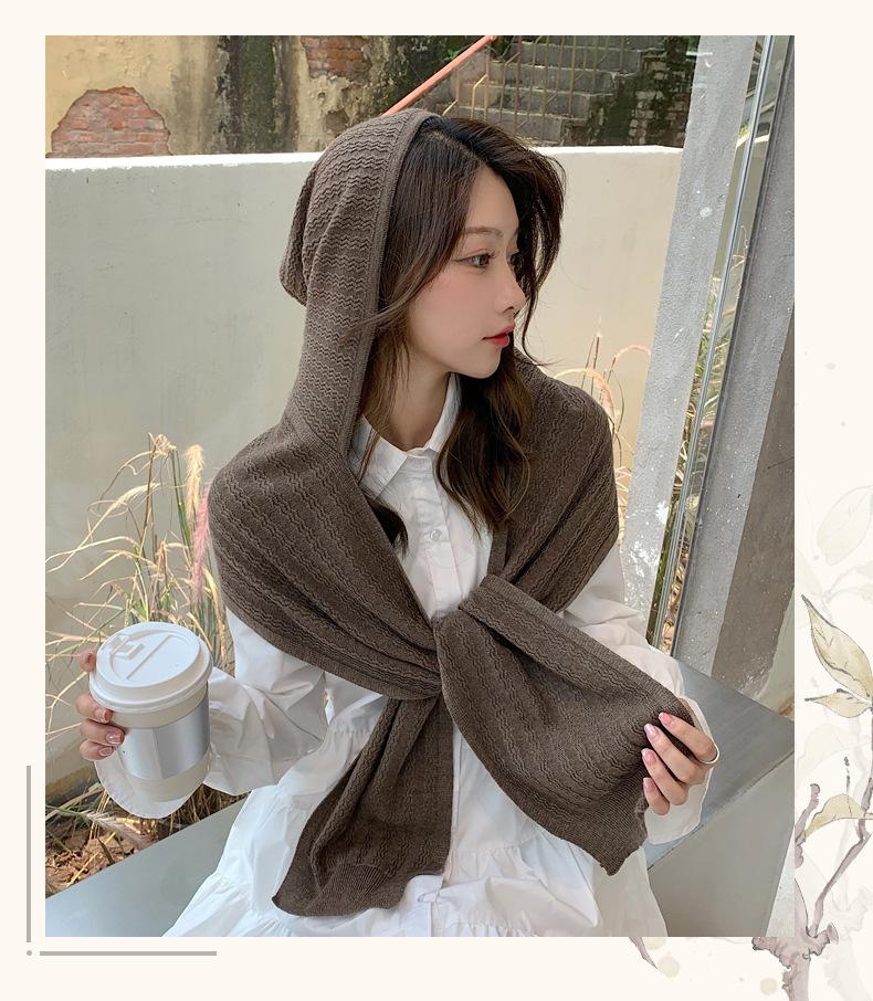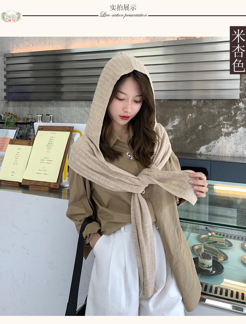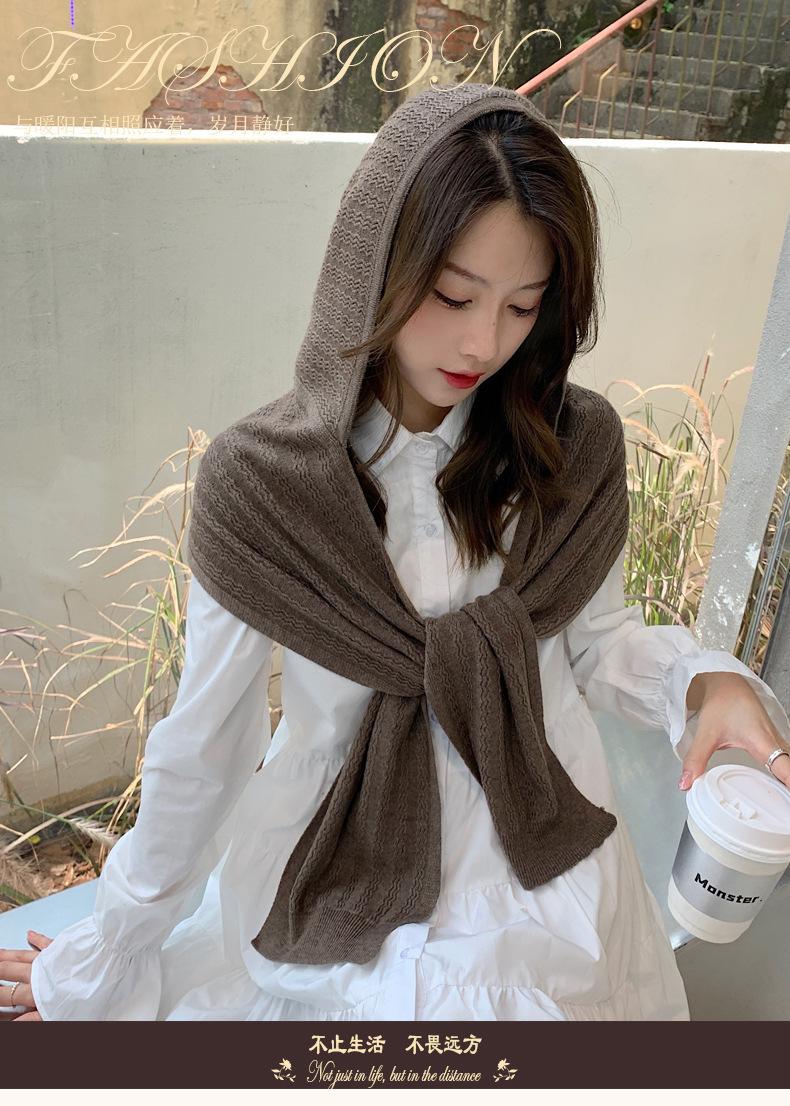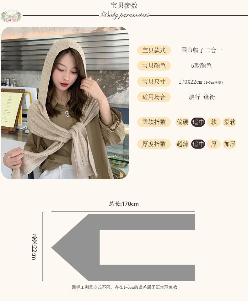 Corea del Sur nueva lana color sólido exterior con capucha tejido pequeño chal bufanda sombrero dos en uno viaje chal para aire acondicionado