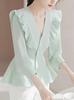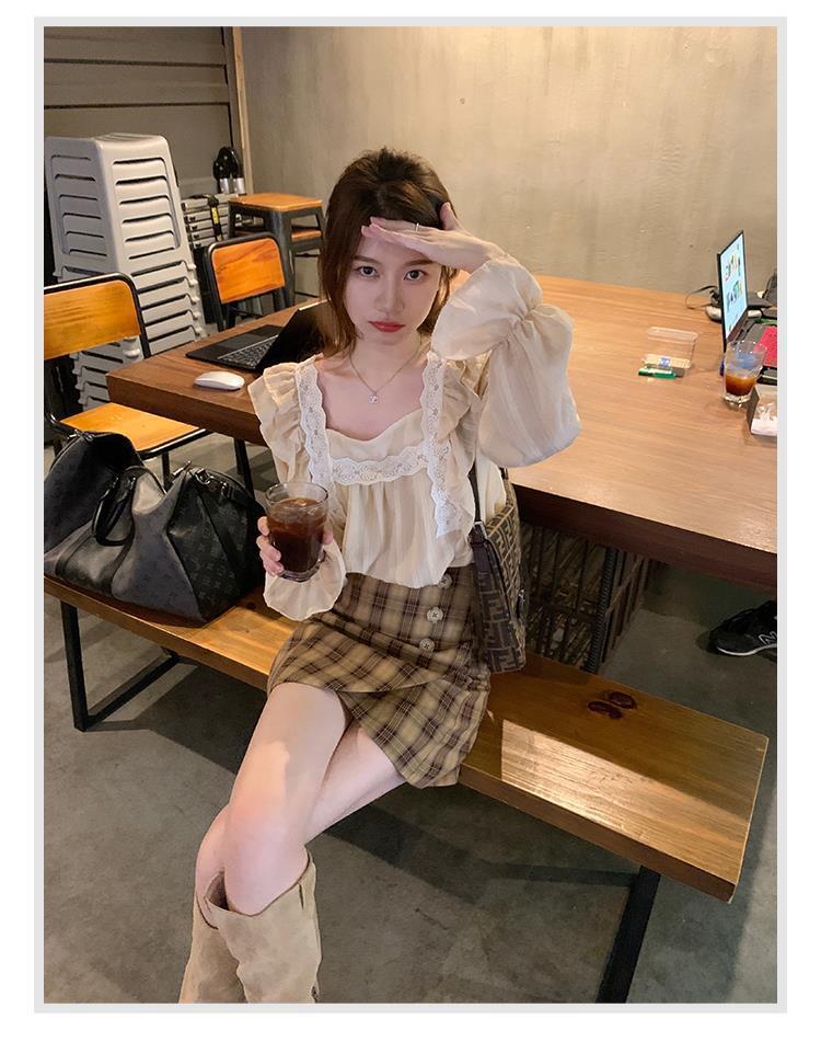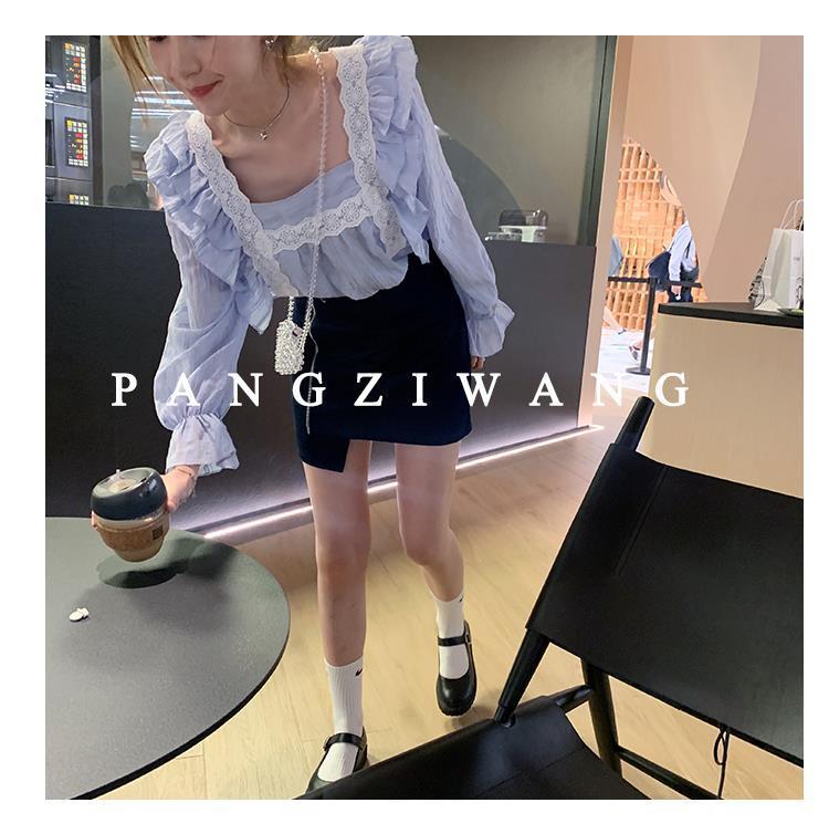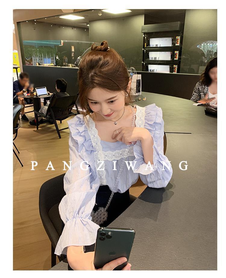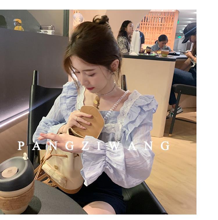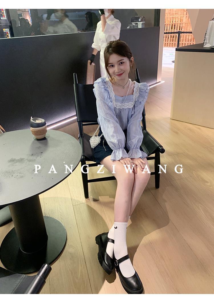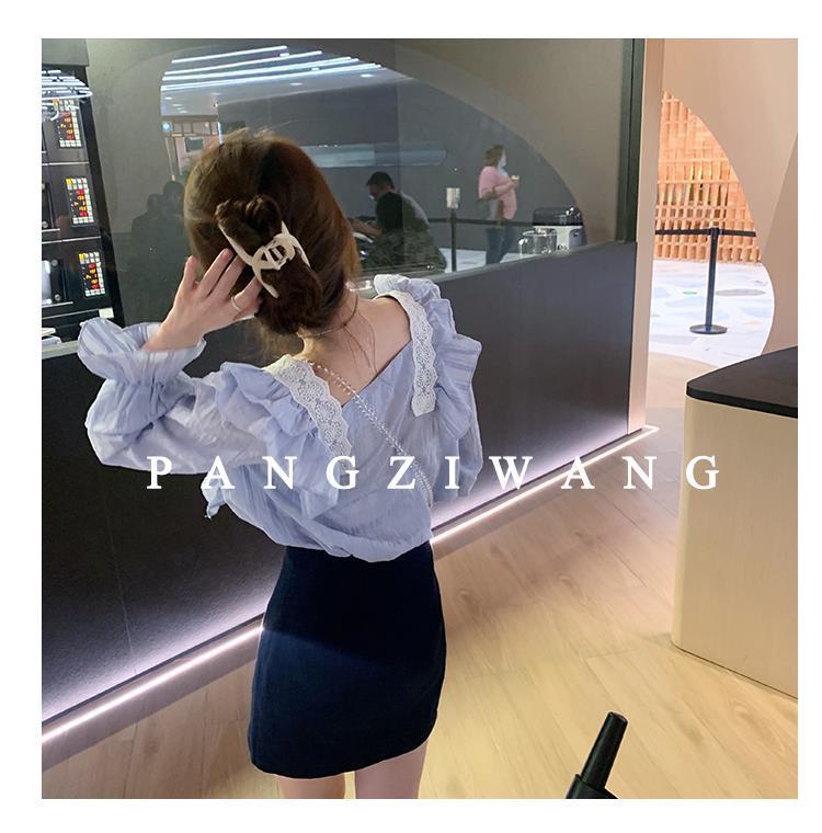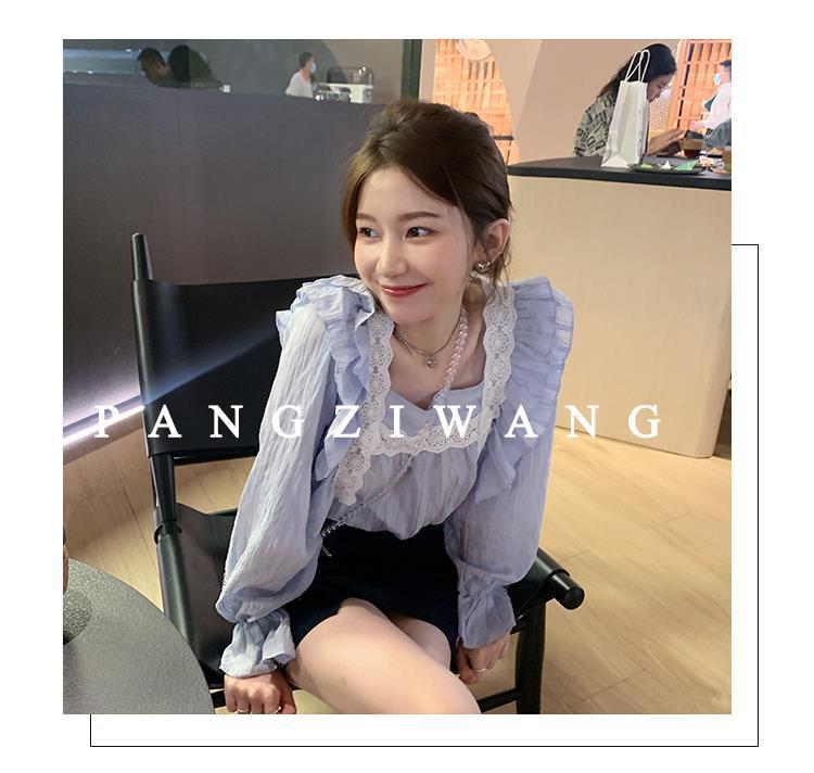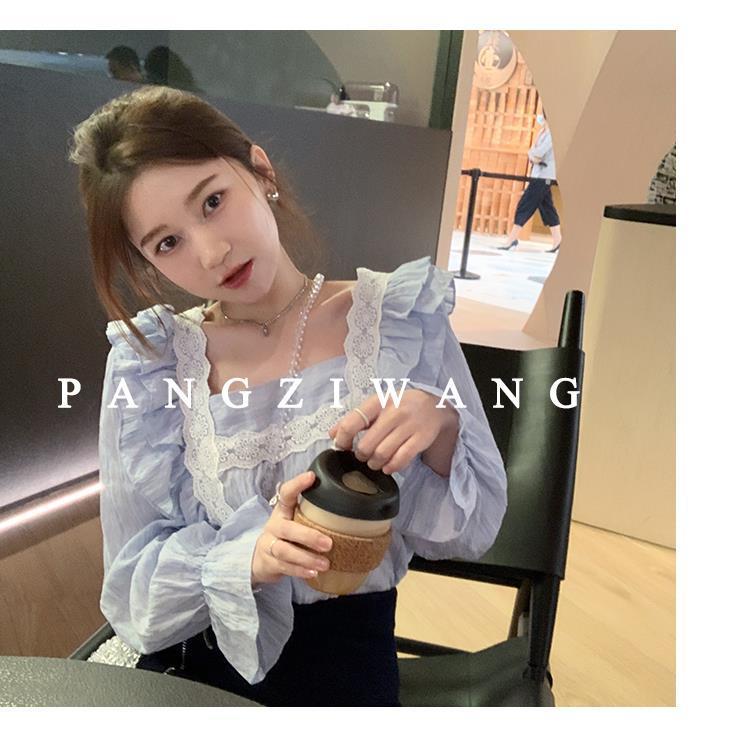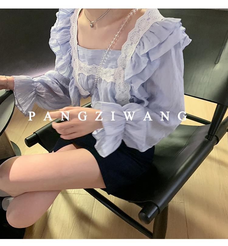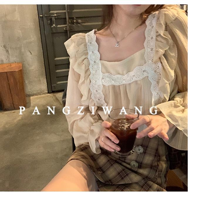 Camisa francesa de manga larga con volantes para mujer, primavera y otoño, nueva blusa holgada con cuello de encaje fino y efecto antiedad para mujer.