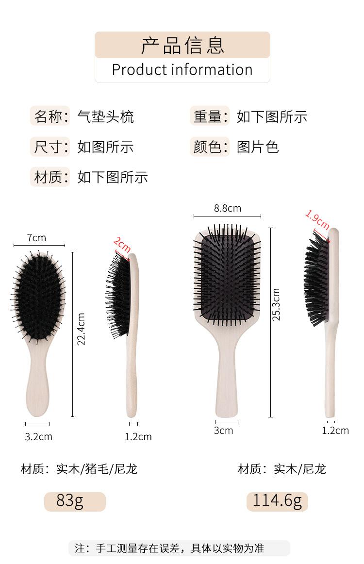 Fabricante de productos de cuidado personal personalizados Peine de masaje con cojín de aire Peine de peluquería de madera Peine de cabeza con cojín de aire Peine de masaje