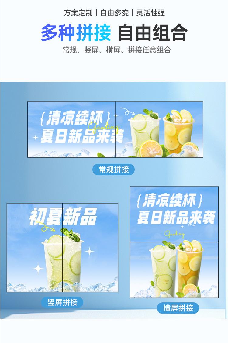 Huvista LED vertical de pantalla completa sin bordes, montado en la pared, empalme de múltiples pantallas, sala de exposiciones, máquina de publicidad móvil personalizada