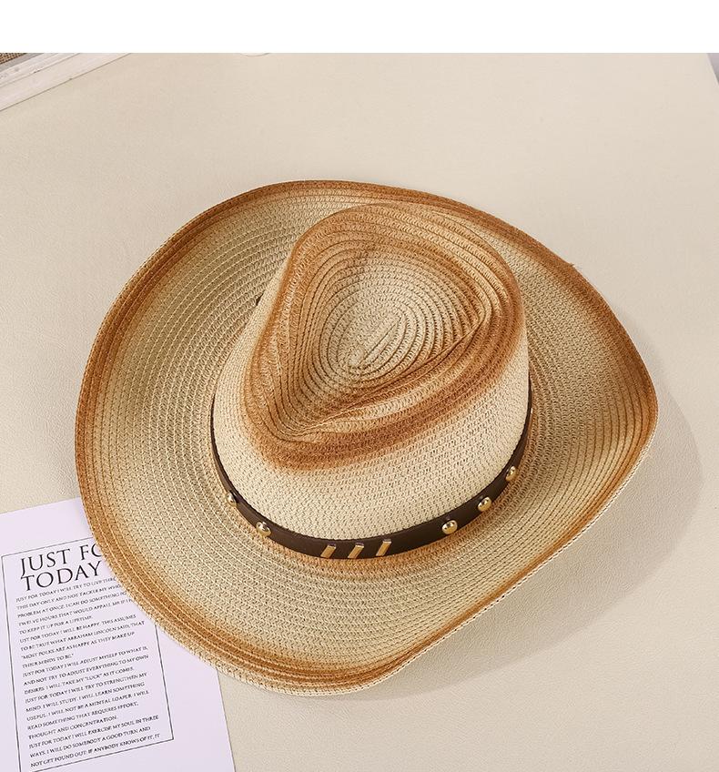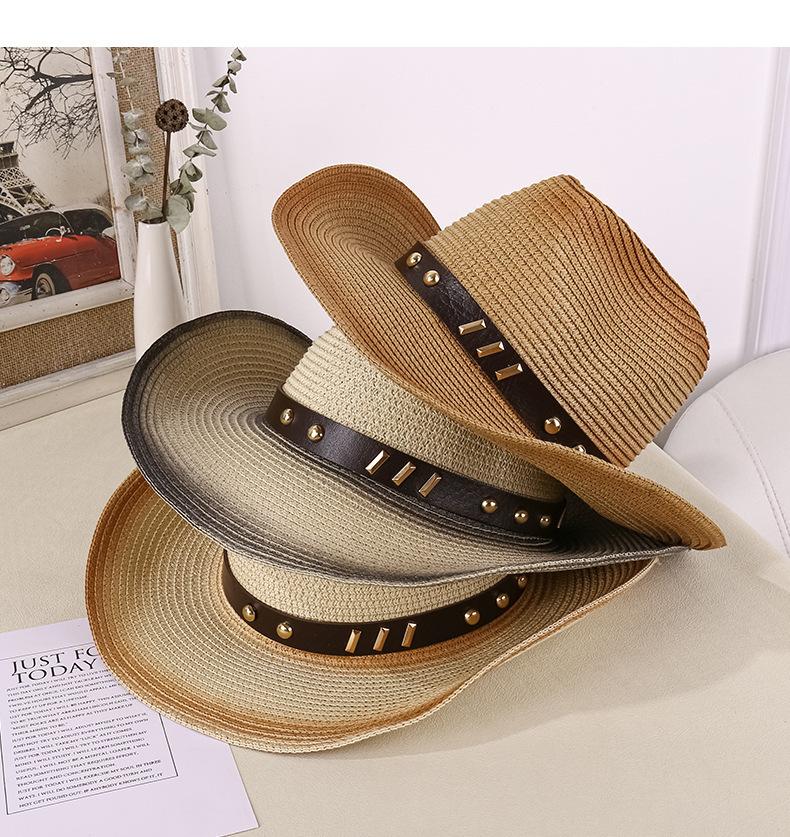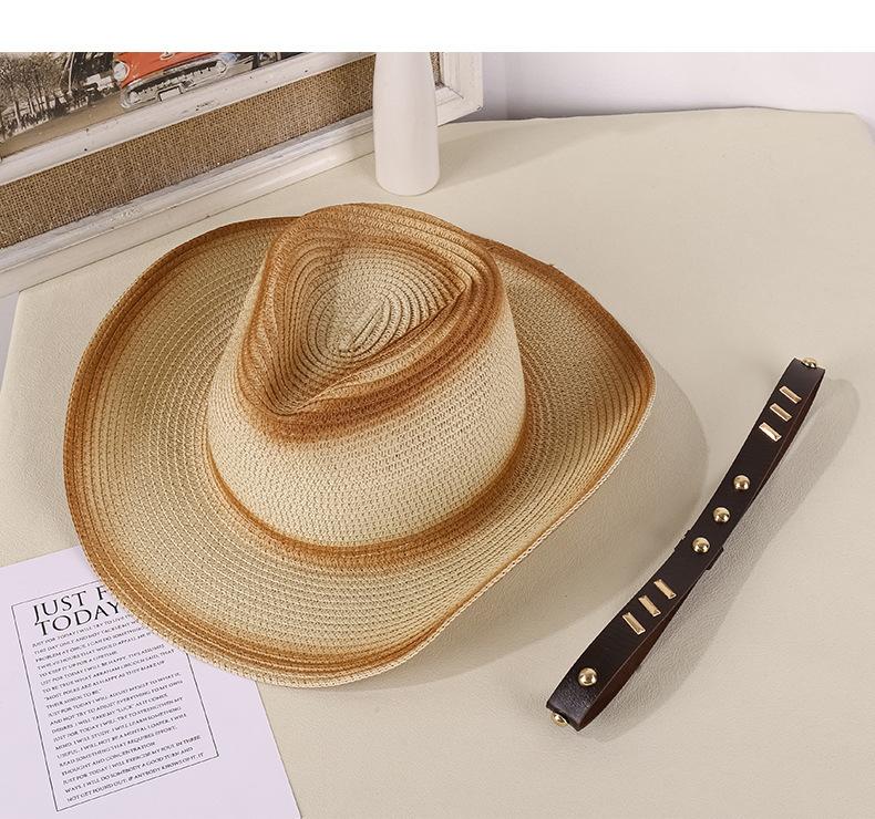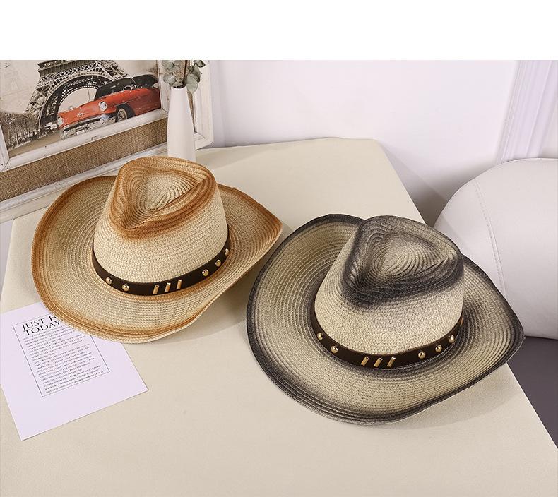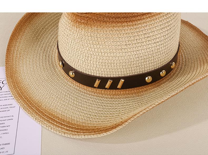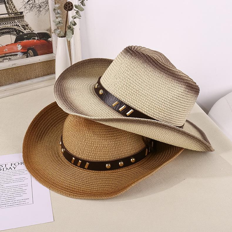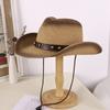 Sombrero de vaquero occidental con hebilla de cinturón y remaches, estilo jazz, para festivales, con ala grande, venta al por mayor