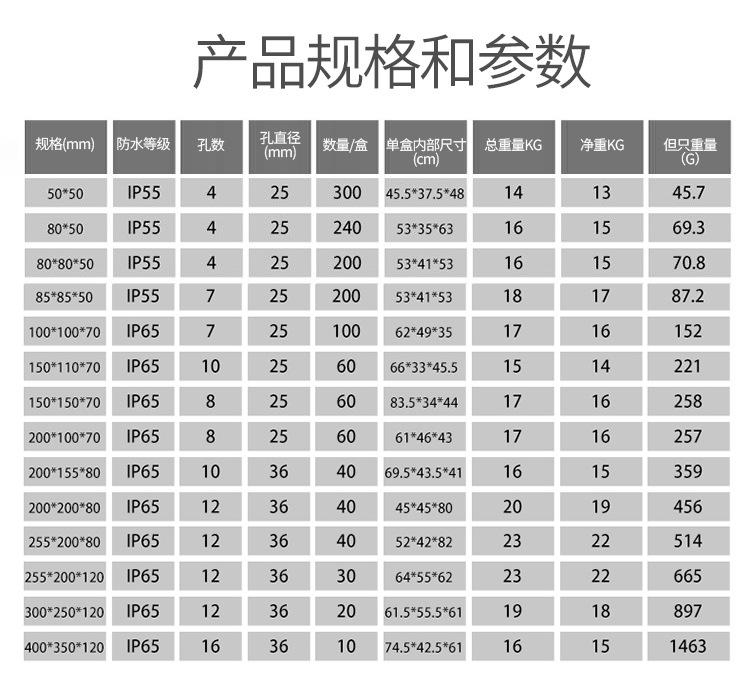 50*50 with plug, 80*50 with plug, 80*80*50 with plug, 85*85*50 with plug, 100*100*70 with plug, 150*110*70 wit...