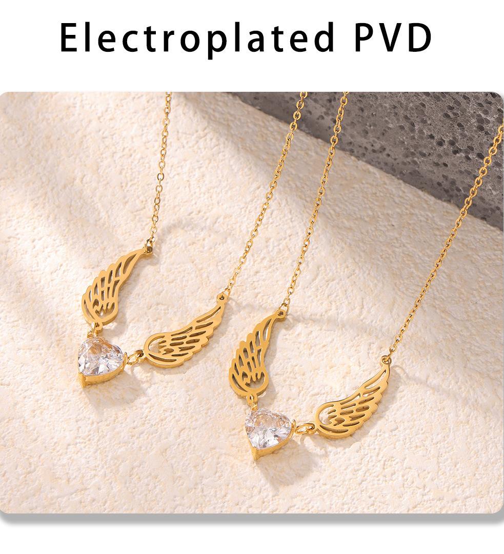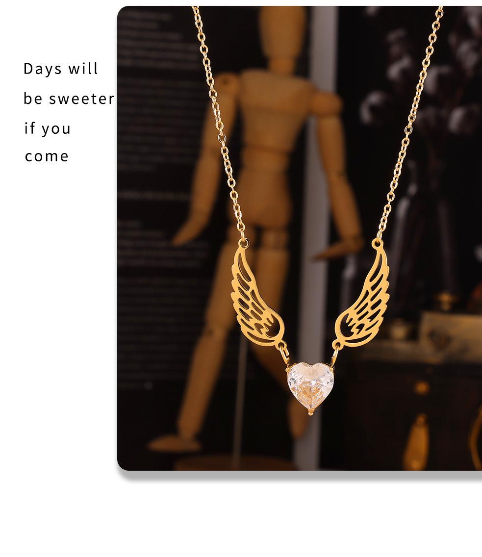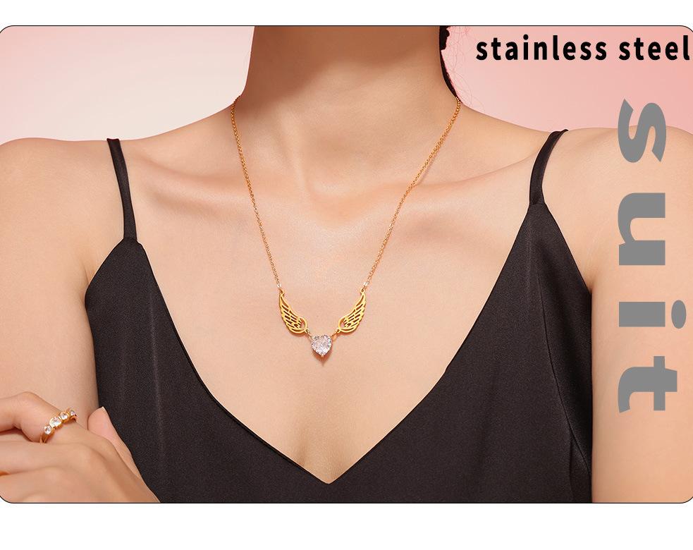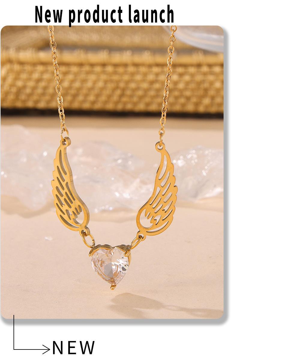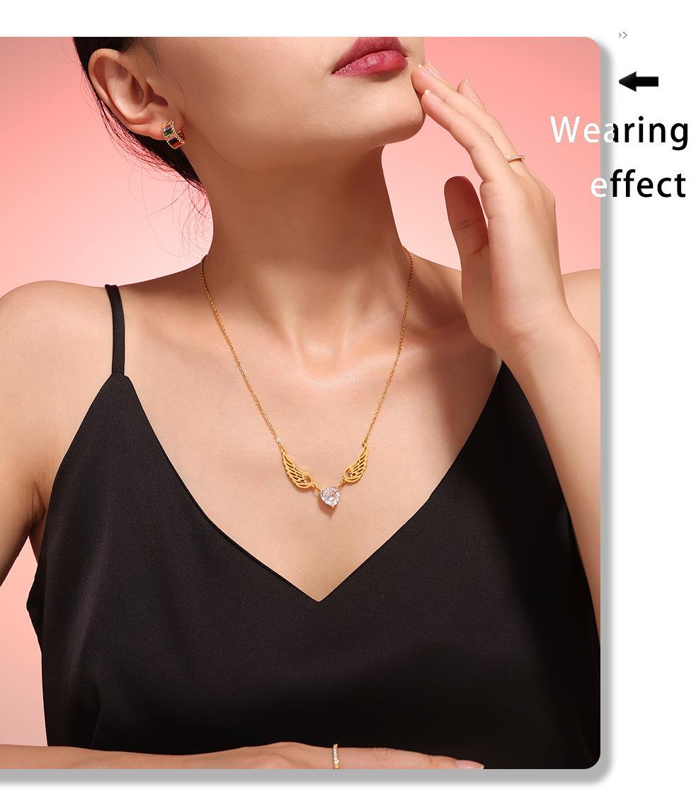 Collar de alas de ángel con circonitas de amor transfronterizo, combinable con todo, regalo de diosa, cadena de clavícula de acero de titanio, joyería para mujer