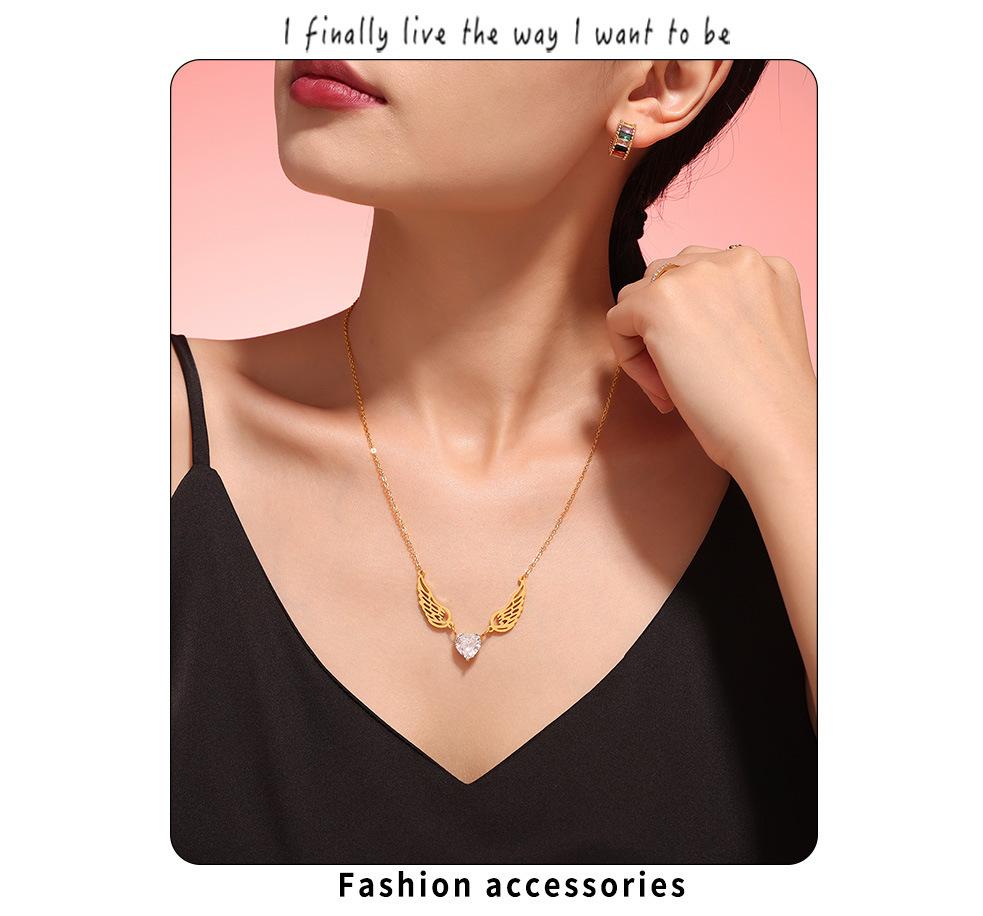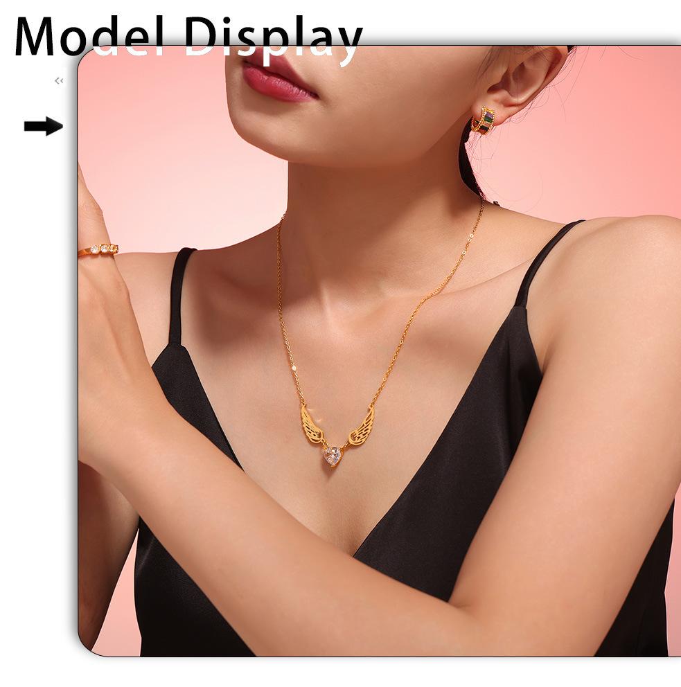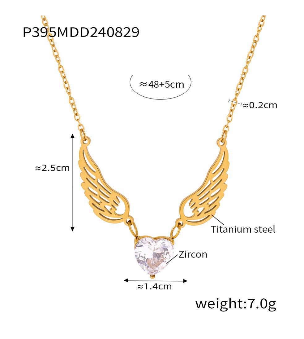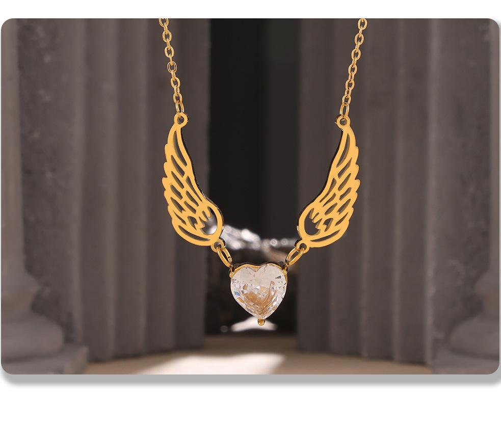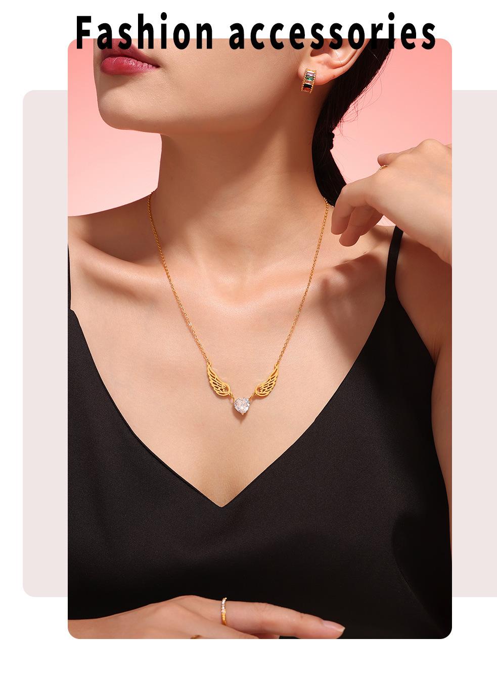 Collar de alas de ángel con circonitas de amor transfronterizo, combinable con todo, regalo de diosa, cadena de clavícula de acero de titanio, joyería para mujer