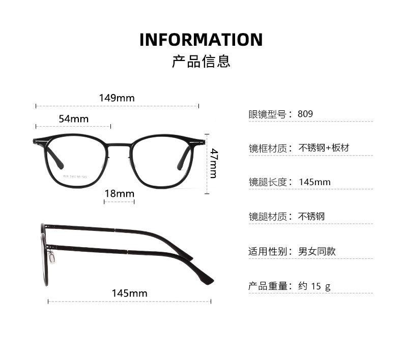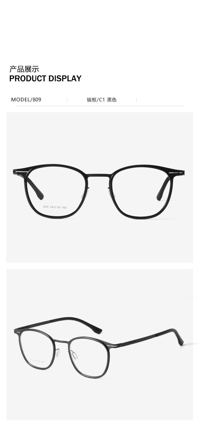 Montura artística para miopía, montura grande, cara redonda, popular en internet, informal, retro, 809, montura de gafas planas súper transparentes