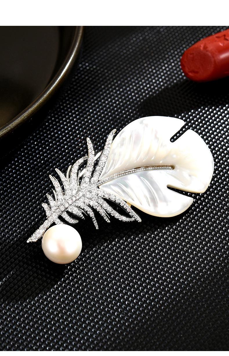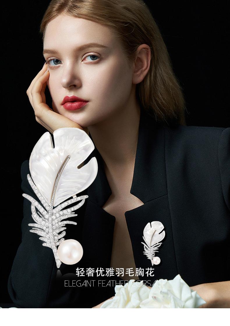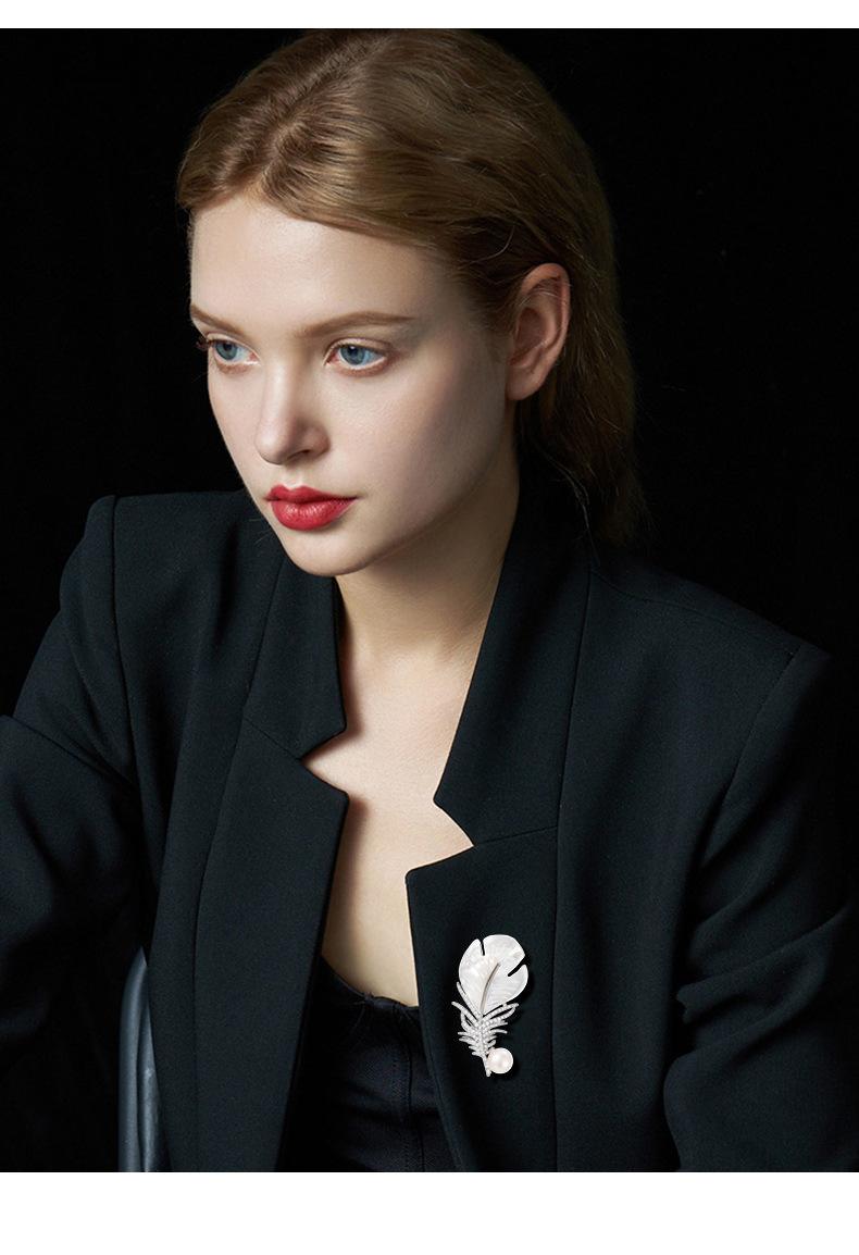Broche de plumas de perlas de agua dulce, ligero, de lujo, estilo coreano, sencillo y combinable, accesorio de moda de alta gama para traje y vestido.