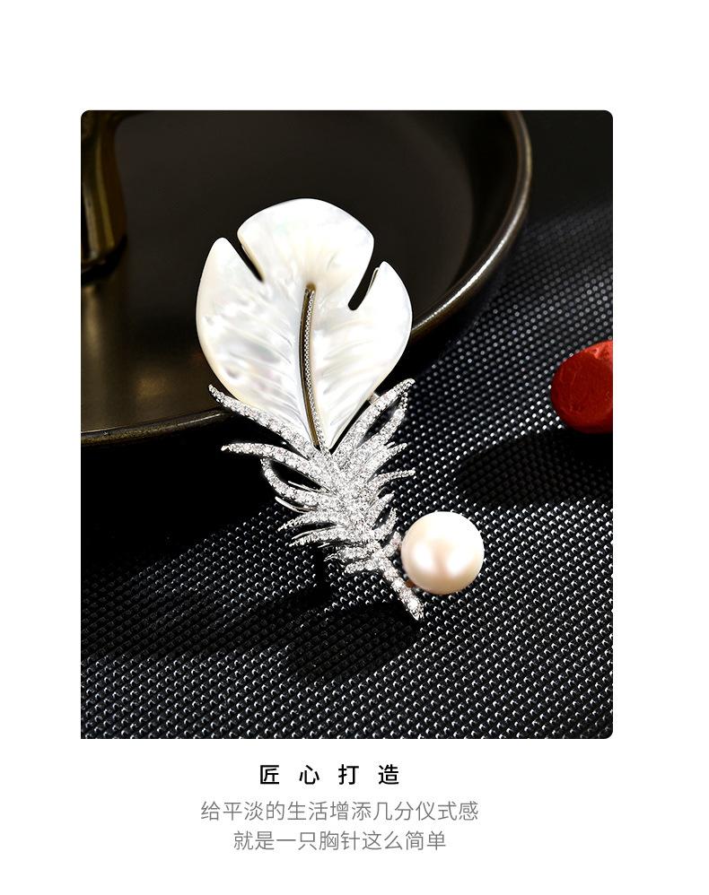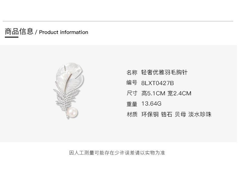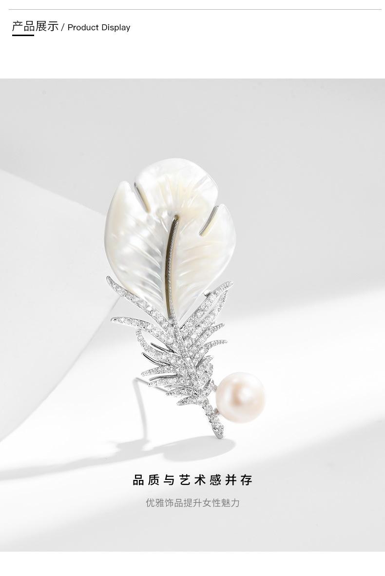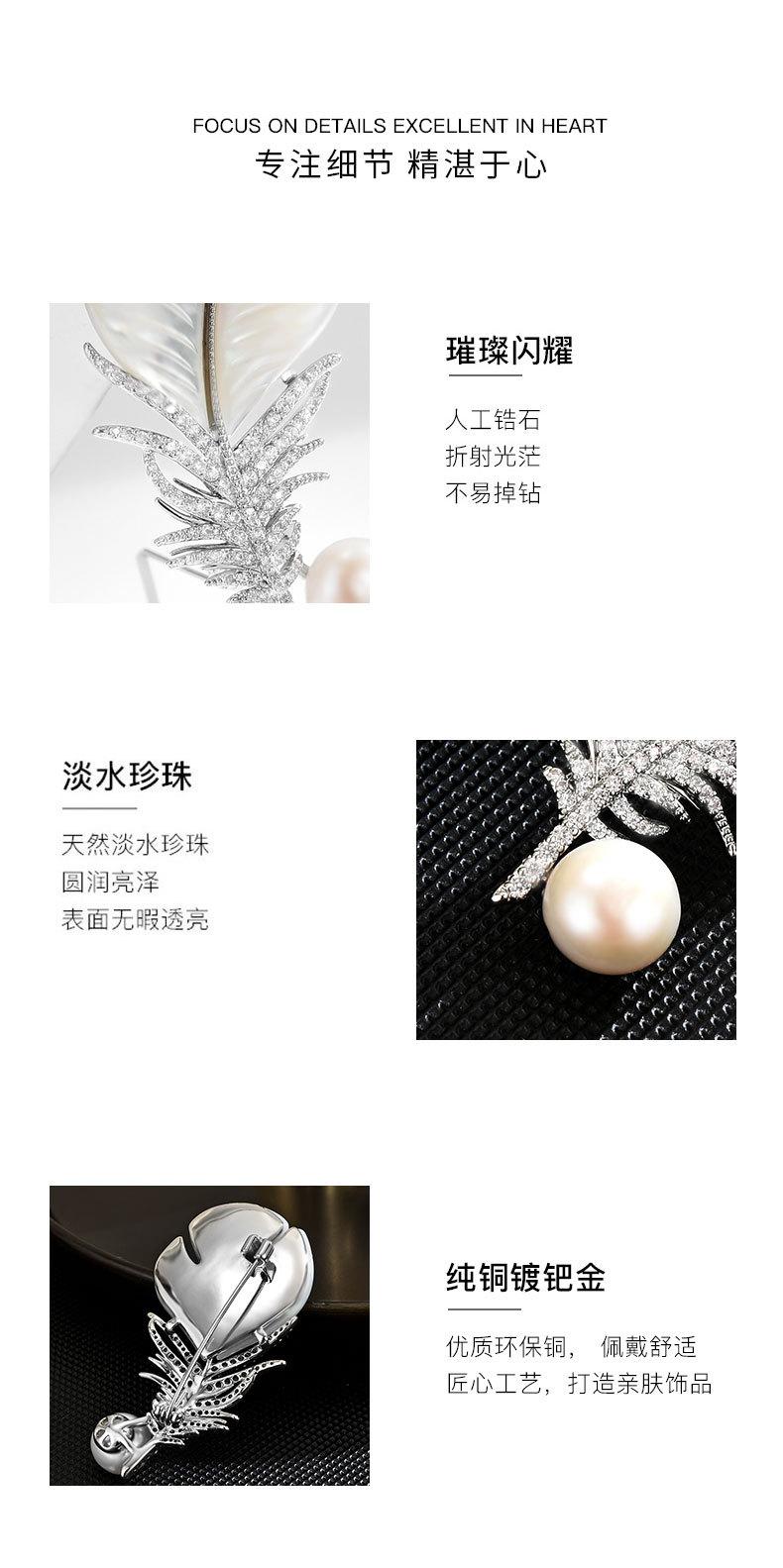 Broche de plumas de perlas de agua dulce, ligero, de lujo, estilo coreano, sencillo y combinable, accesorio de moda de alta gama para traje y vestido.