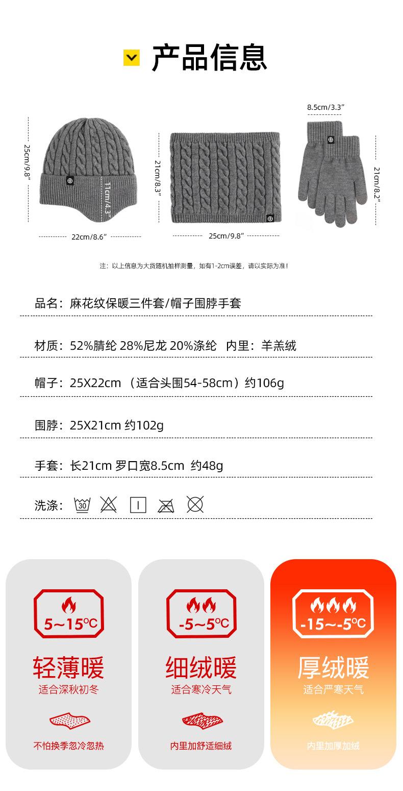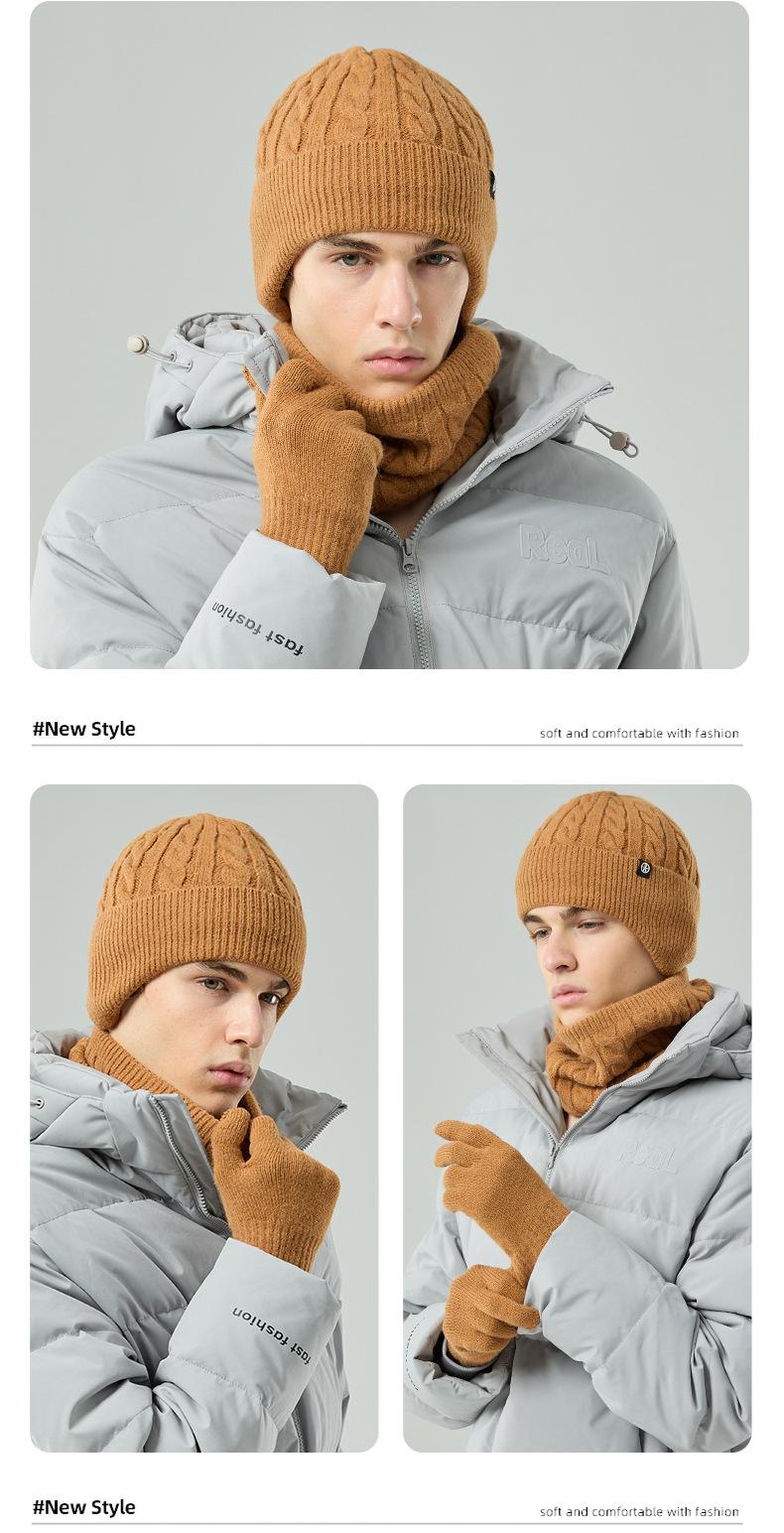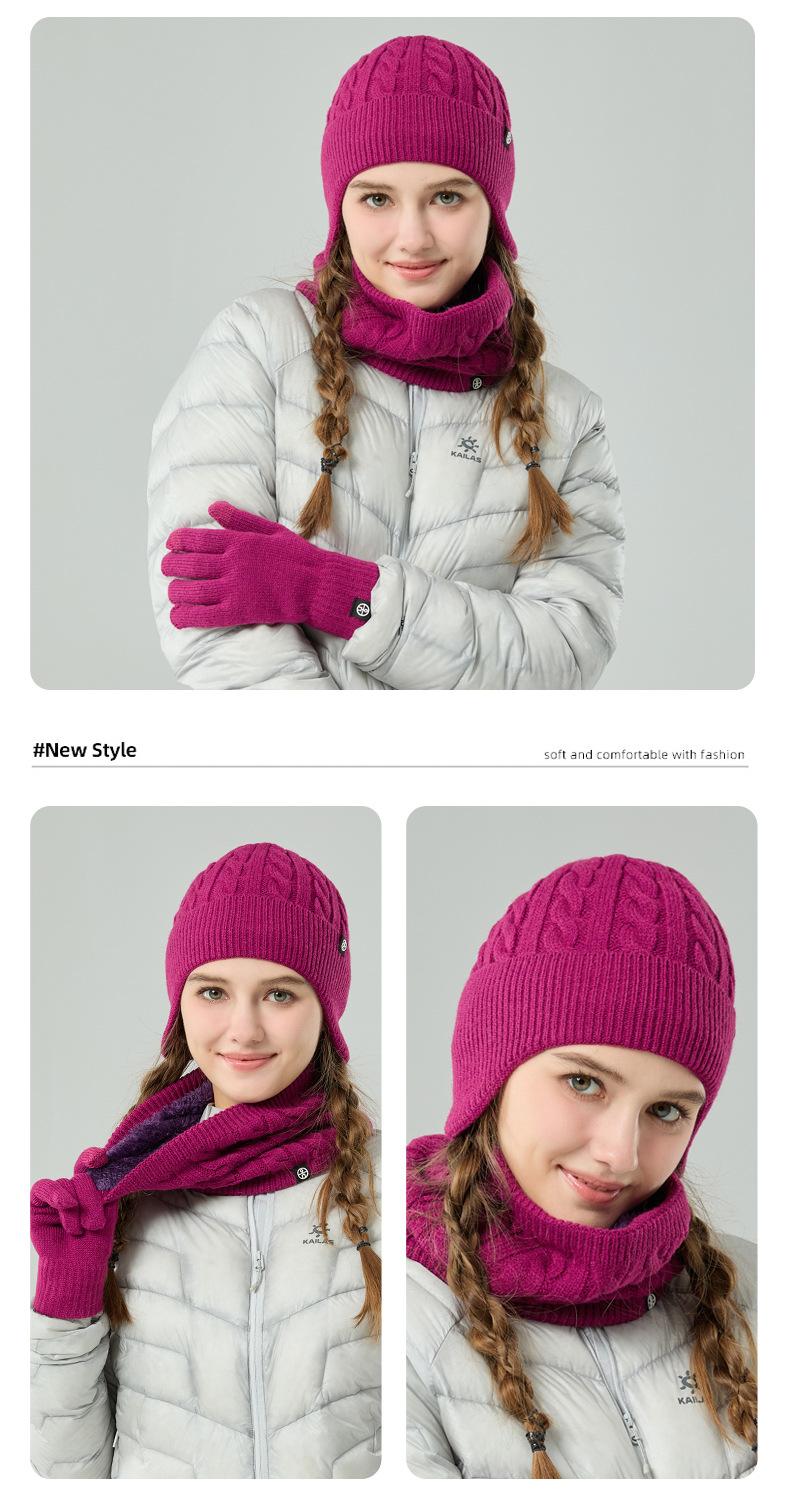 Bufanda de invierno cálido traje de tres piezas con forro polar para exteriores engrosado protección para los oídos gorro de punto bufanda guantes traje de tres piezas