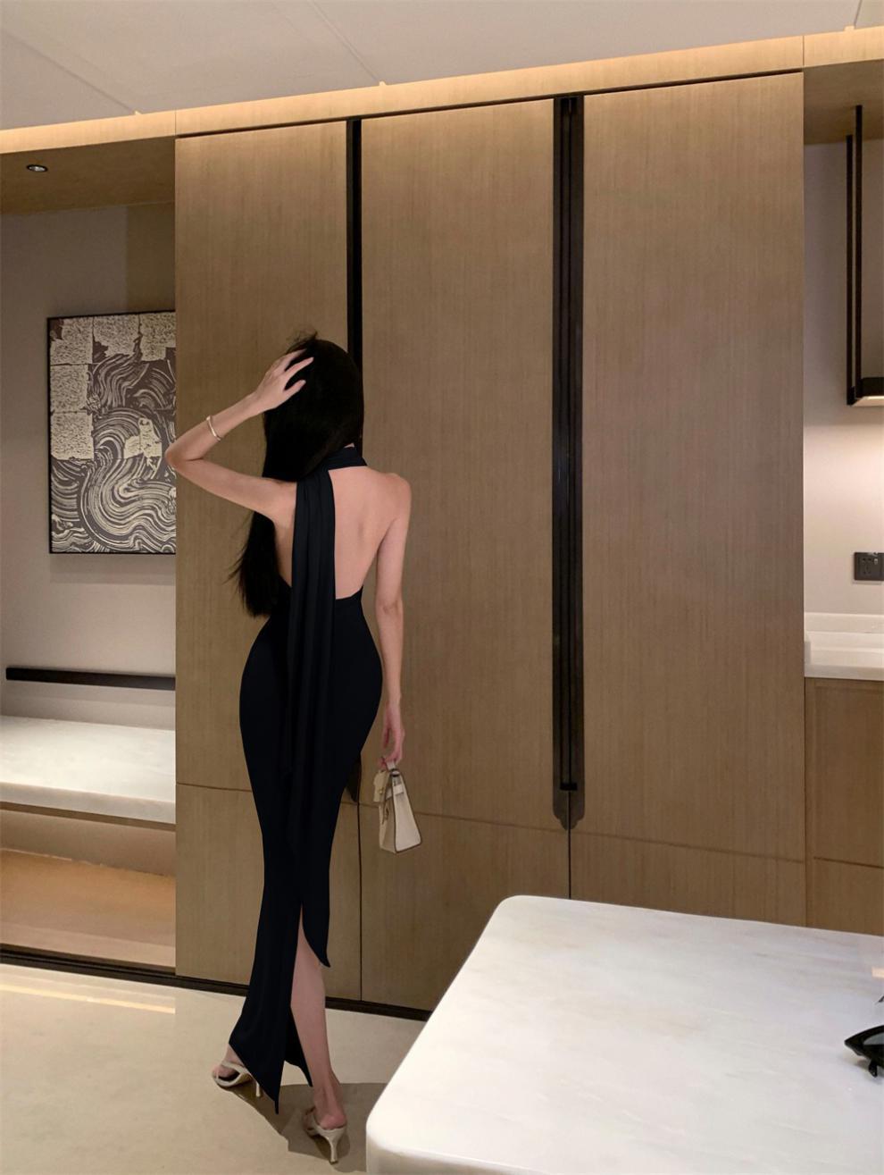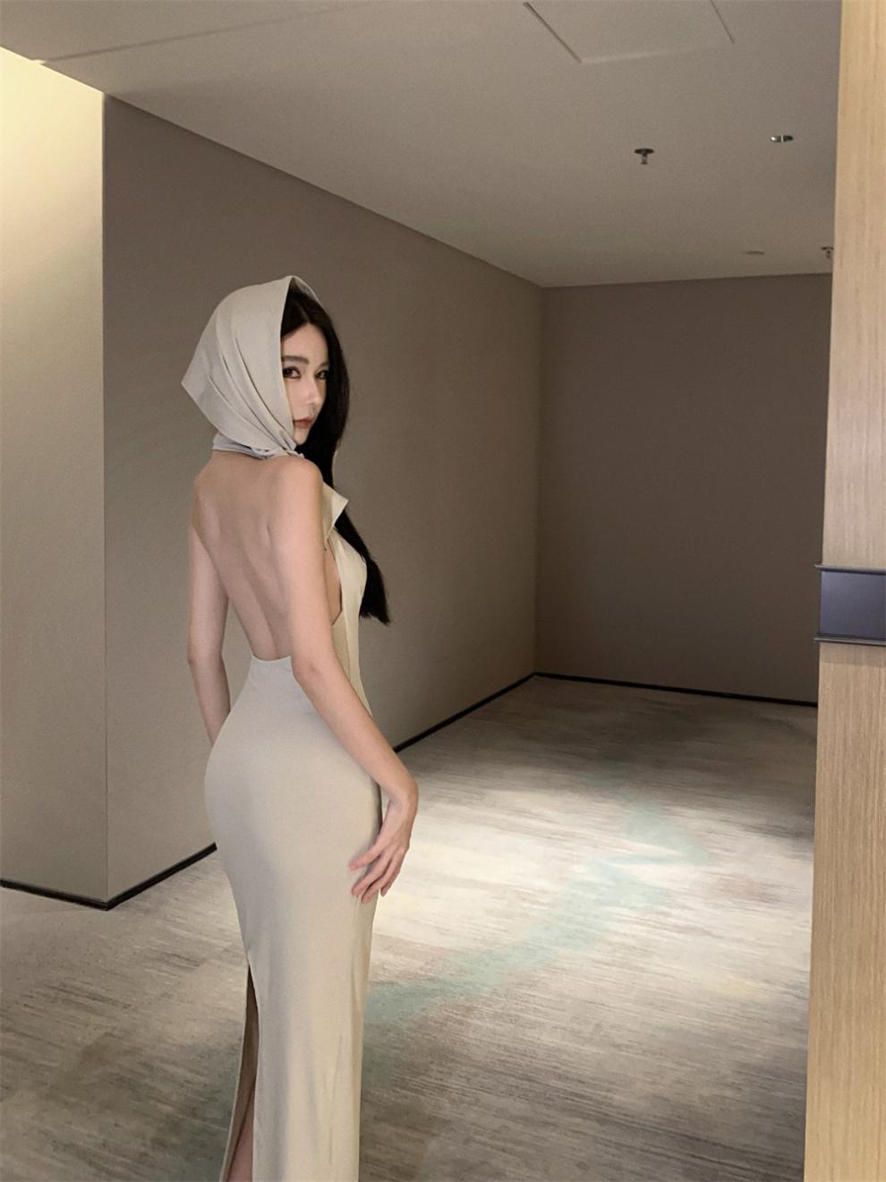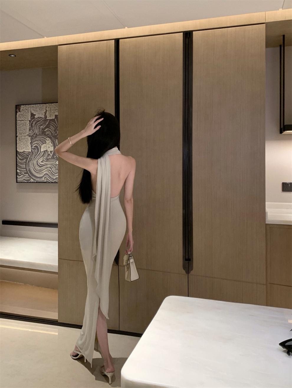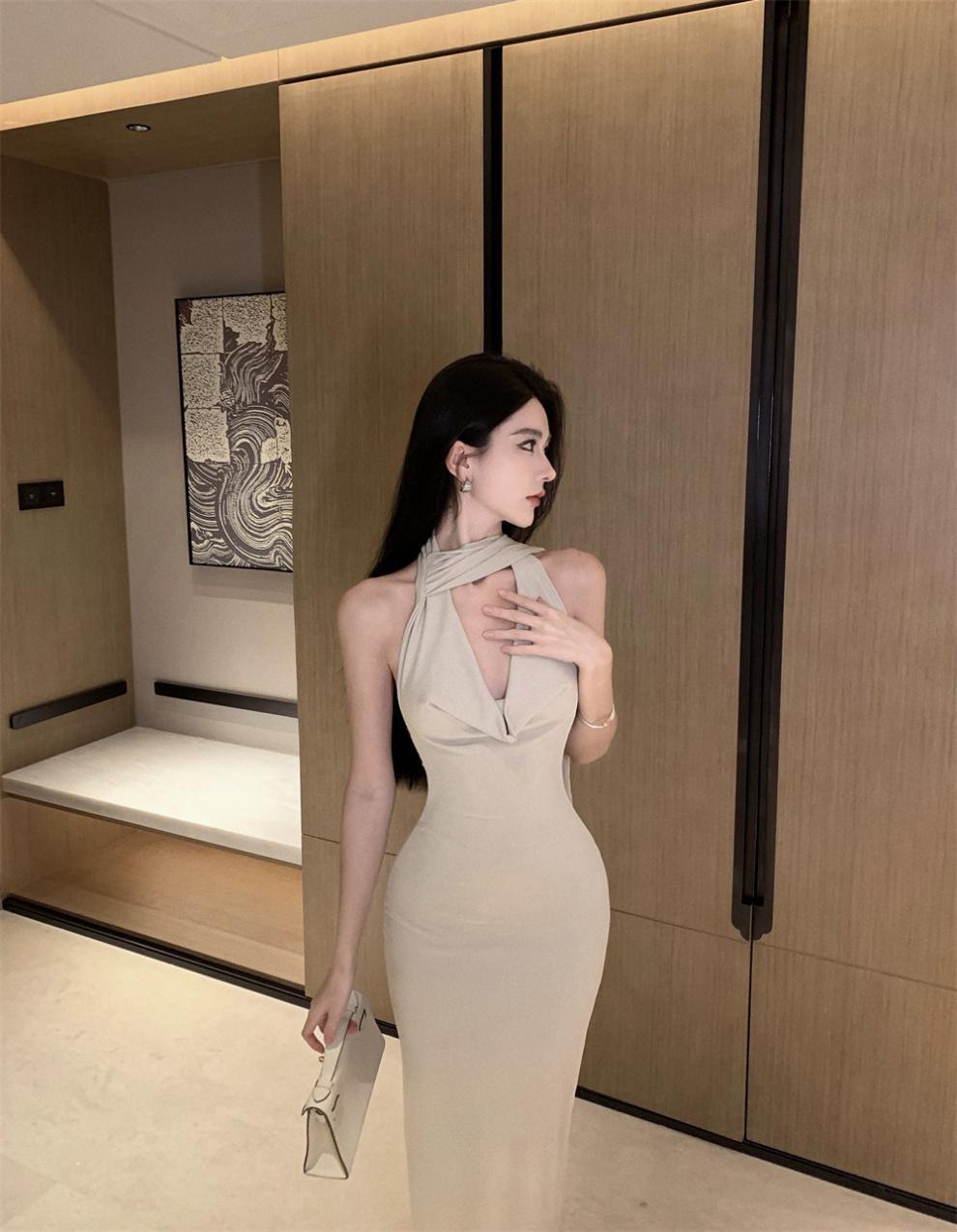 Sexy Sexy Cinta Halter Cuello Columpio Cuello Espalda Descubierta Vestido de Banquete Transfronterizo Medio Oriente Otoño Nuevo Vestido Ajustado