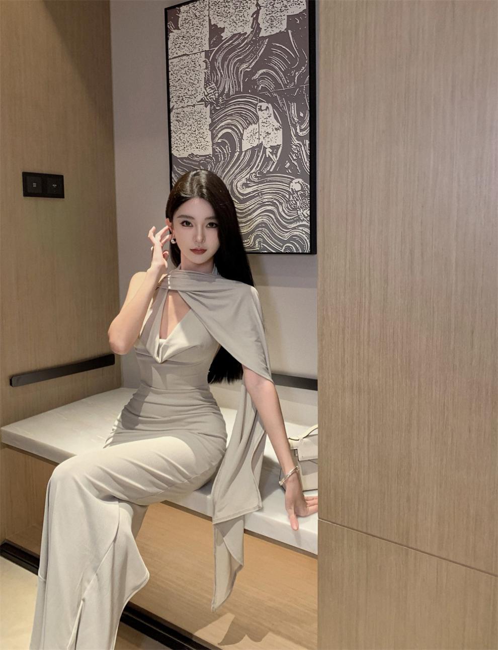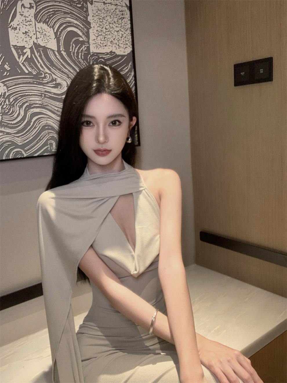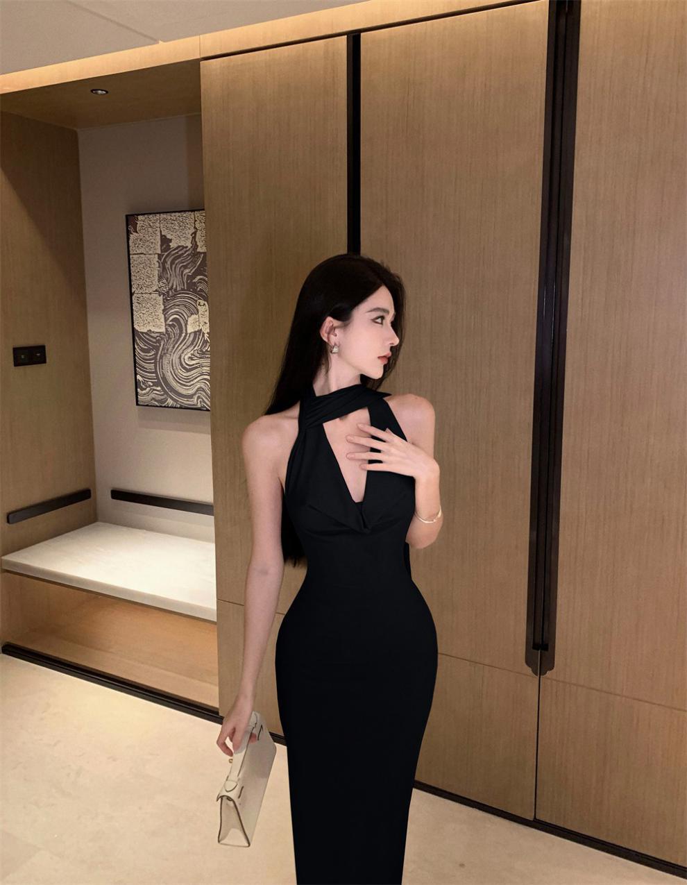 Sexy Sexy Cinta Halter Cuello Columpio Cuello Espalda Descubierta Vestido de Banquete Transfronterizo Medio Oriente Otoño Nuevo Vestido Ajustado
