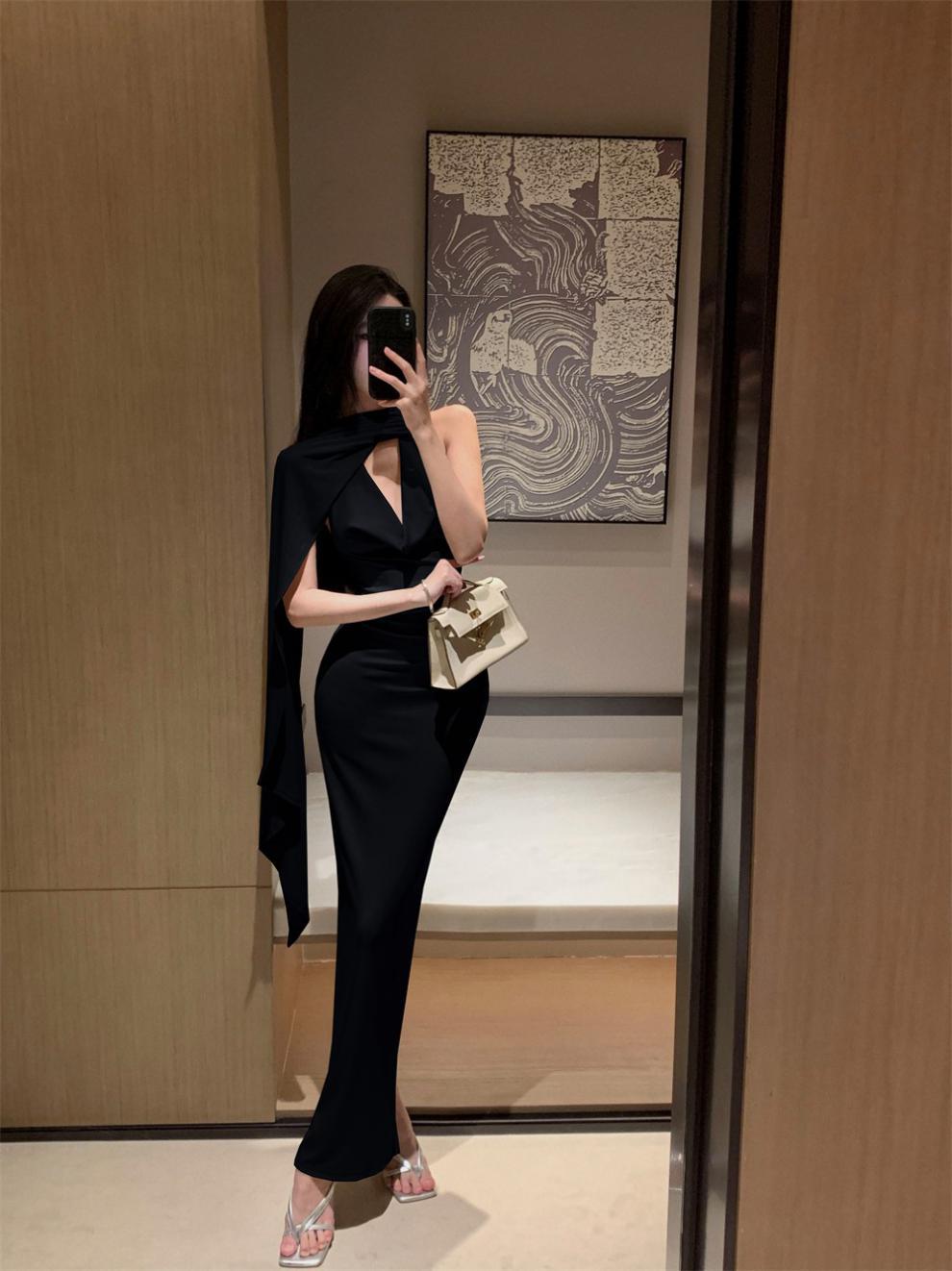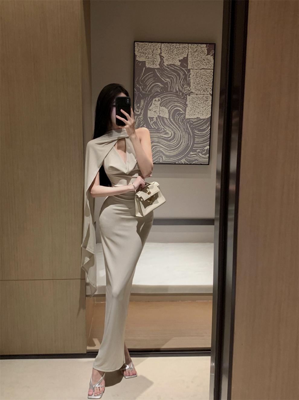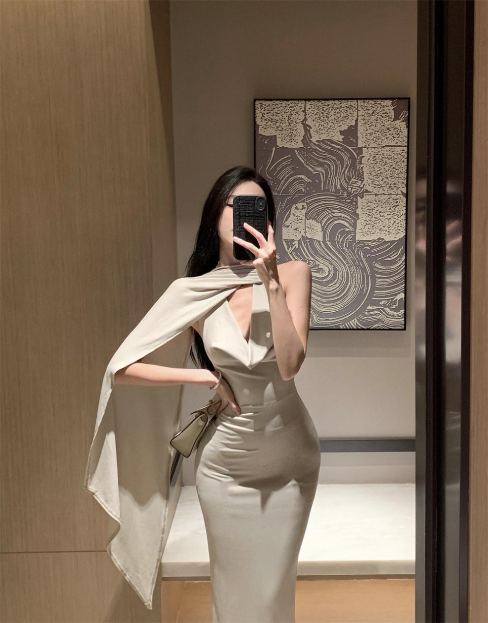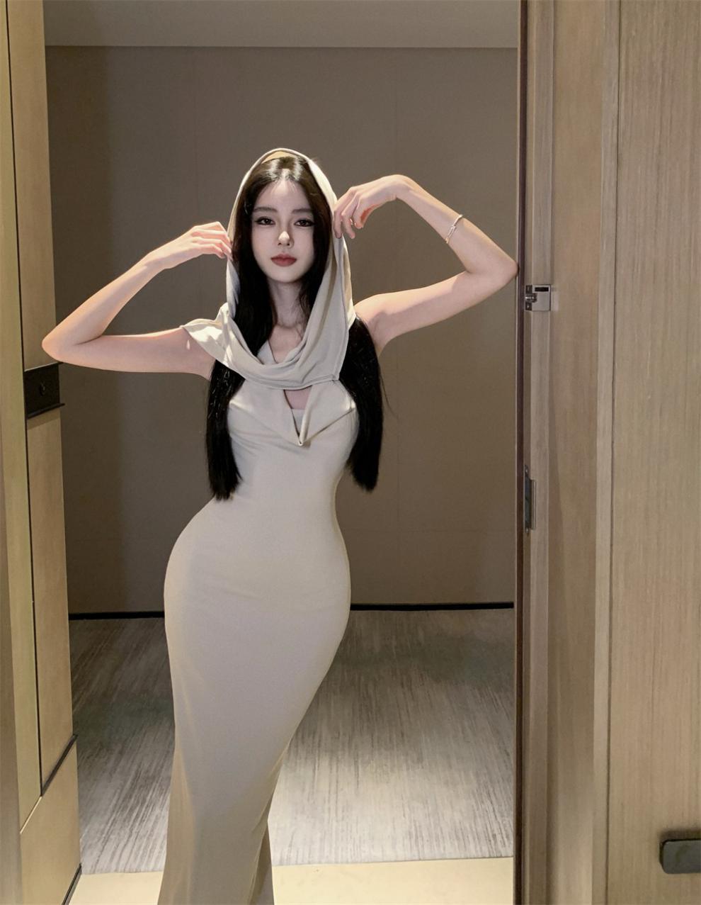 Sexy Sexy Cinta Halter Cuello Columpio Cuello Espalda Descubierta Vestido de Banquete Transfronterizo Medio Oriente Otoño Nuevo Vestido Ajustado